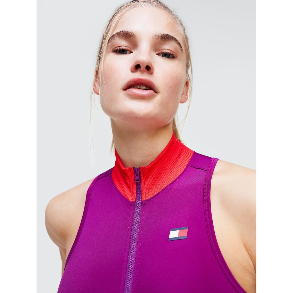 Tommy hilfiger - high neck front zip bra mid , xs , phlox , style s10s100392
