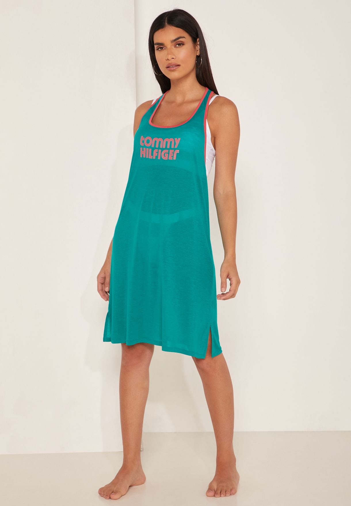 Tommy Hilfiger - Women's Contrast Trim Logo Beach Tank Dress