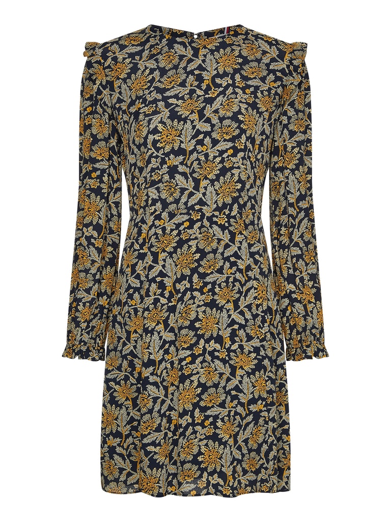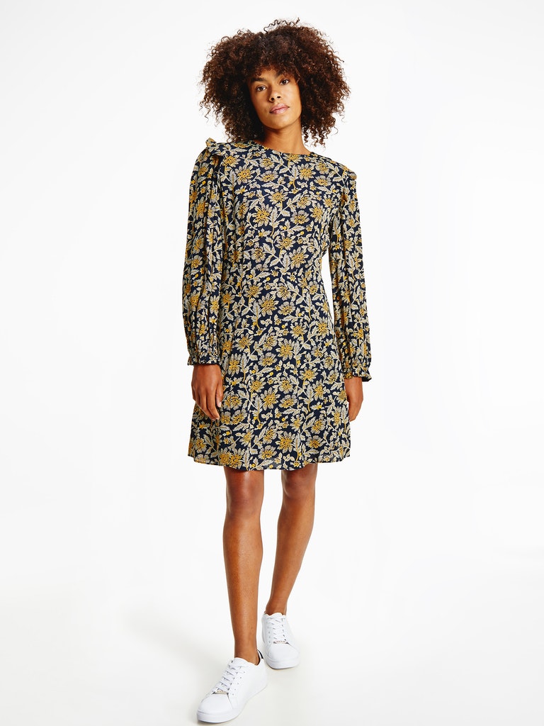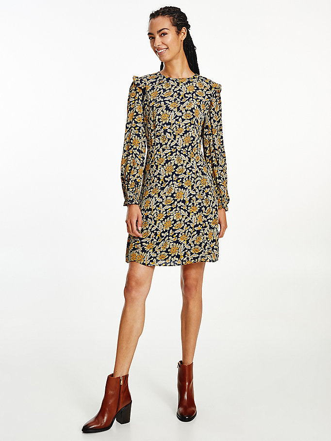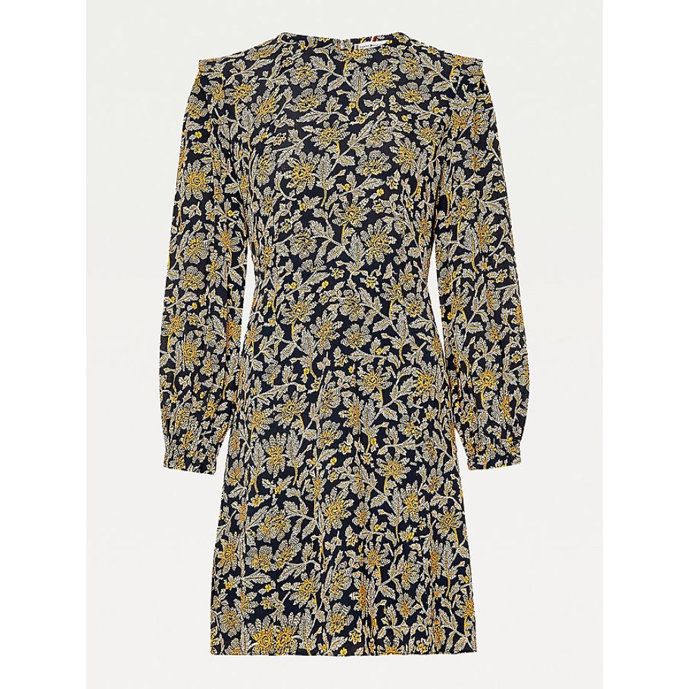 Tommy hilfiger - crepe knee f&f dress ls , 42 , floral aop / amber glow , style ww0ww32277