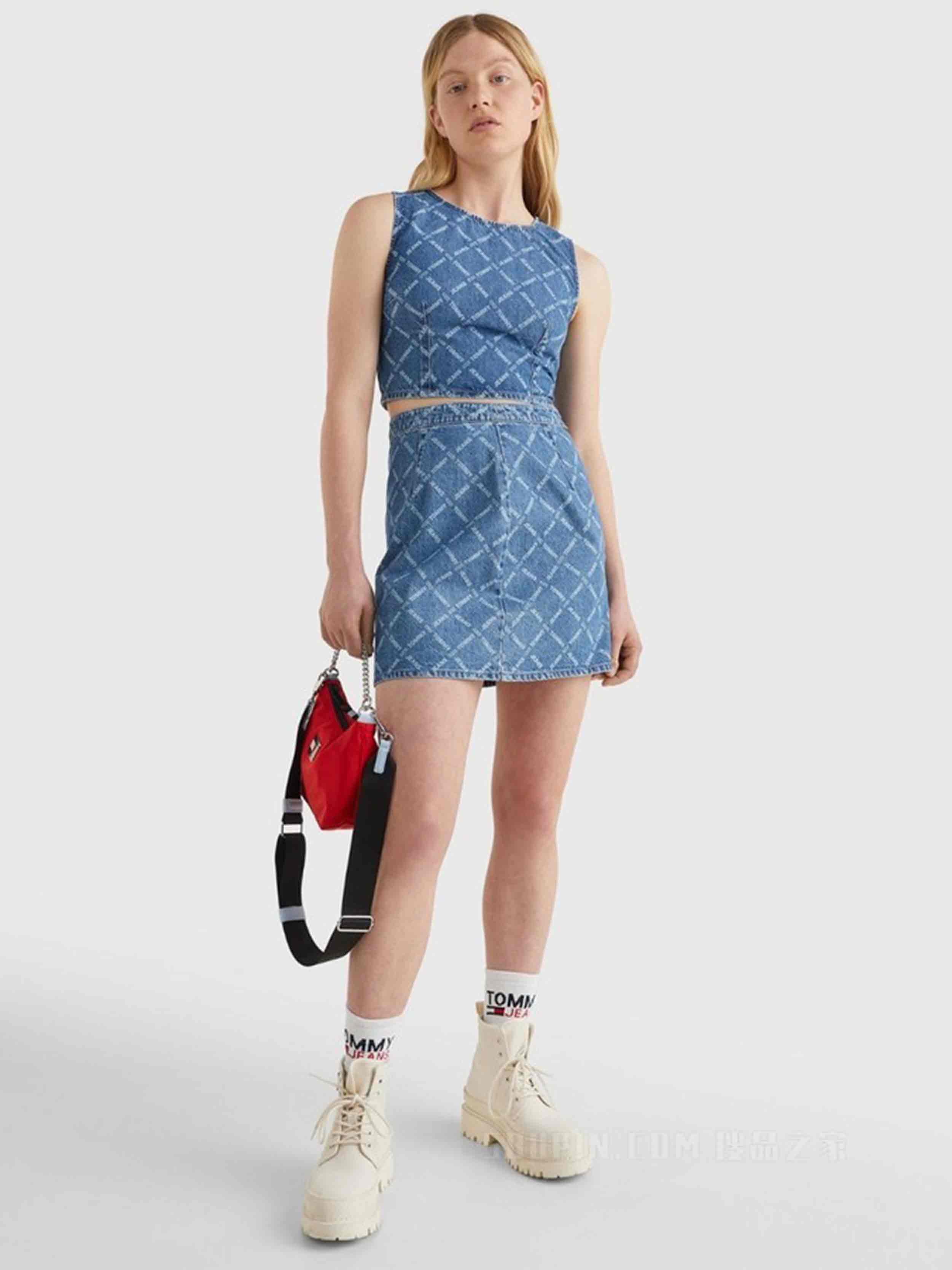 Tommy hilfiger jeans - tjw denim monogram mini skirt , s , denim all allover , style dw0dw13709