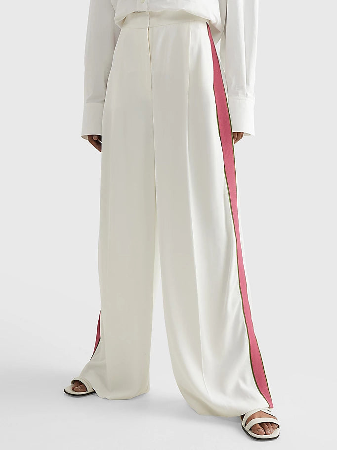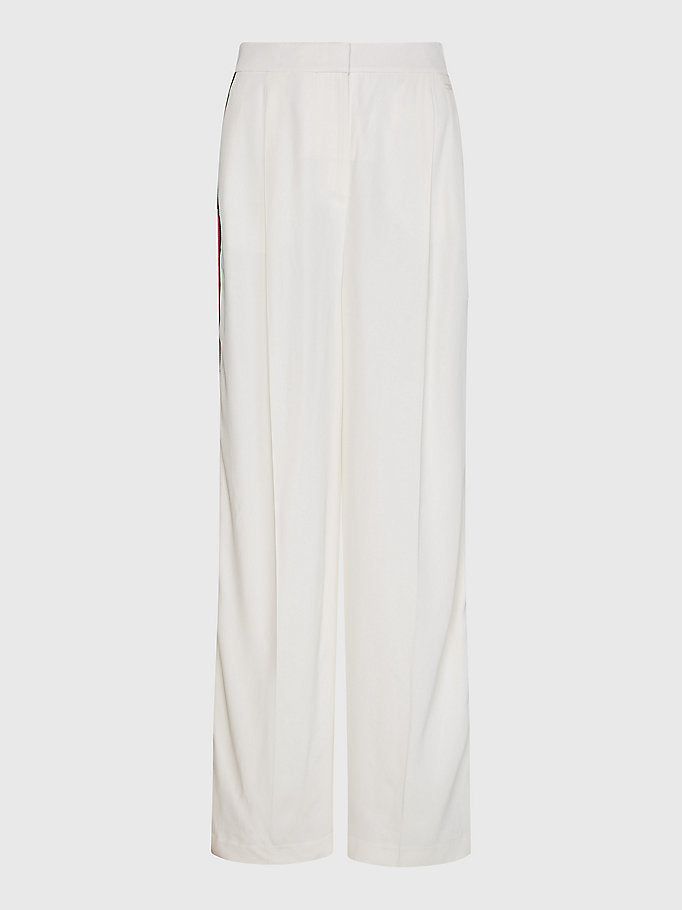 Tommy hilfiger - icons side stripe wide leg pant , 42 , ecru , style ww0ww35600