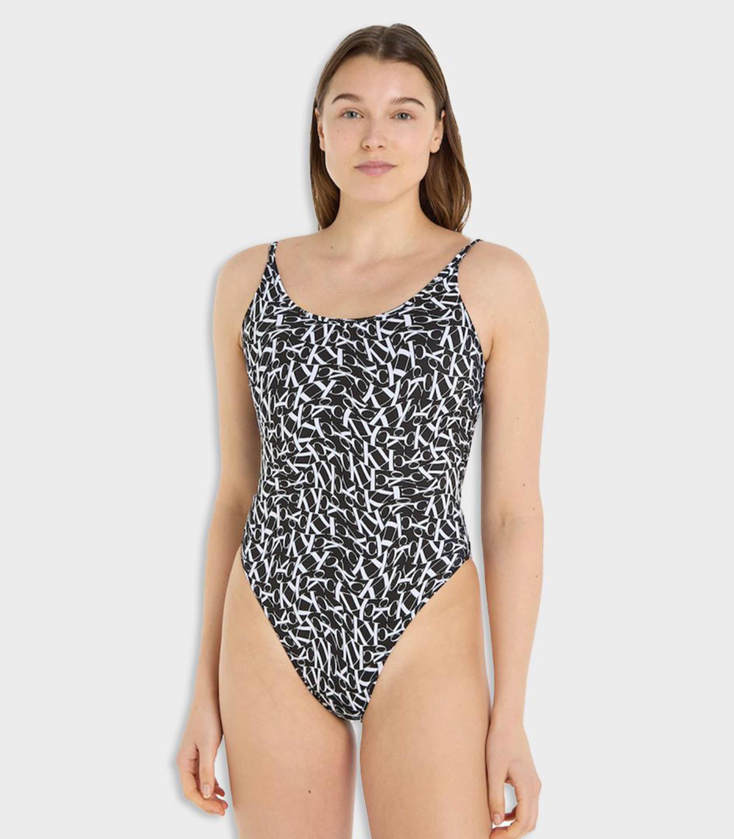Calvin klein - scoop one piece-print , s , ck one warped monogram black aop , style kw0kw02086