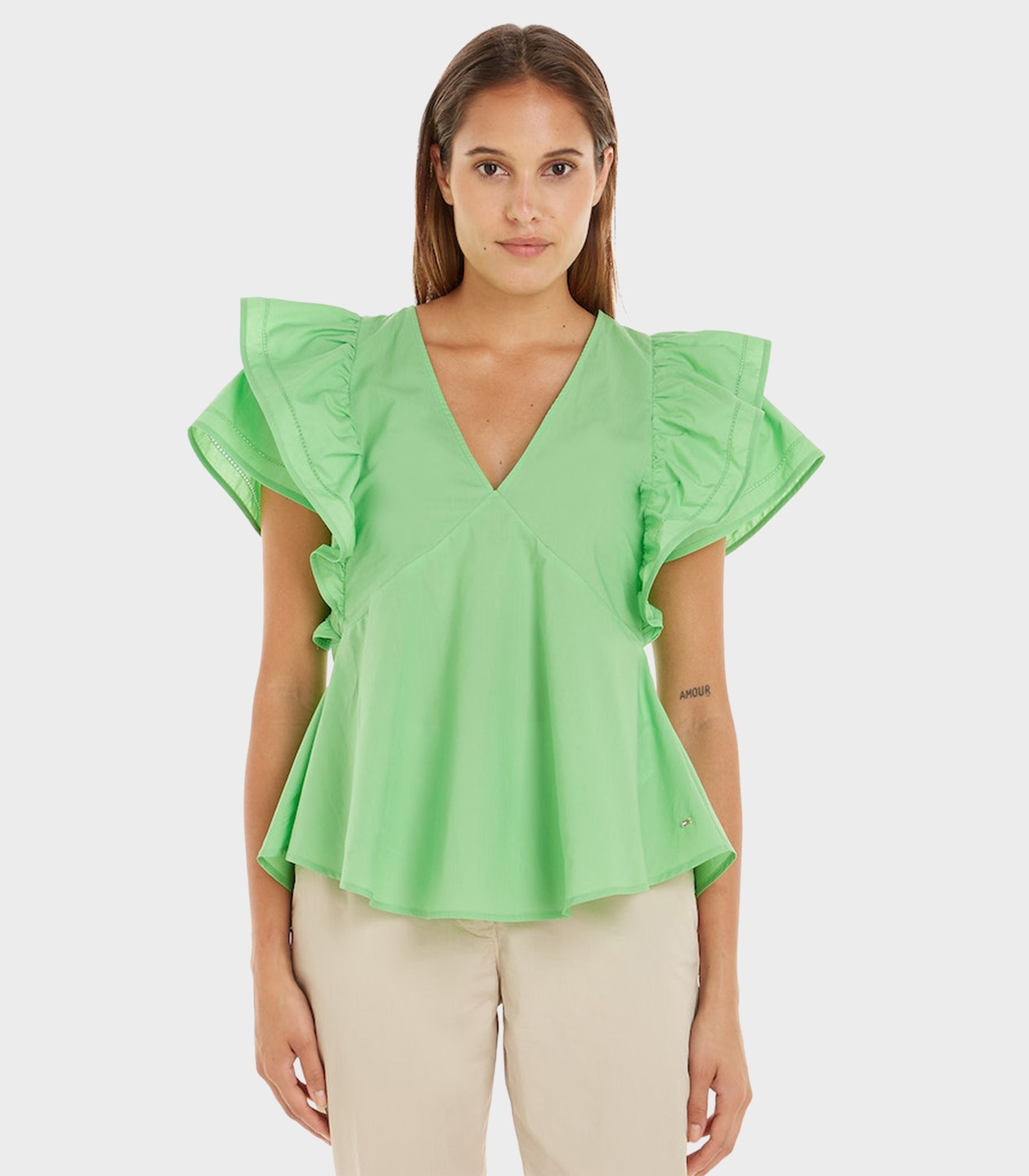 Tommy hilfiger - co sateen frill blouse slvls , 44 , spring lime , style ww0ww38739