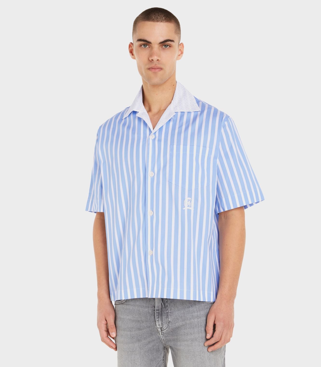 Tommy hilfiger - thl cuban collar shirt , l , blue stripe , style mw0mw31326