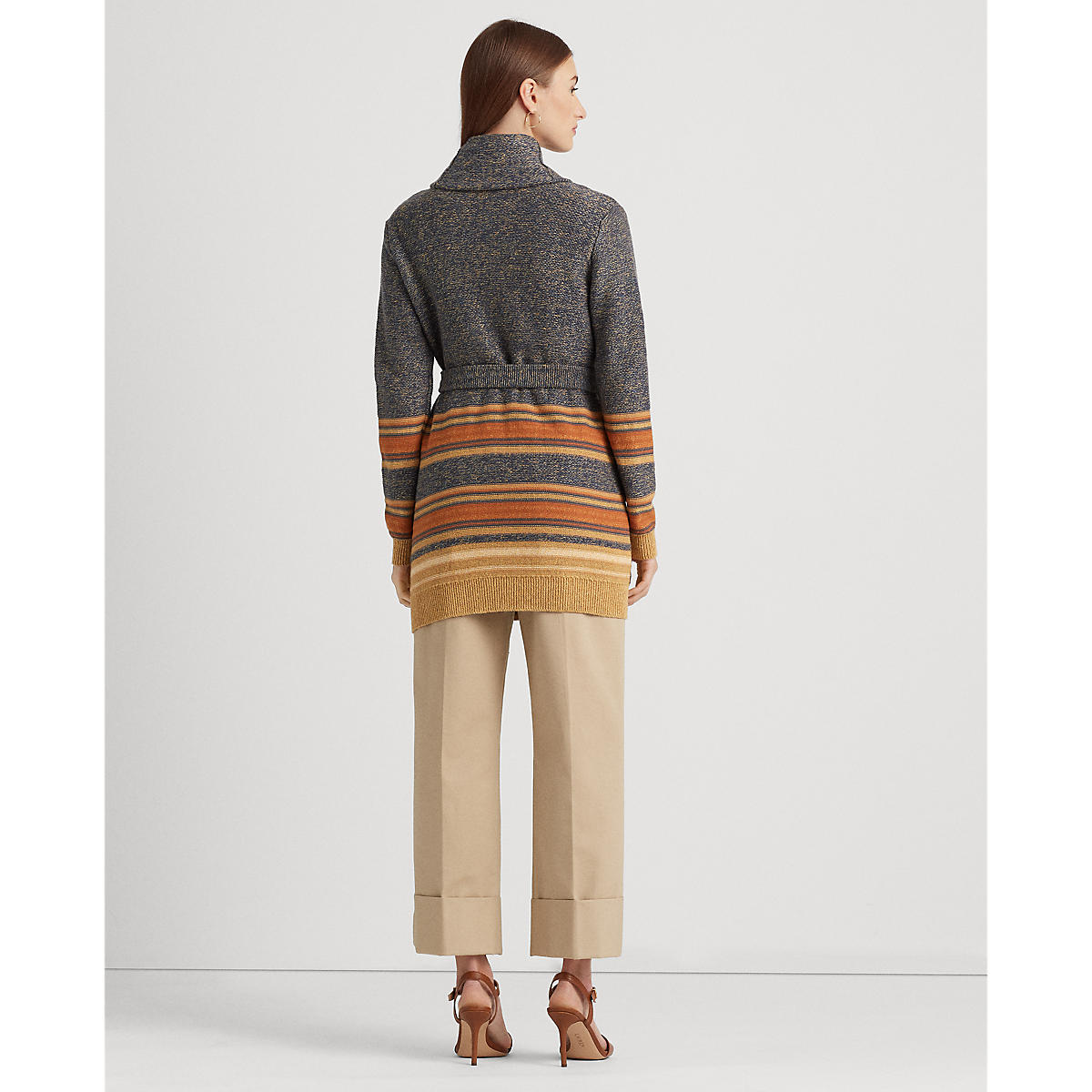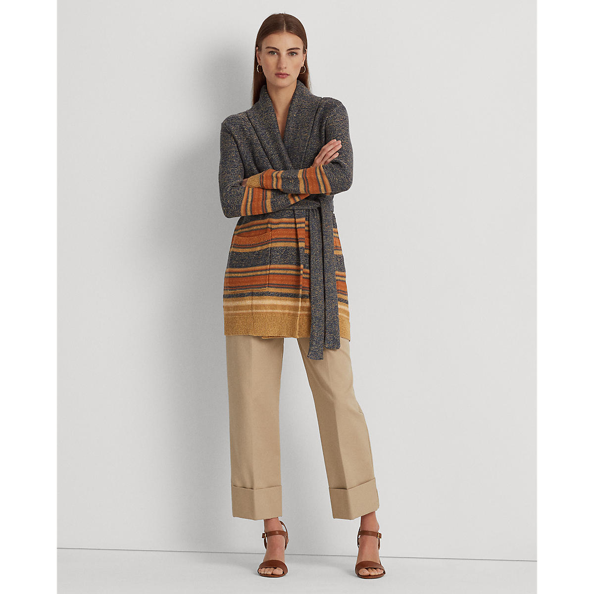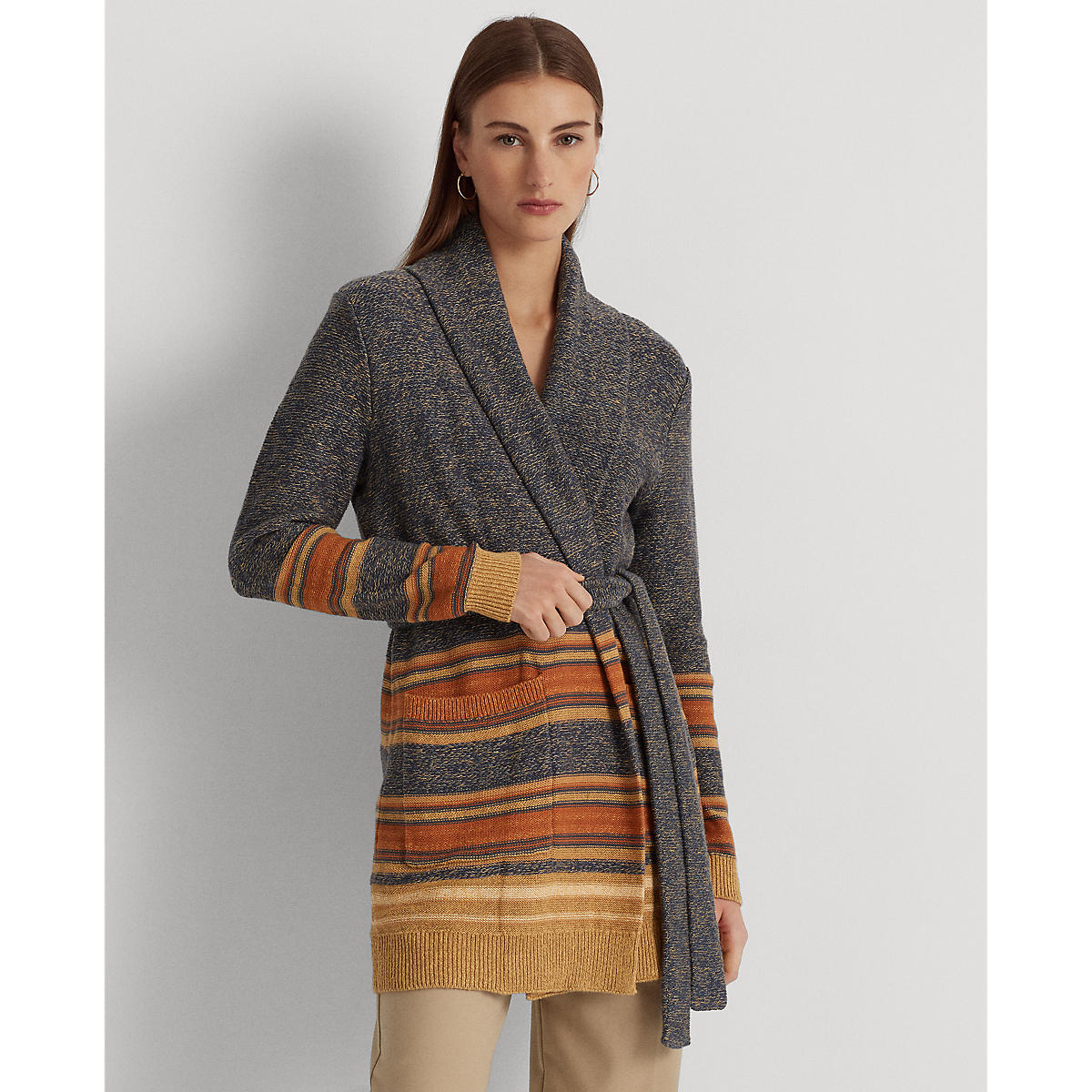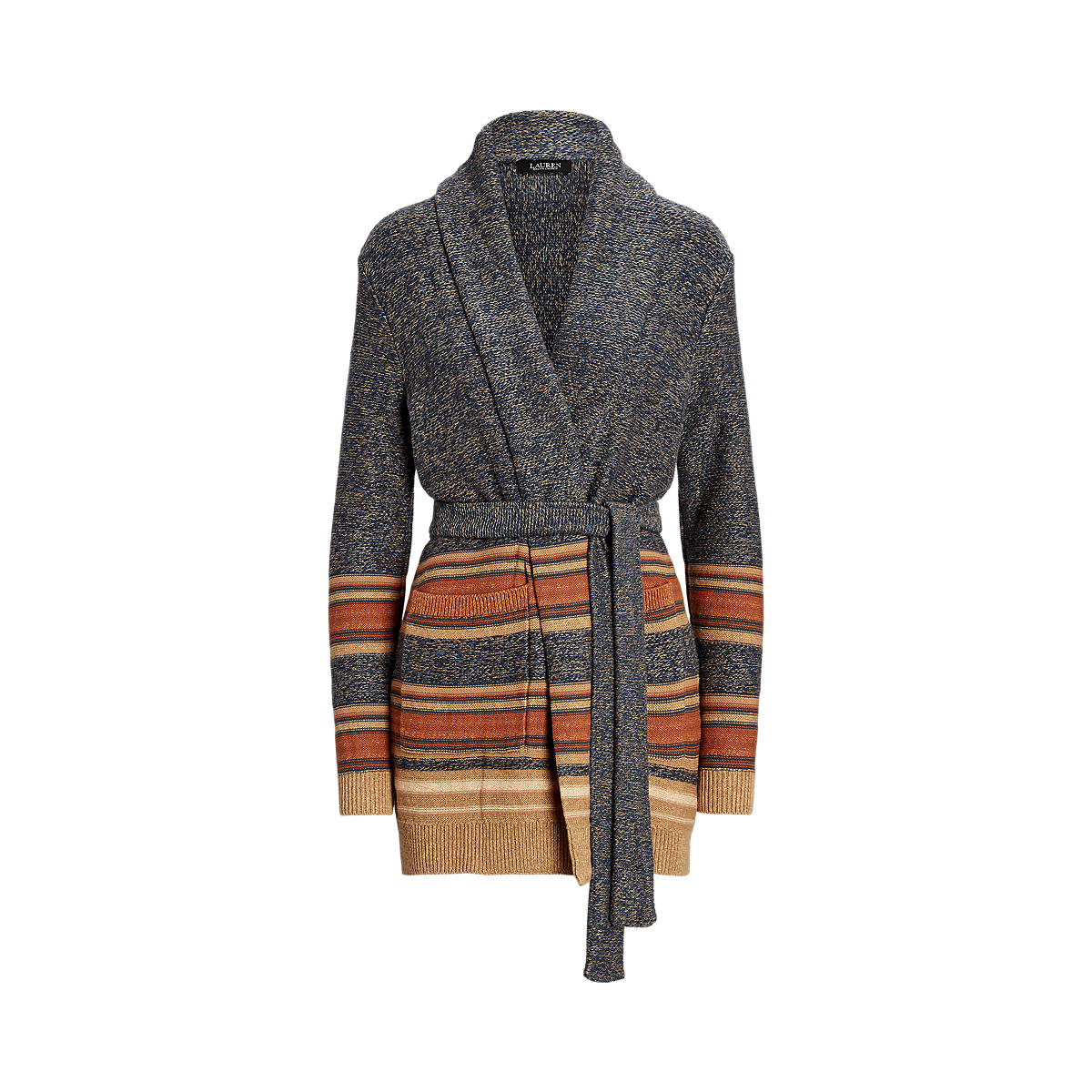 Lauren Ralph Lauren - Striped Belted Cotton-Blend Cardigan