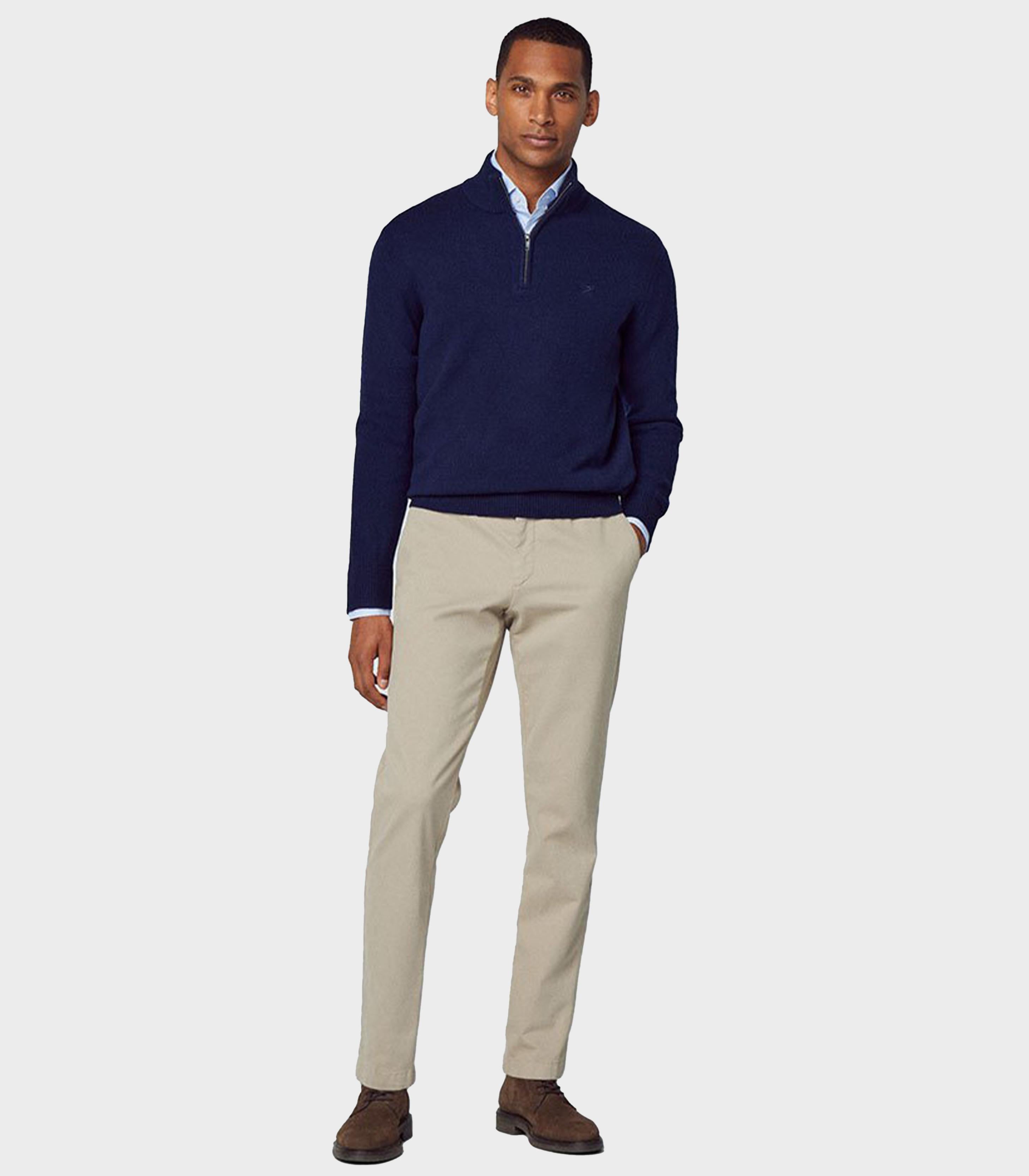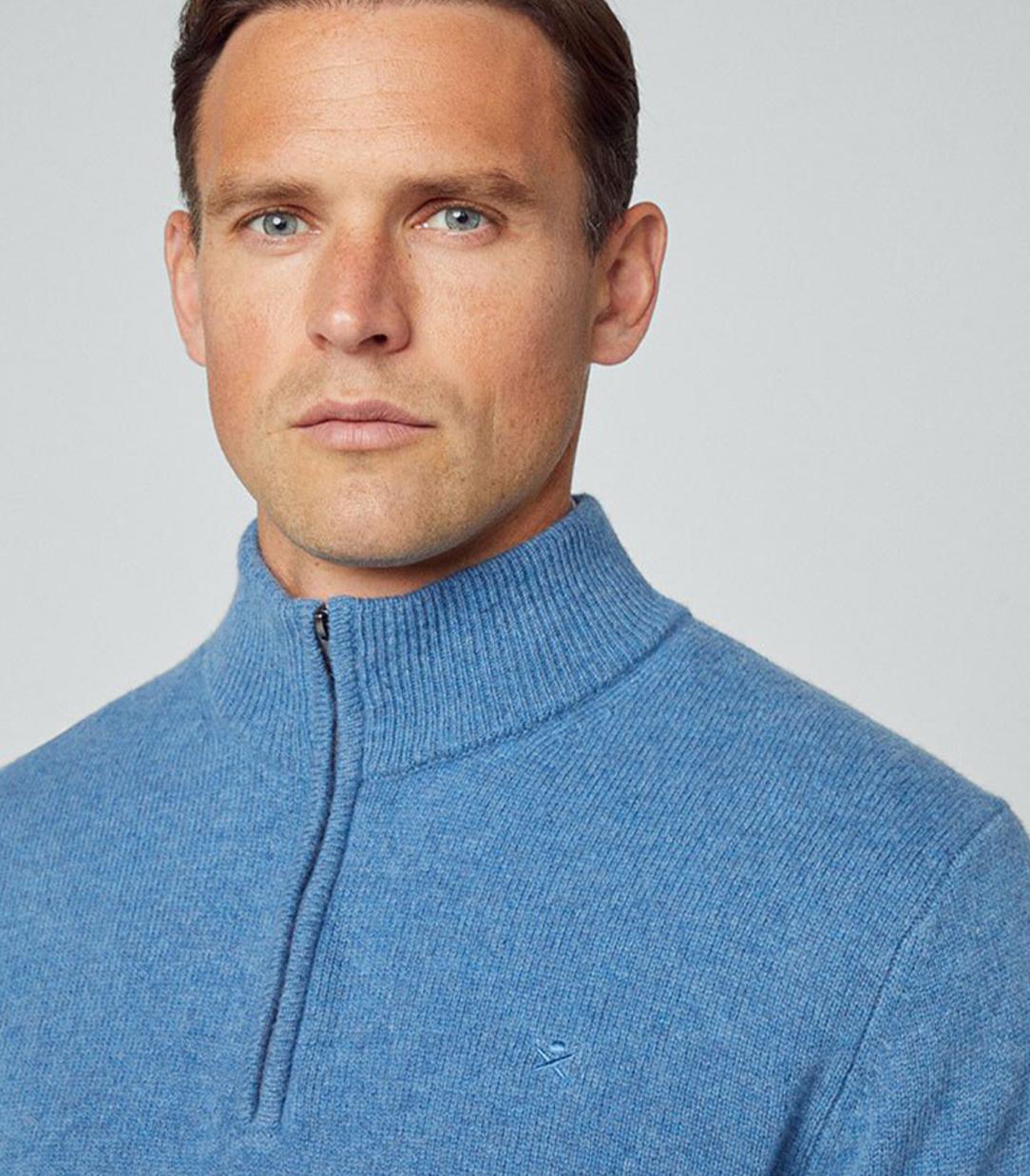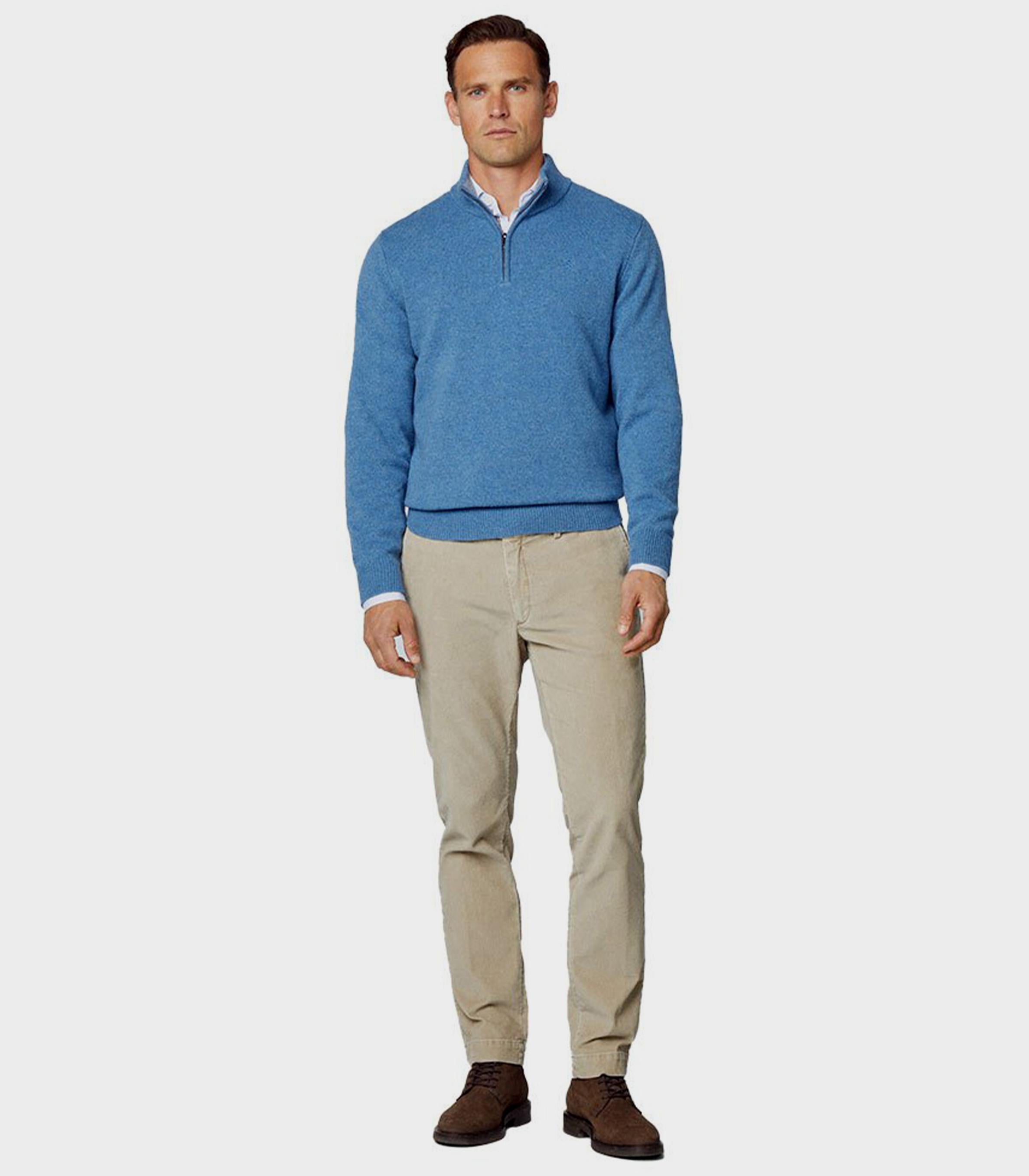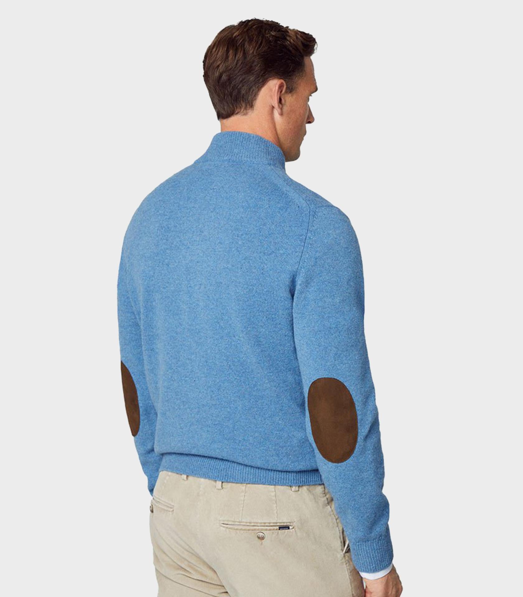 • In pure lambswool, this half-zip turtleneck is extremely soft and comfortable against the skin. Details such as the ribbed collar, cuffs and hem to retain heat, and the elbow patches in contrasting colours make this garment a must-have in any man's wardrobe.