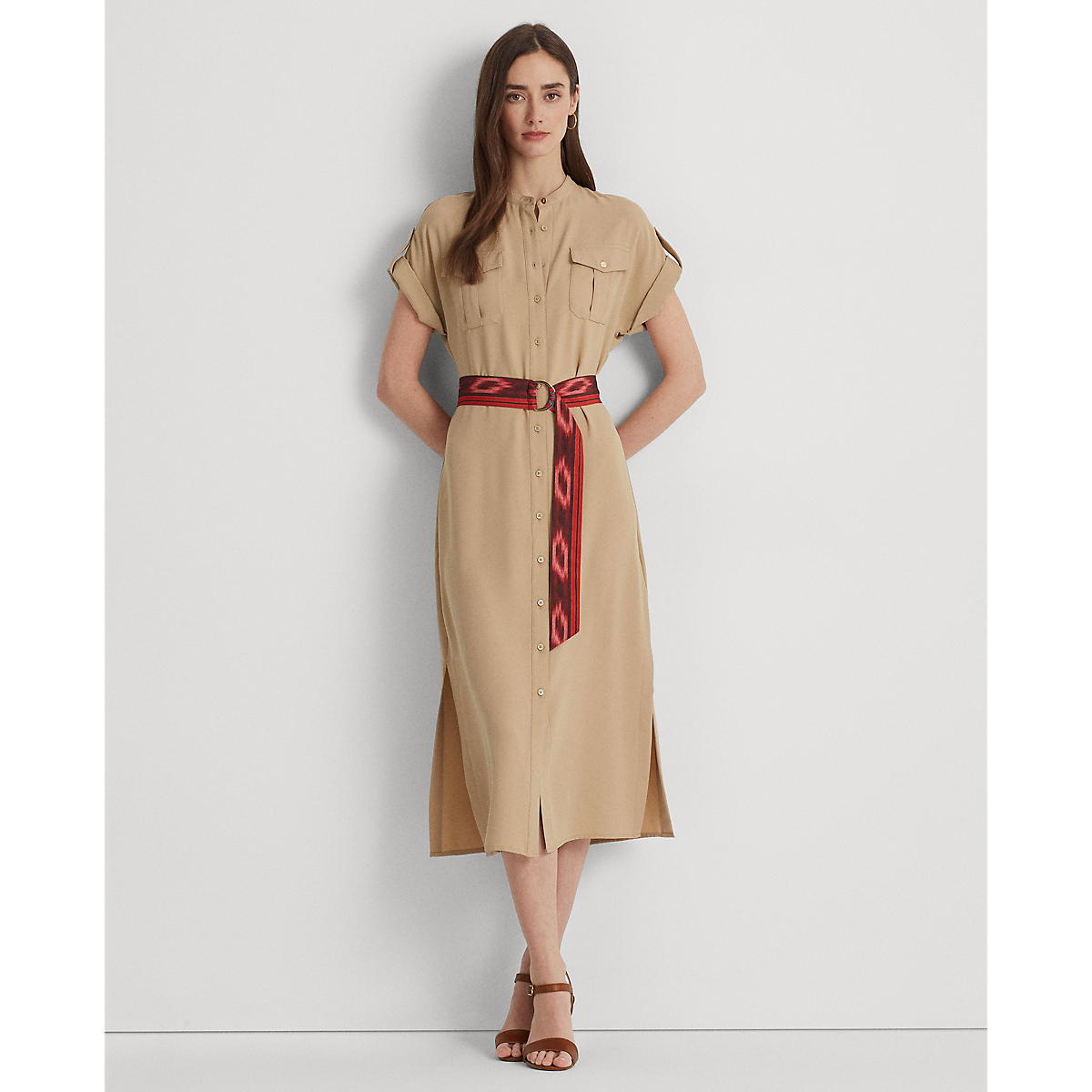 • Lauren Ralph Lauren - Belted Double-Faced Georgette Shirtdres