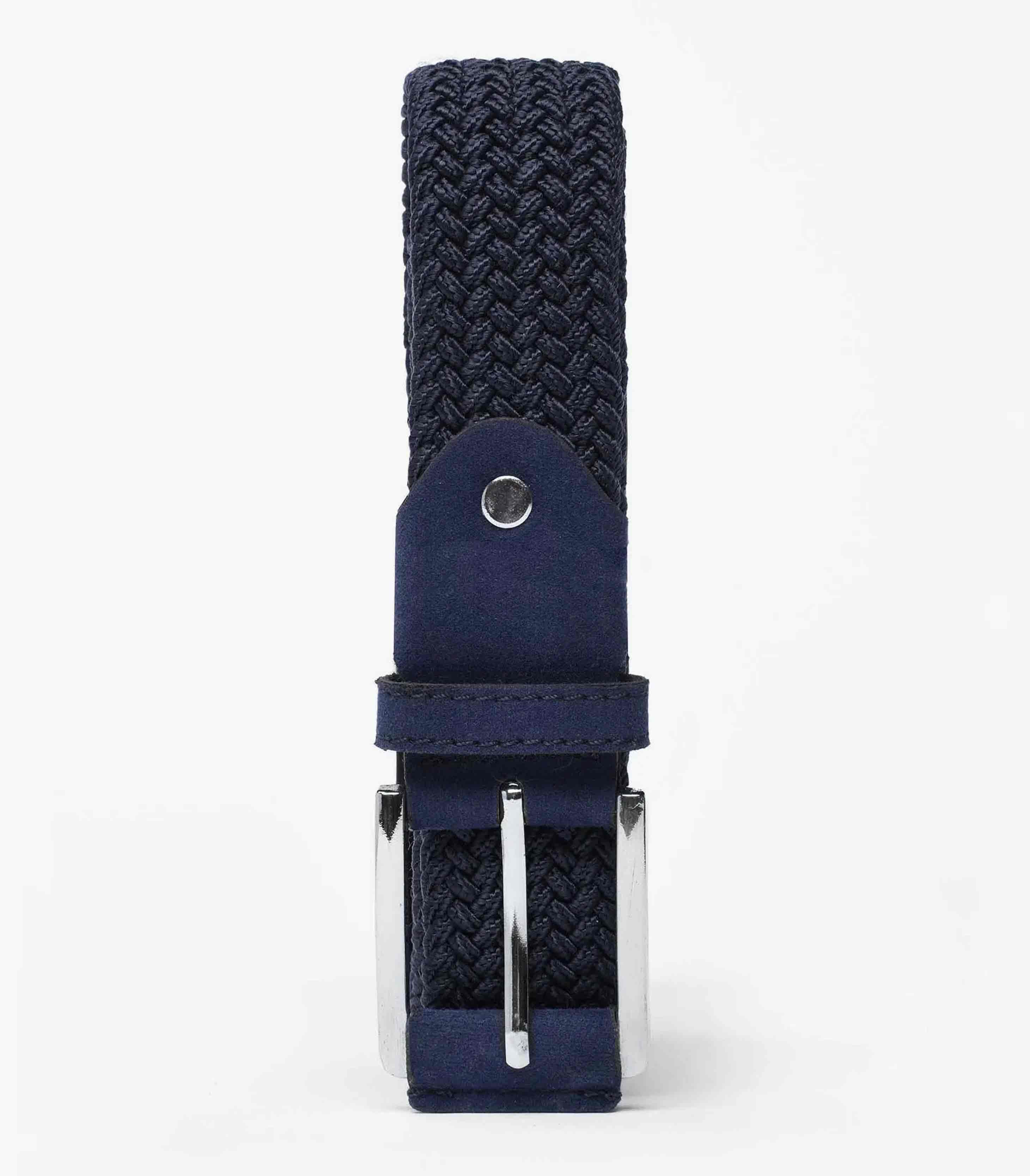 • Woven elastic belt. Square metal buckle.