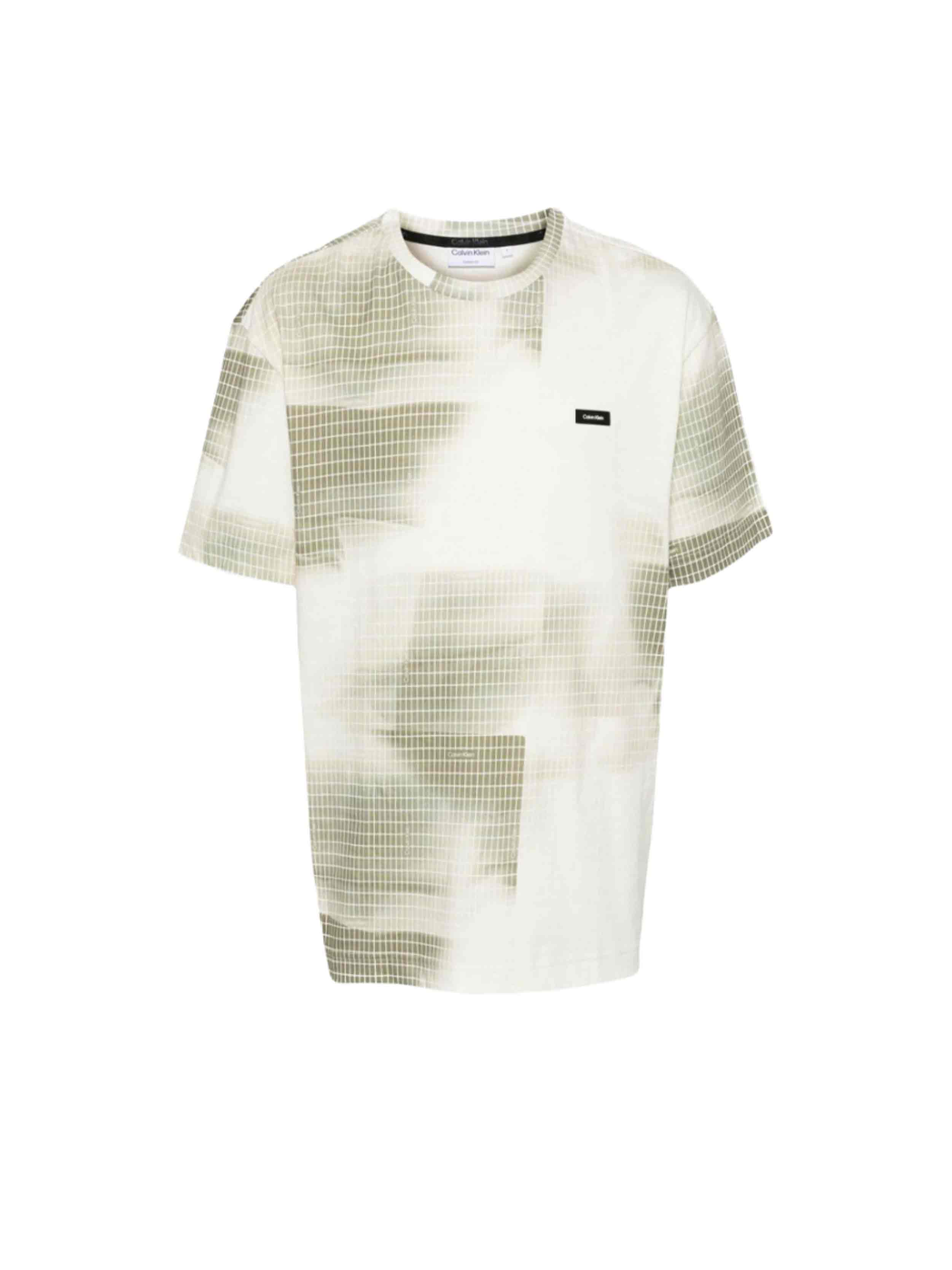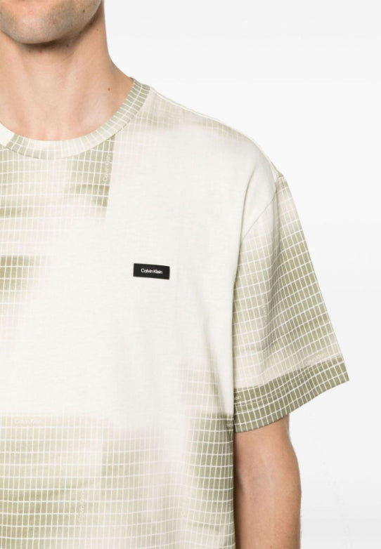 Calvin klein - diffused grid aop t-shirt , l , icicle / delta green grid aop , style k10k112948