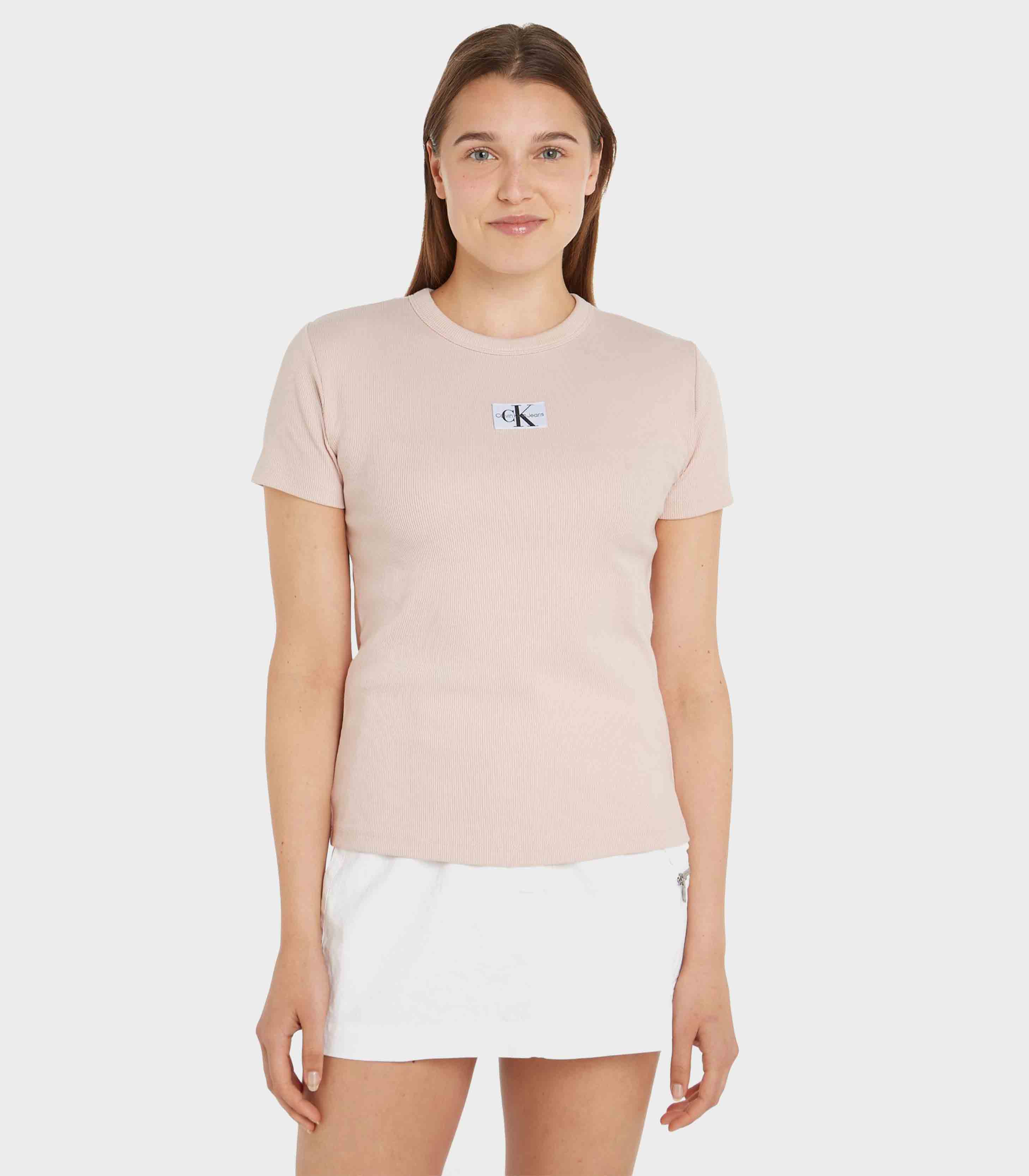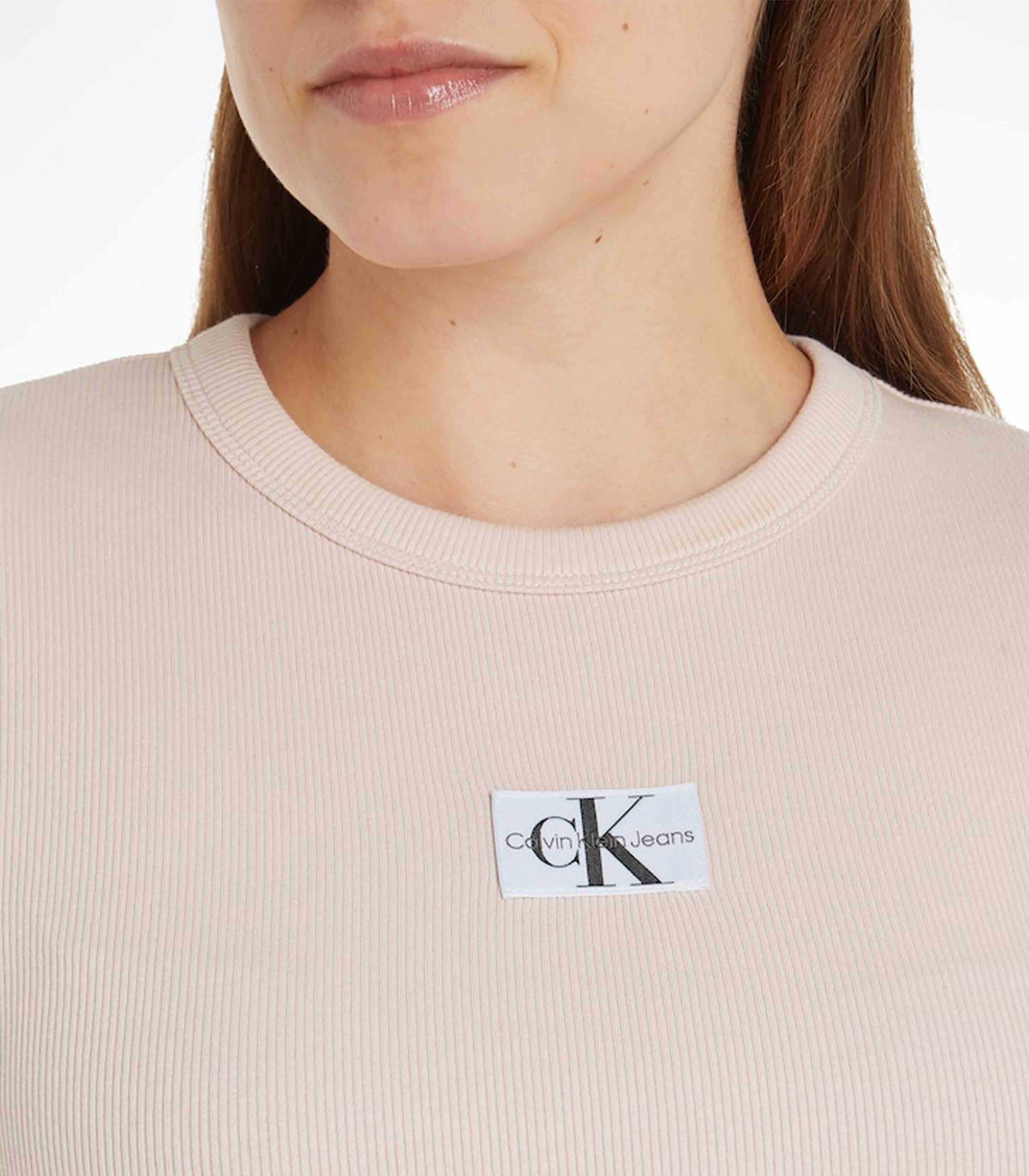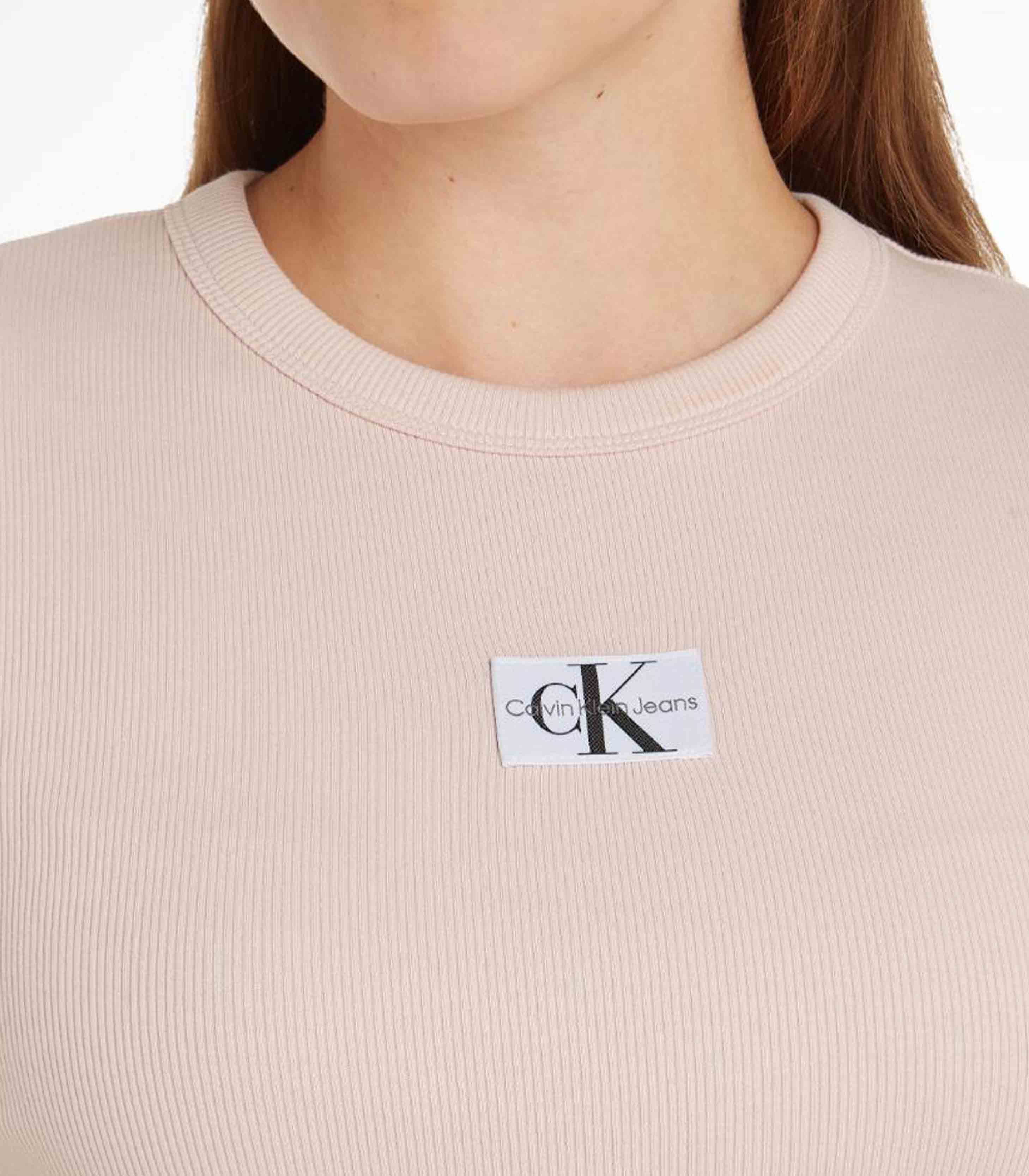 Calvin klein jeans - woven label rib slim tee , s , sepia rose , style j20j223358