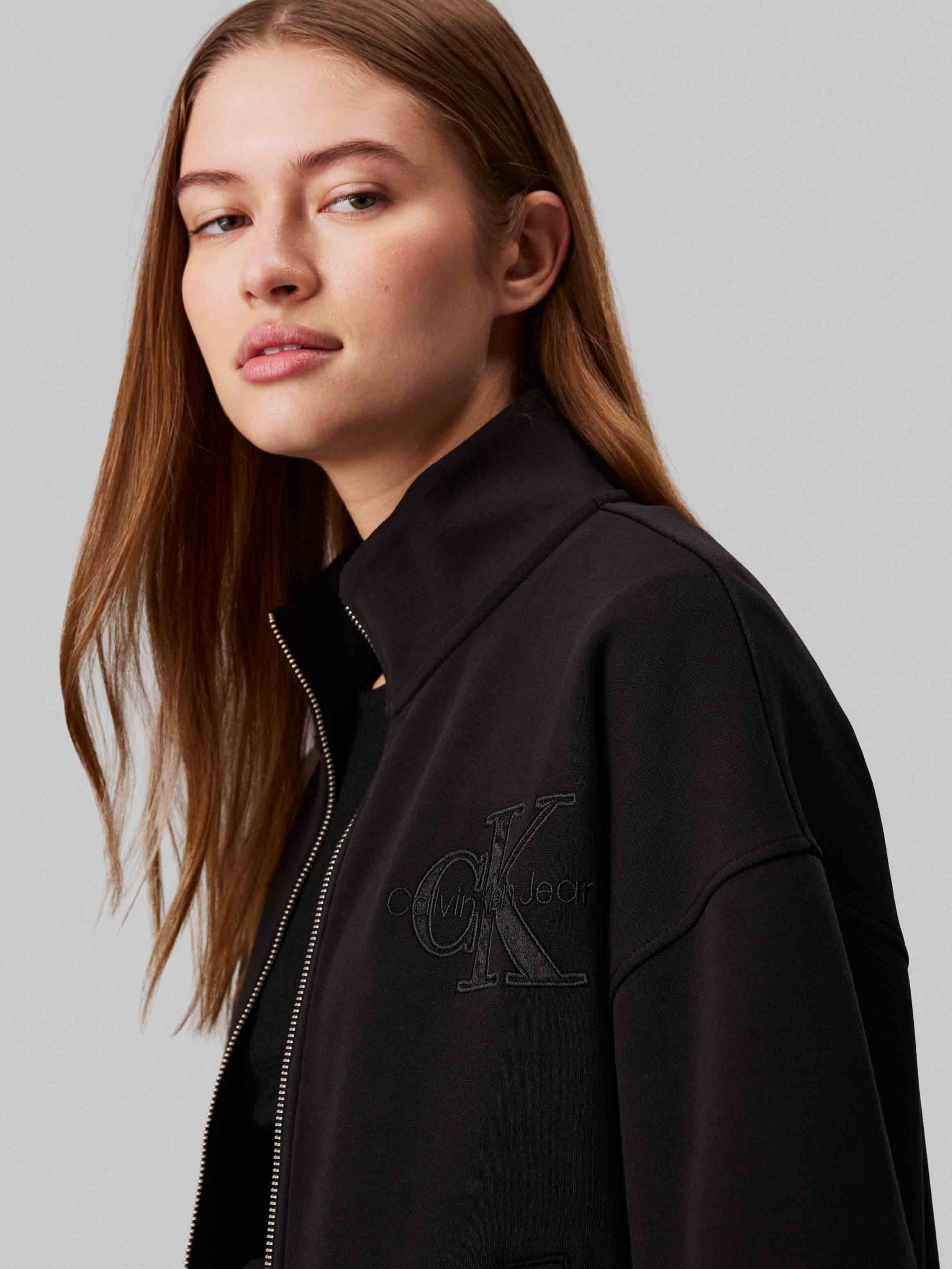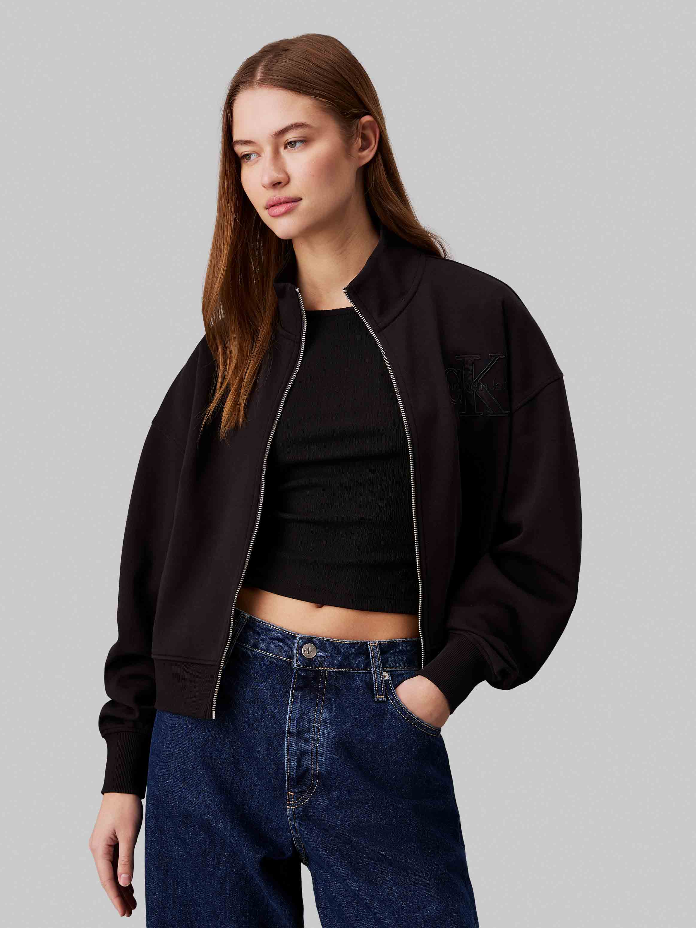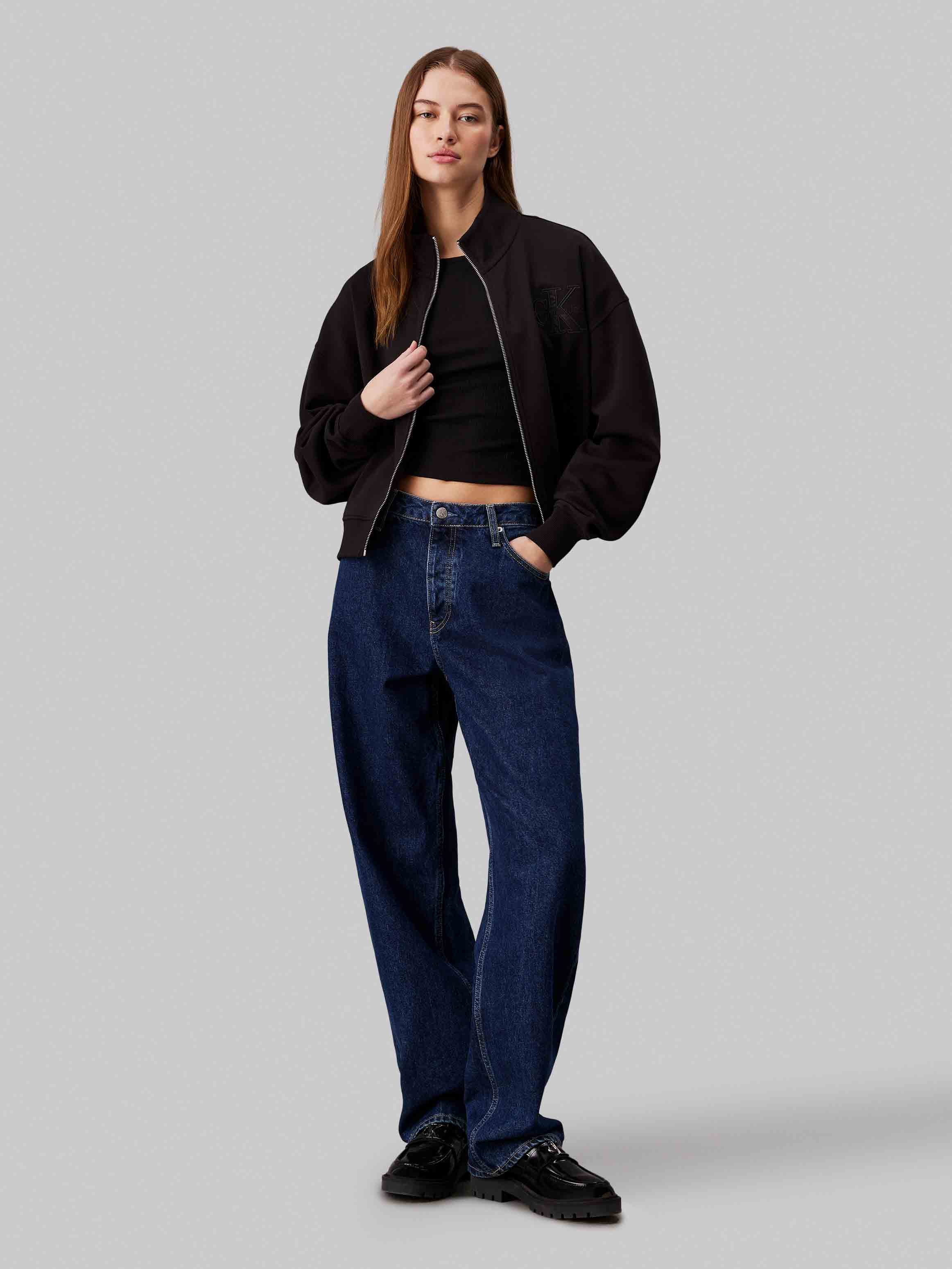 Calvin klein jeans - satin applique zip-through , xs , ck black , style j20j223922