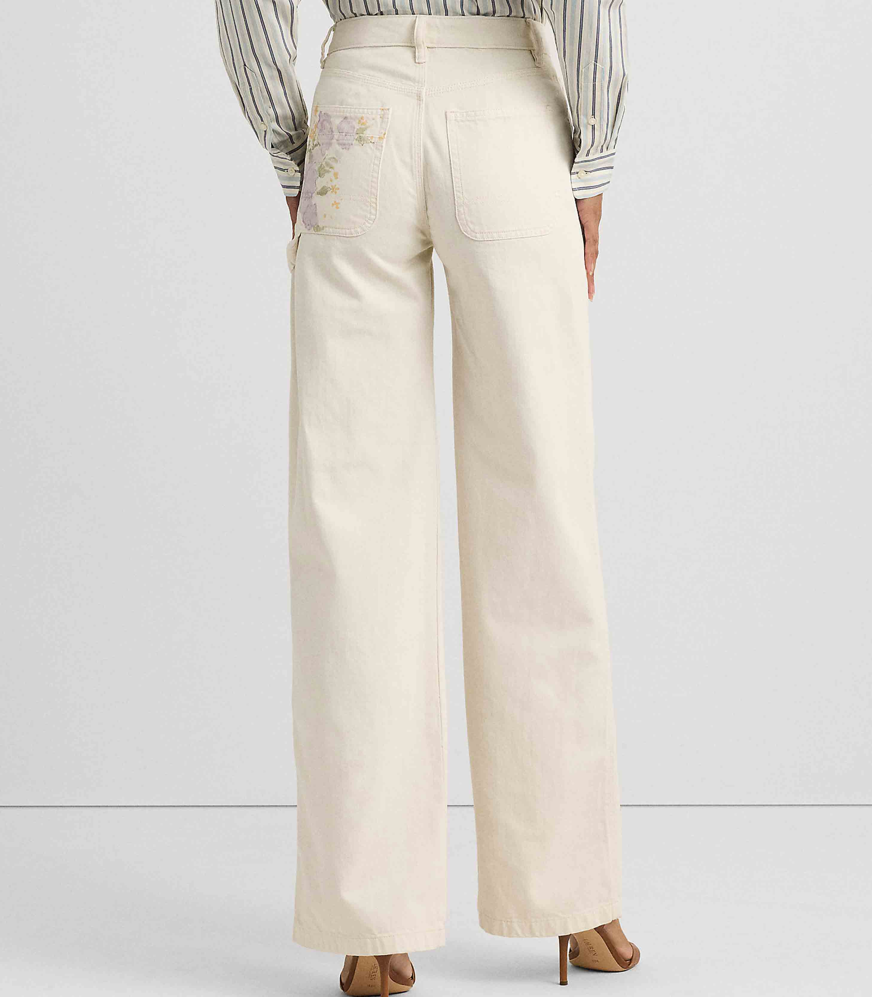 • Made with comfortable right-hand-twill denim, these relaxed jeans are cut for a flattering high rise and a wide-leg silhouette. Accented by Lauren’s signature embroidered logo at the back pocket, this pair showcases a romantic floral print.
