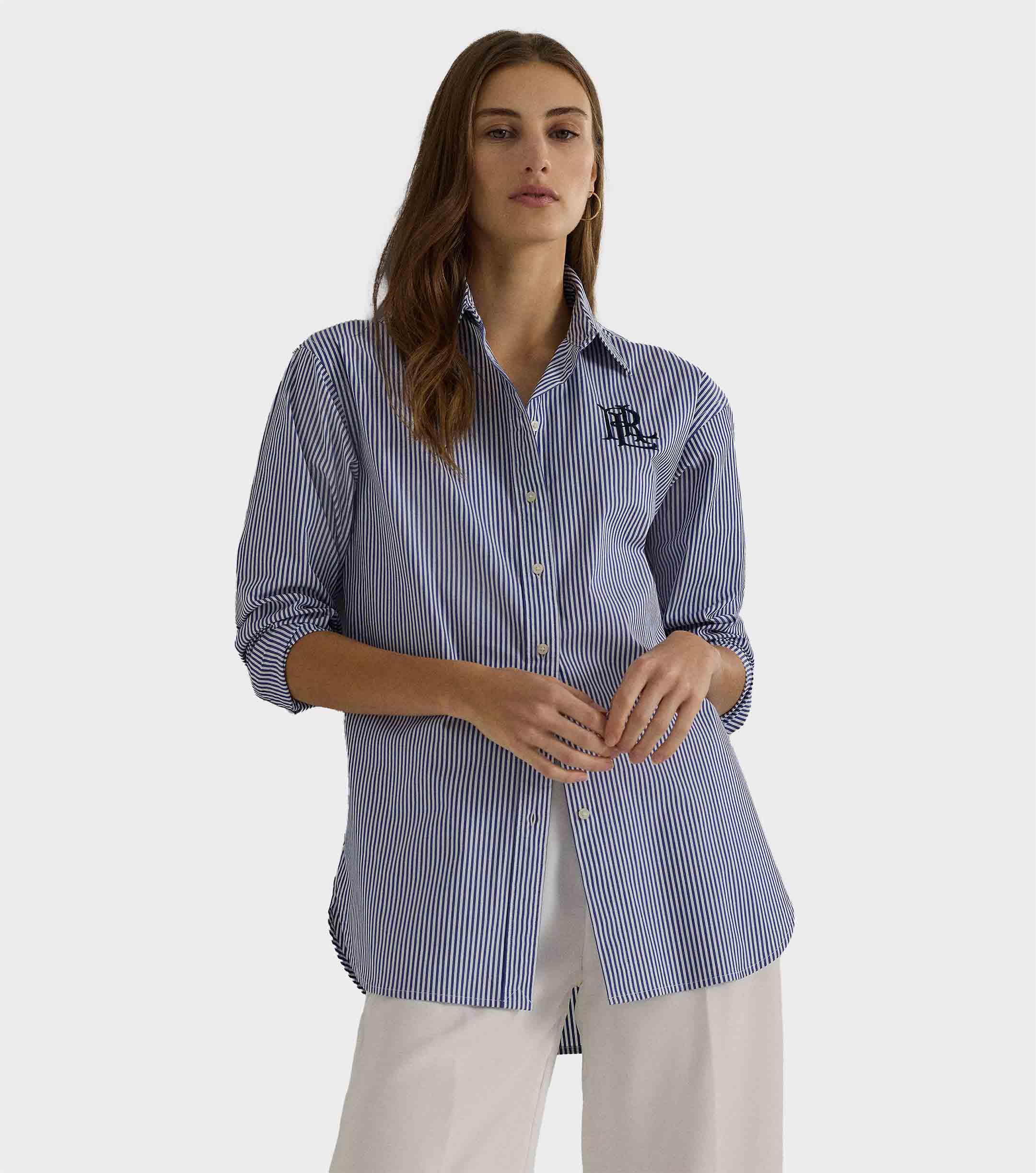 • Point collar. Buttoned placket. "Lauren Ralph Lauren"-engraved buttons.
