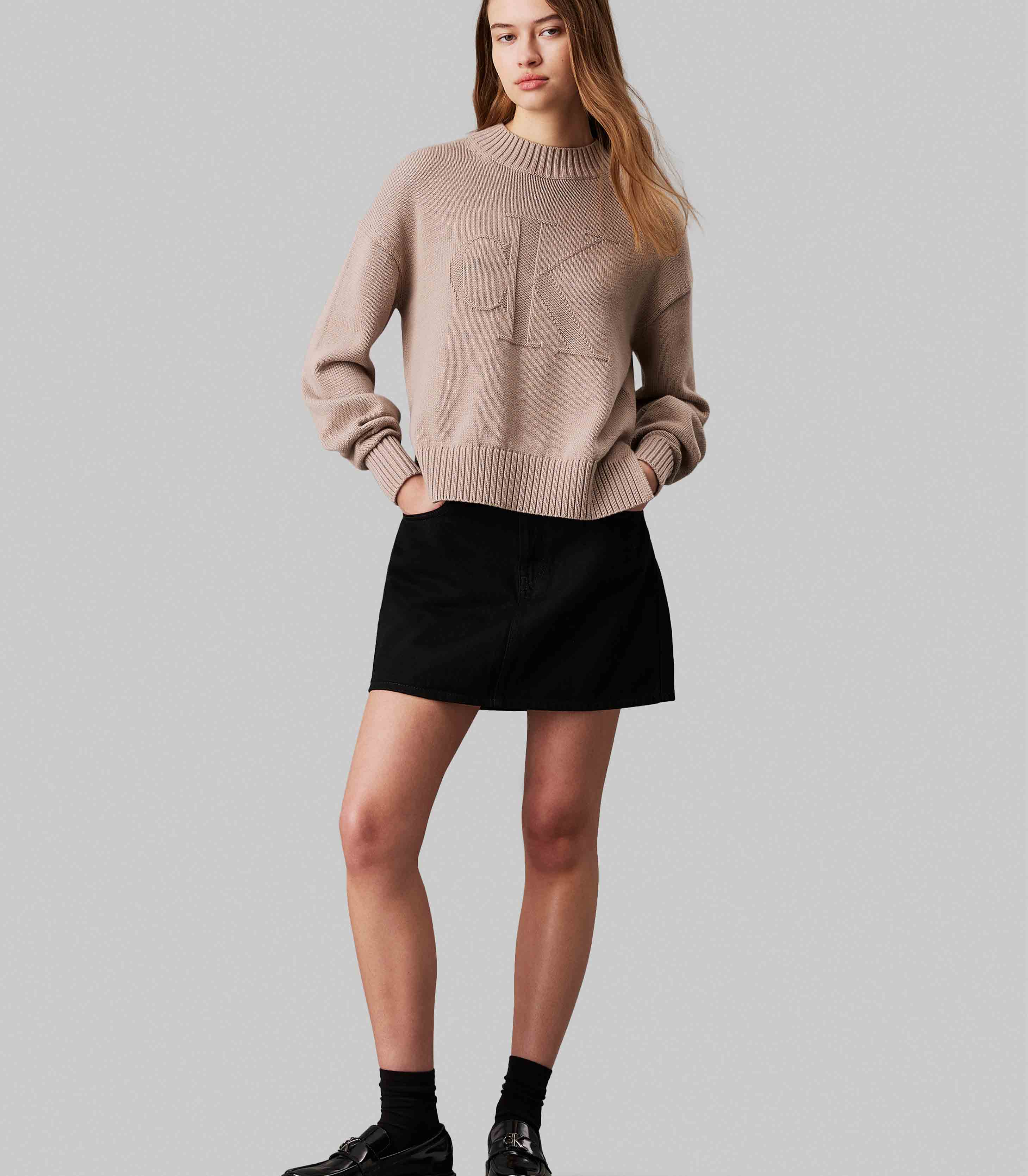 Calvin Klein - CK INTARSIA LOOSE SWEATER , XS , Goat , Style J20J224224