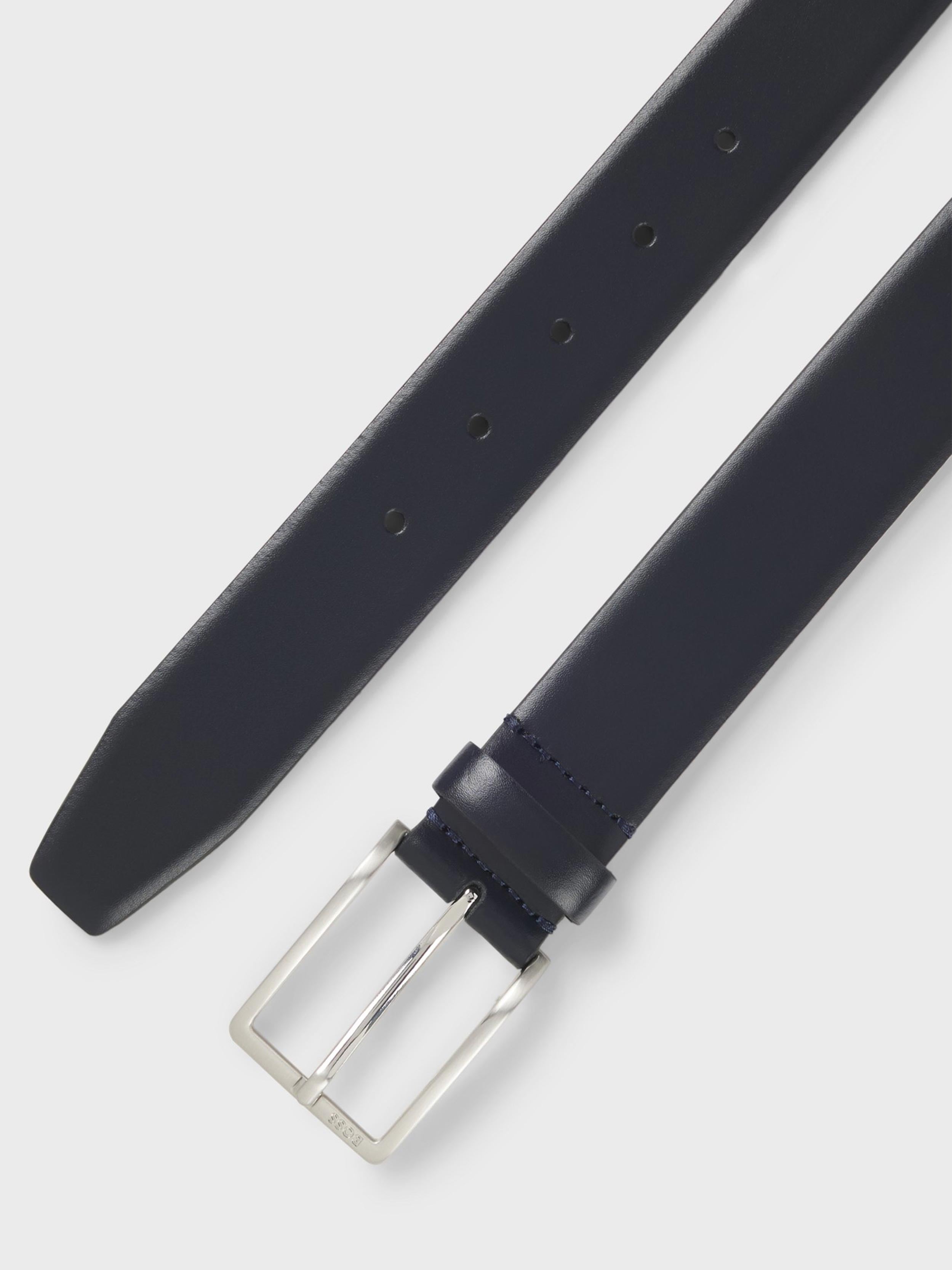 • Crafted in Italy with a brushed, logo-engraved pin buckle, this timeless 3.5cm BOSS Menswear belt will complete any ensemble. Rich Italian leather. For the best fit, we advise ordering a belt one size larger than your waist size. This product contains at least 80% better raw materials. The leather used to make this product has been sourced from certified tanneries.