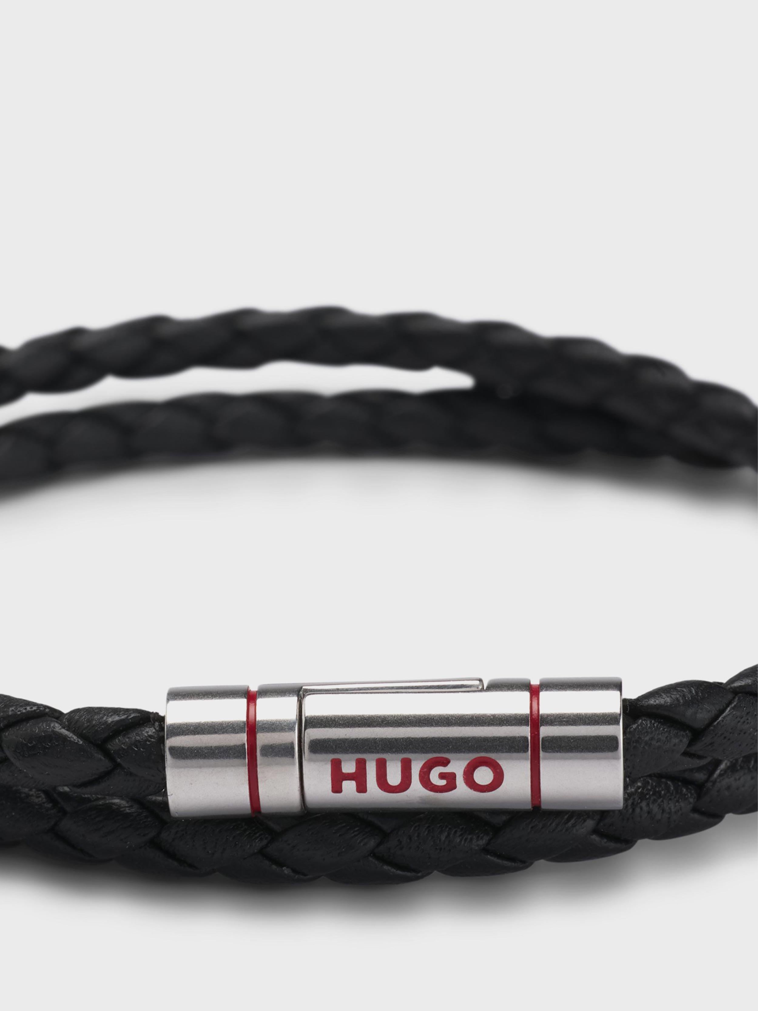 HUGO - Men's Double Braided- Leather Cuff With Logo Closure