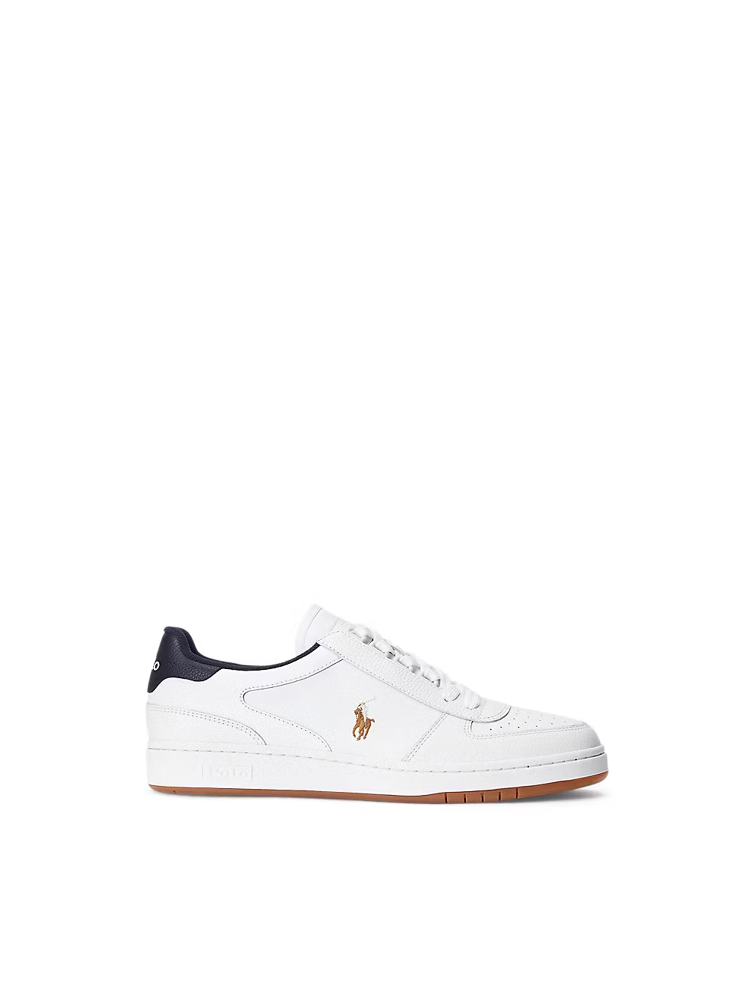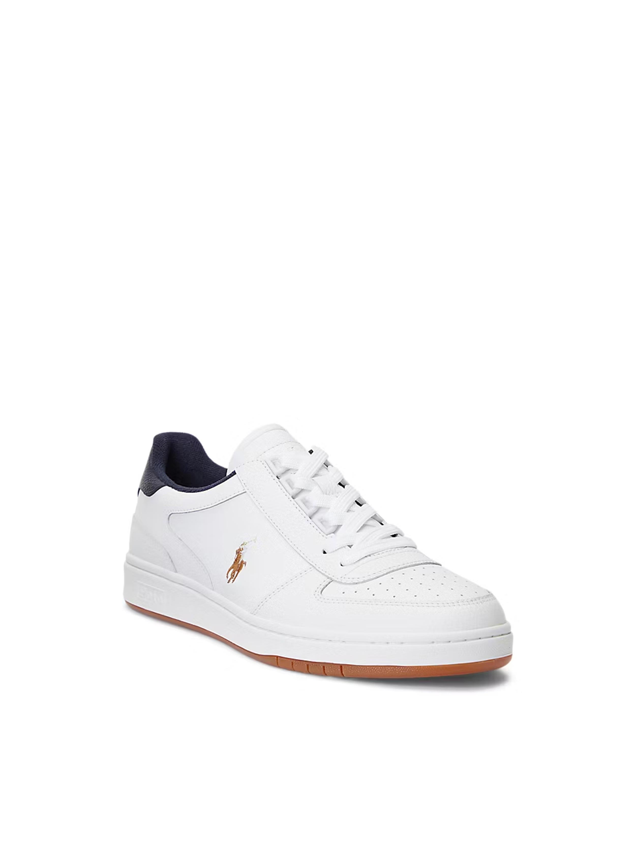 • The Court sneaker integrates classic streetwear style with modern sport technology and a high-density memory foam footbed for support. This leather version features a perforated vamp and Ralph Lauren’s signature multicolored embroidered Pony at the side.