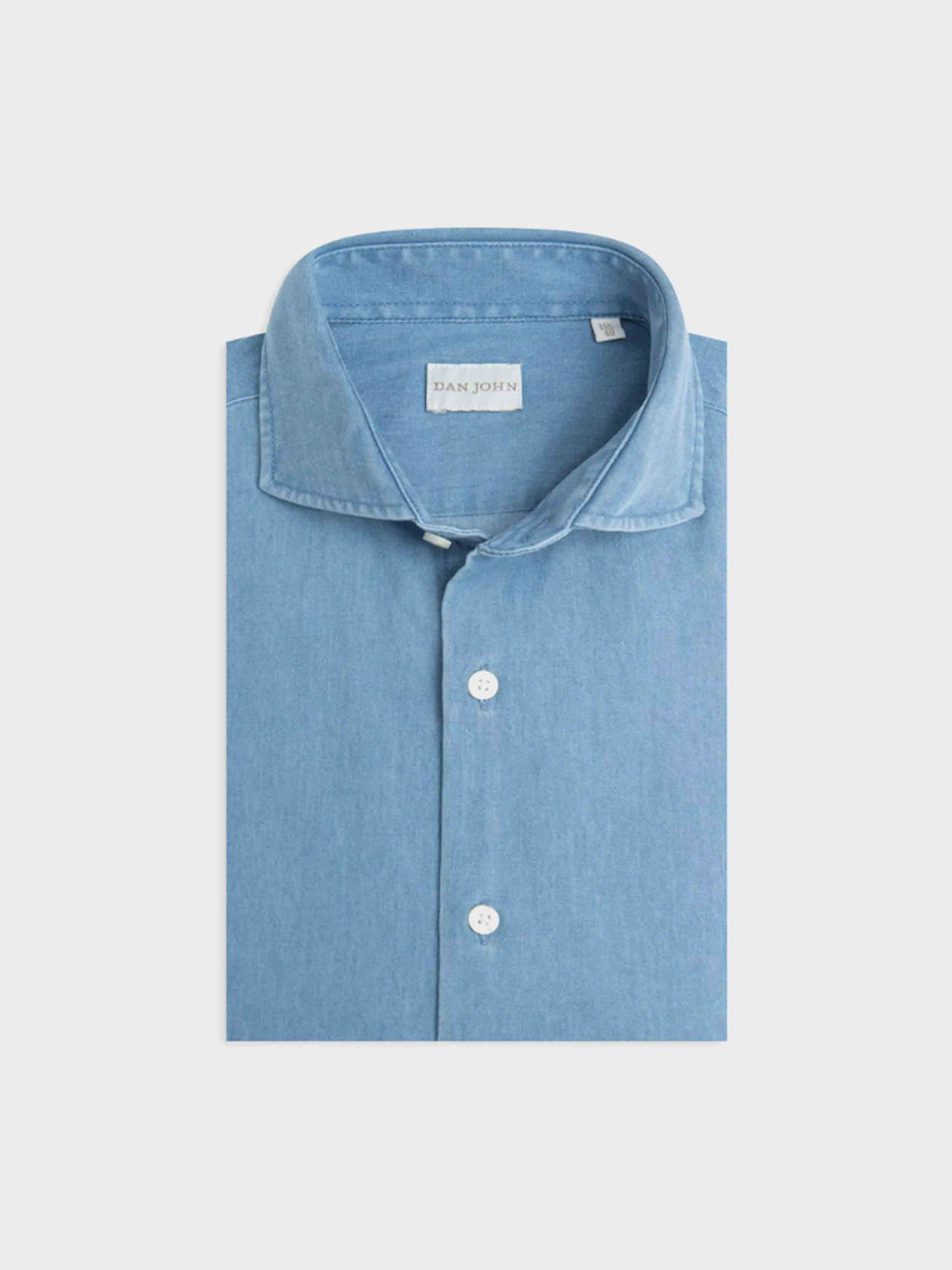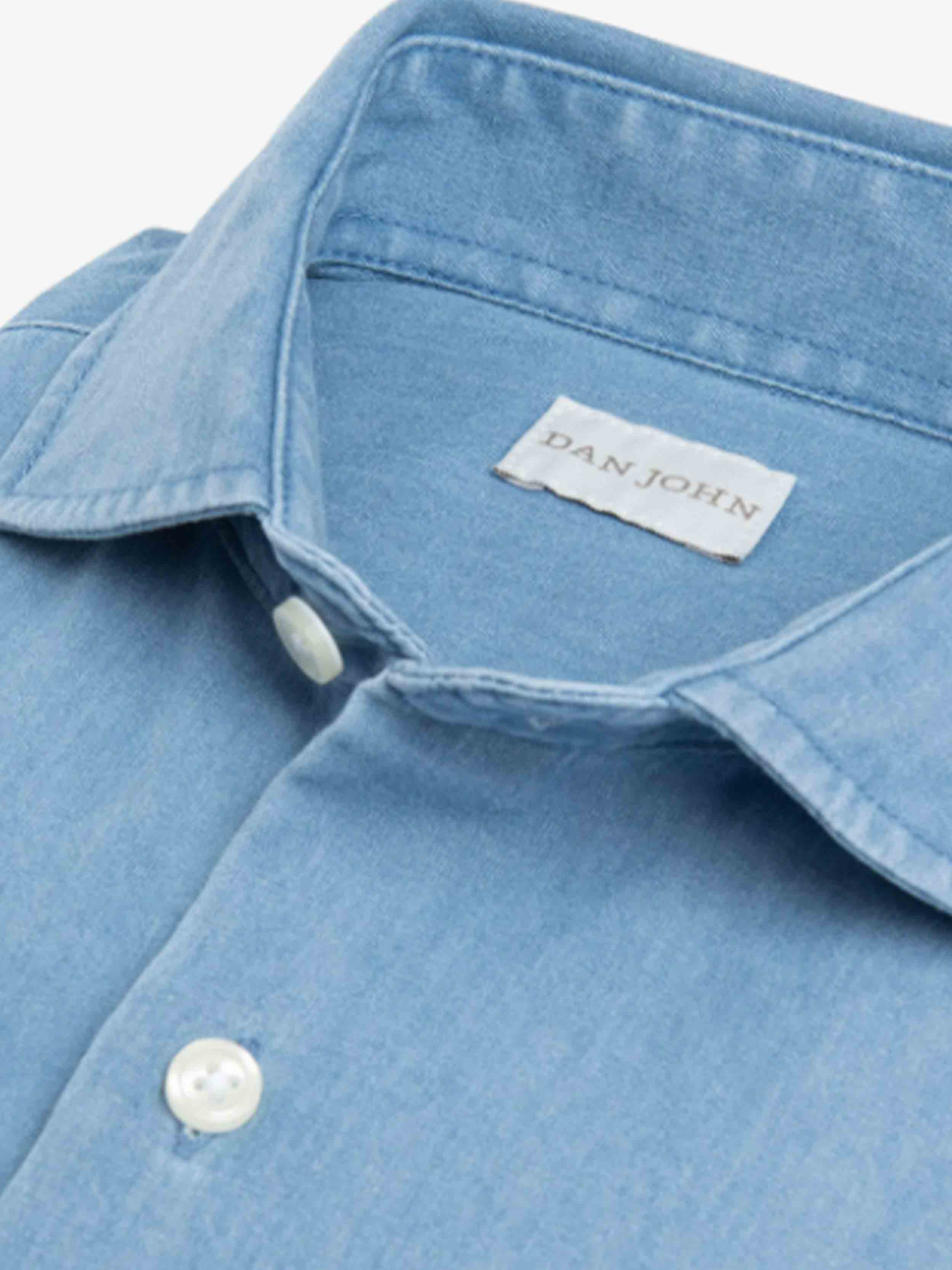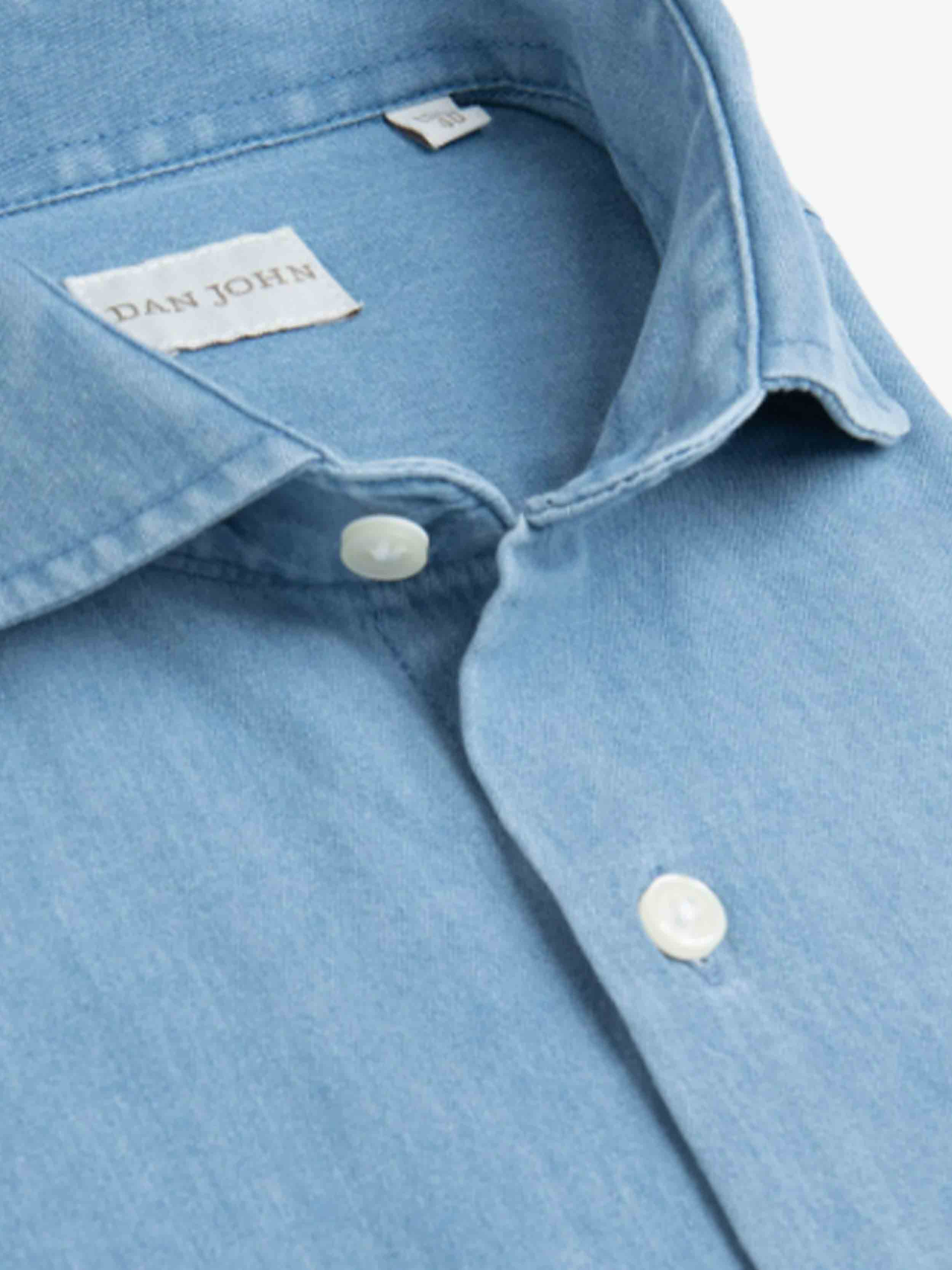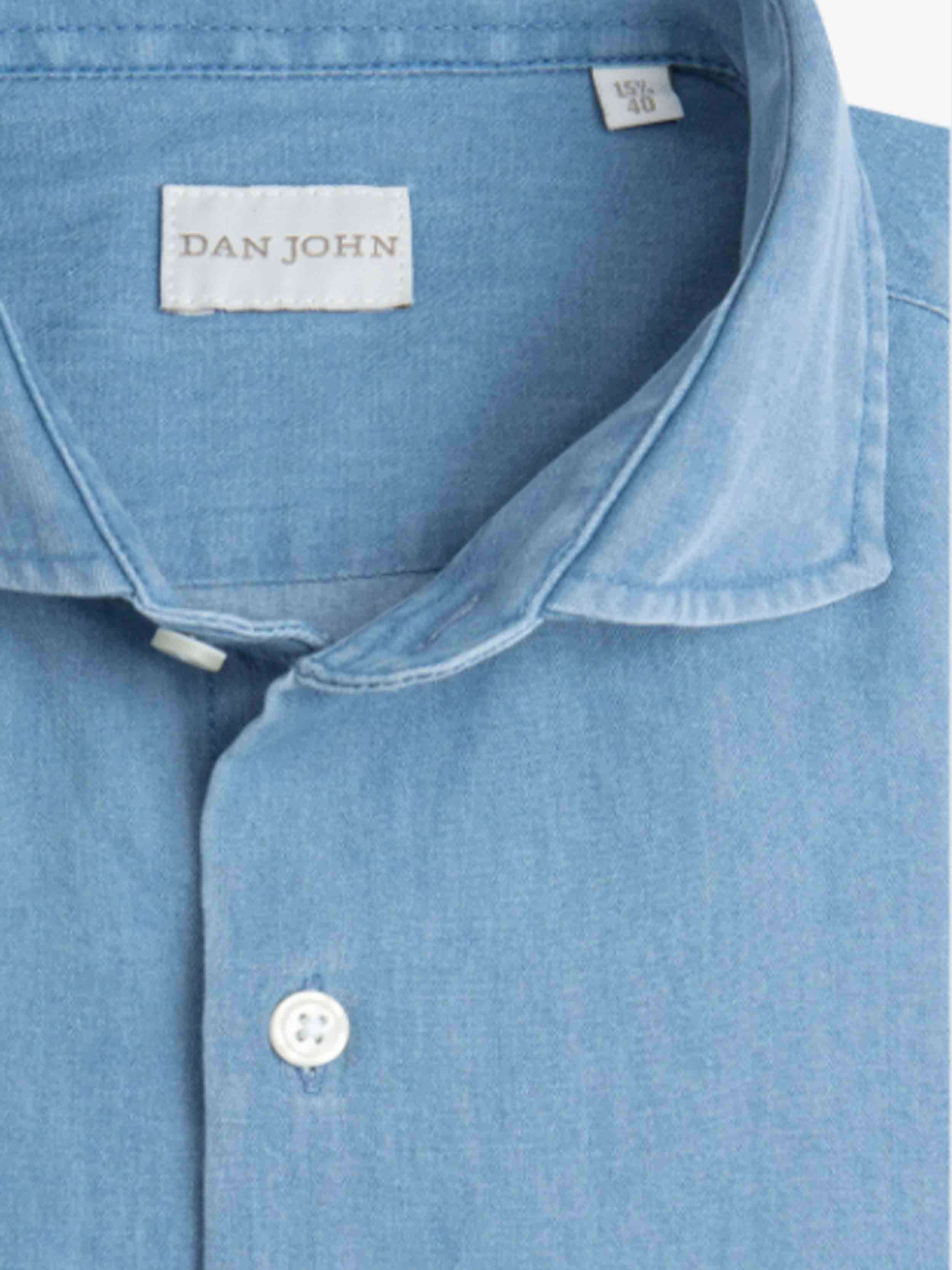 • Dan John - Mid-length denim shirt, slim fit, soft Italian collar