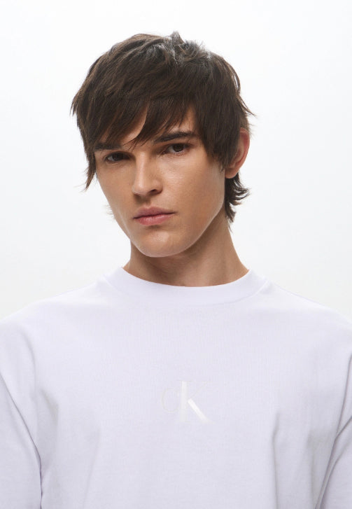 Calvin Klein - SS REL LIQUID CK MONOLOGO TEE , S , BRILLIANT WHITE , Style LV04RAB812