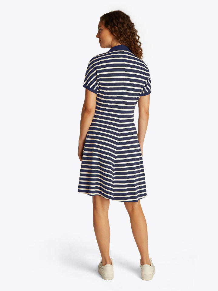 Tommy Hilfiger - LYOCELL OPEN-NK F&F POLO DRESS , S , Dark Night Navy/Calico Stp , Style WW0WW44513
