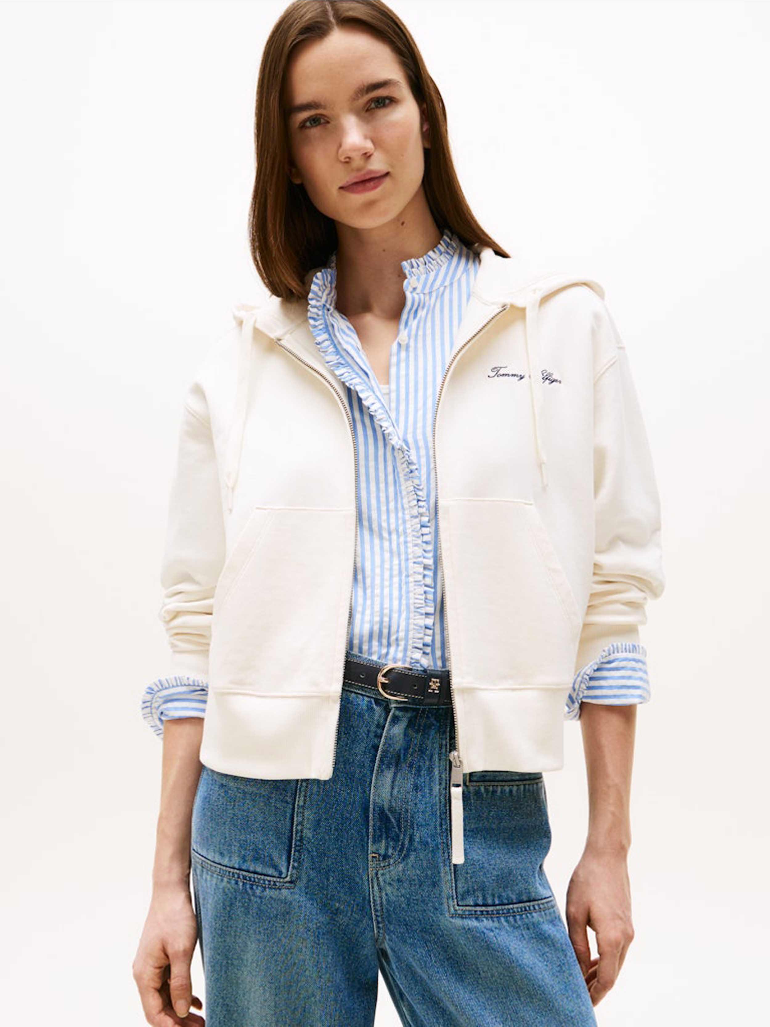 • Tommy Hilfiger - Women's Logo Embroidery Zip-Thru Pique Hoody