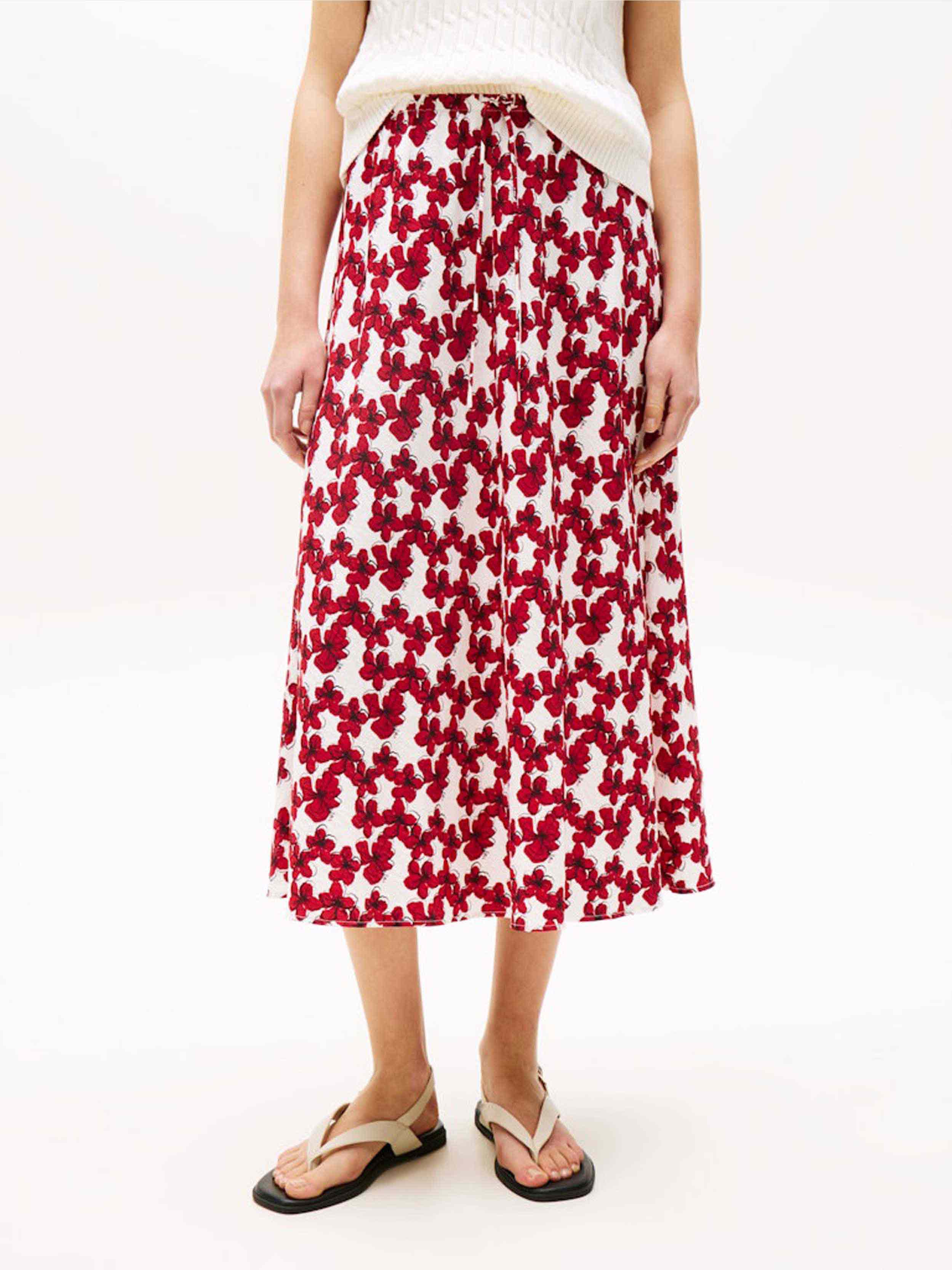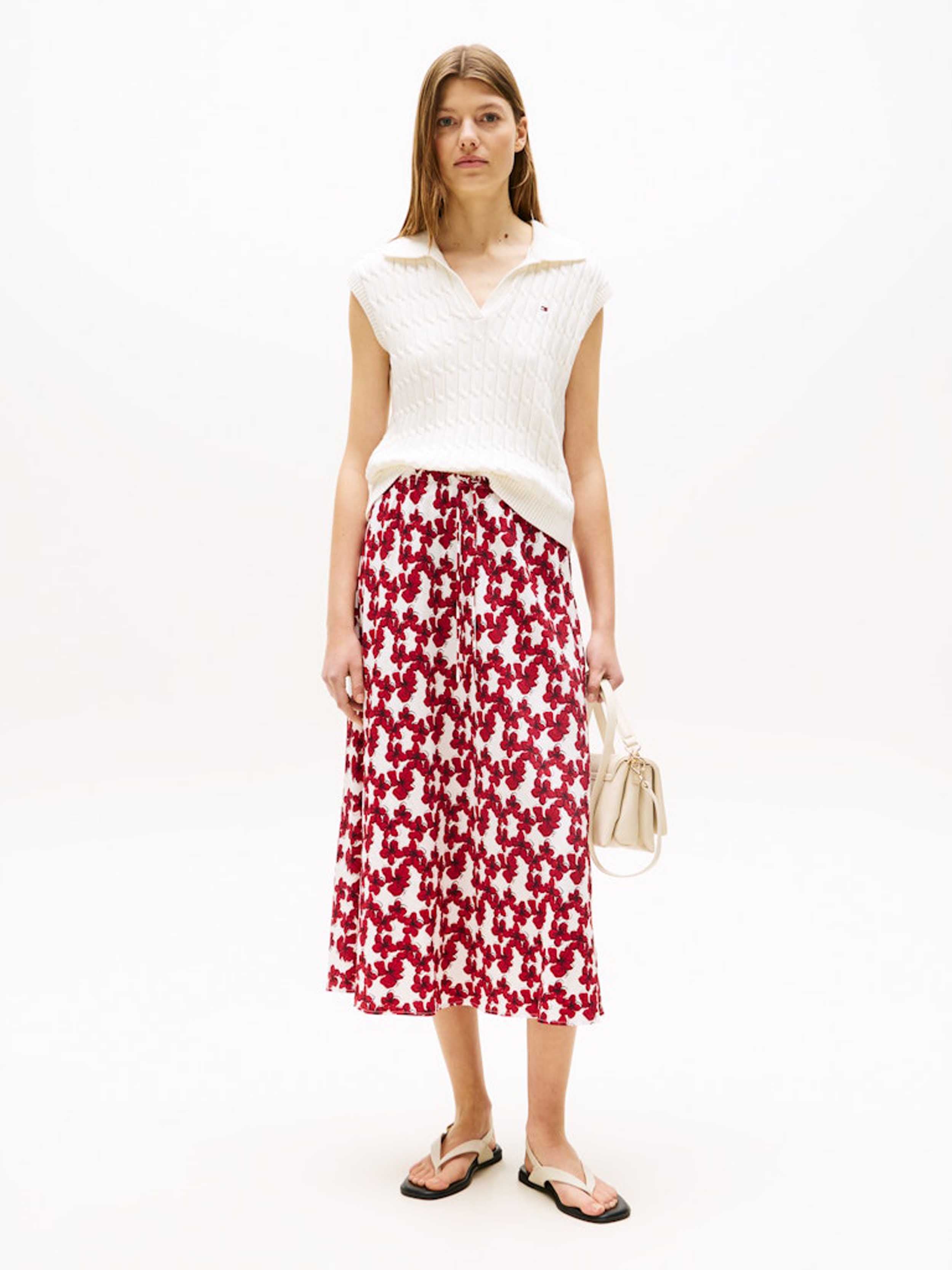 Tommy Hilfiger - TEXTURED MIDI BIAS SKIRT , 34 , Hibiscus Lines Med Red , Style WW0WW47175