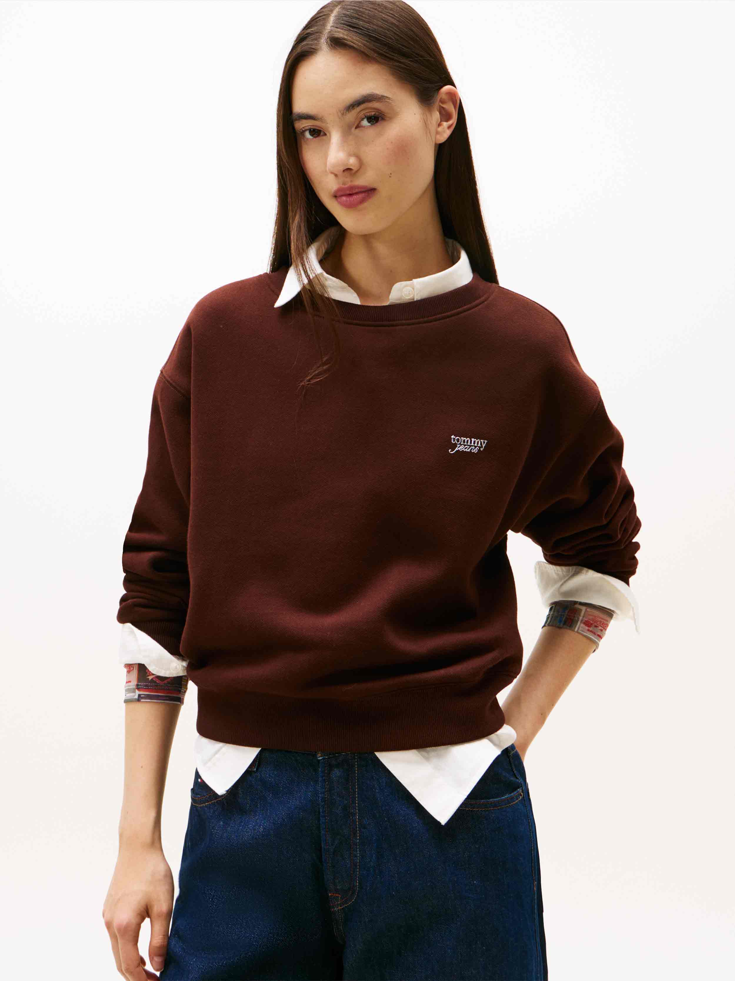 Tommy Hilfiger - TJW SILVER SCRIPT CREW , S , Rich Brown , Style DW0DW21961