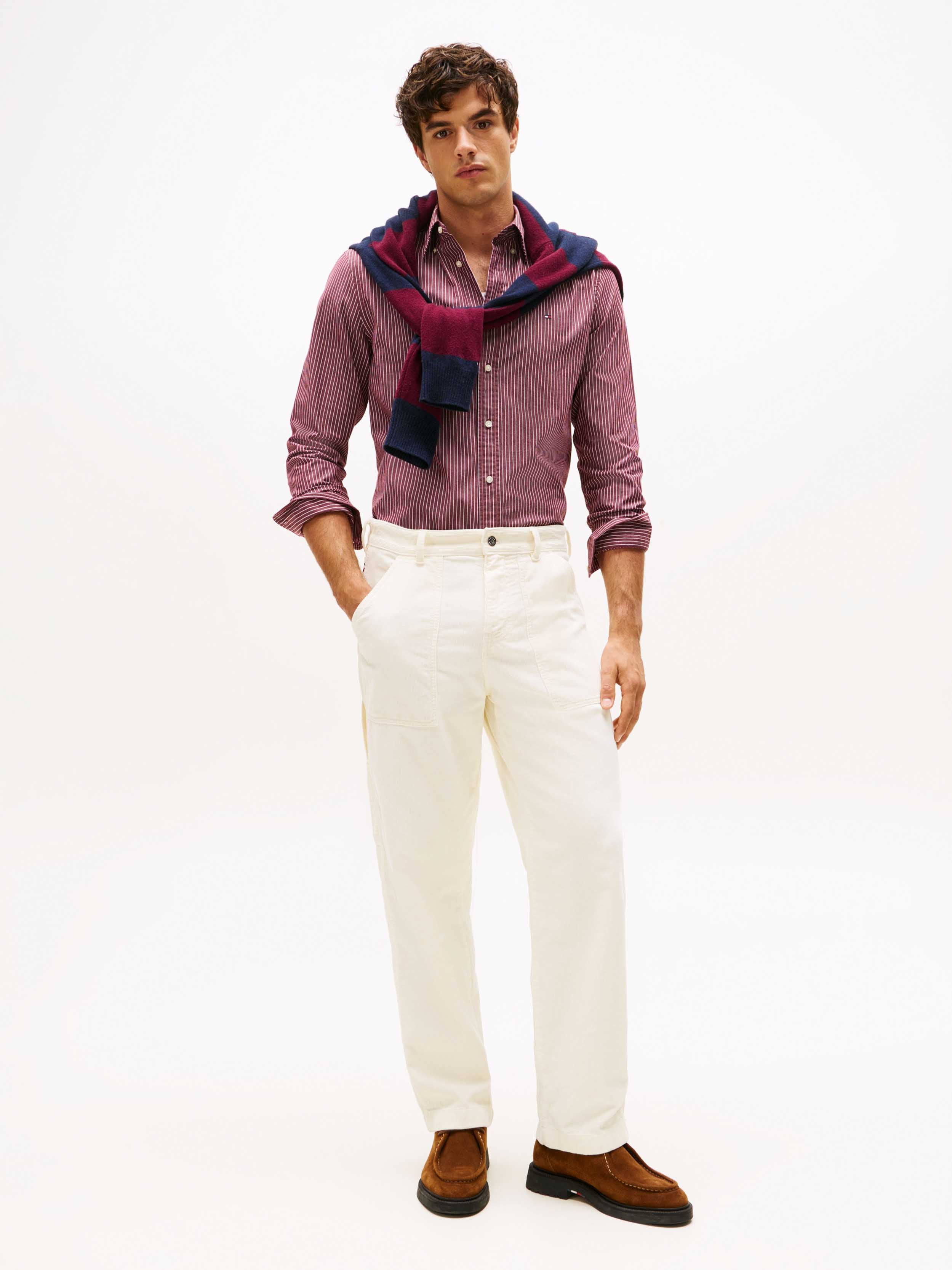 Tommy Hilfiger - CORE HAIRLINE POPLIN RF SHIRT , M , Deep Rouge / Stripe , Style MW0MW41399