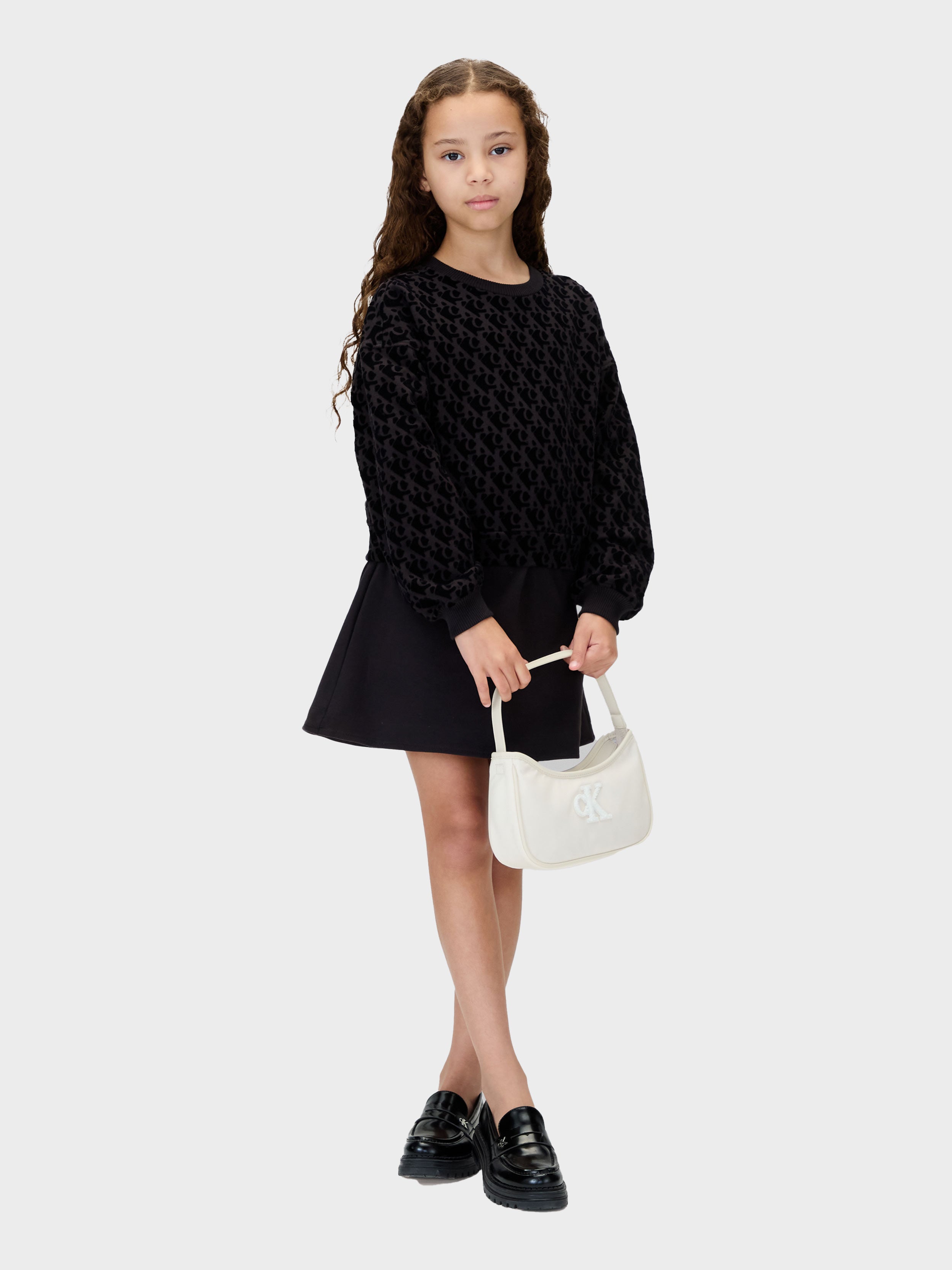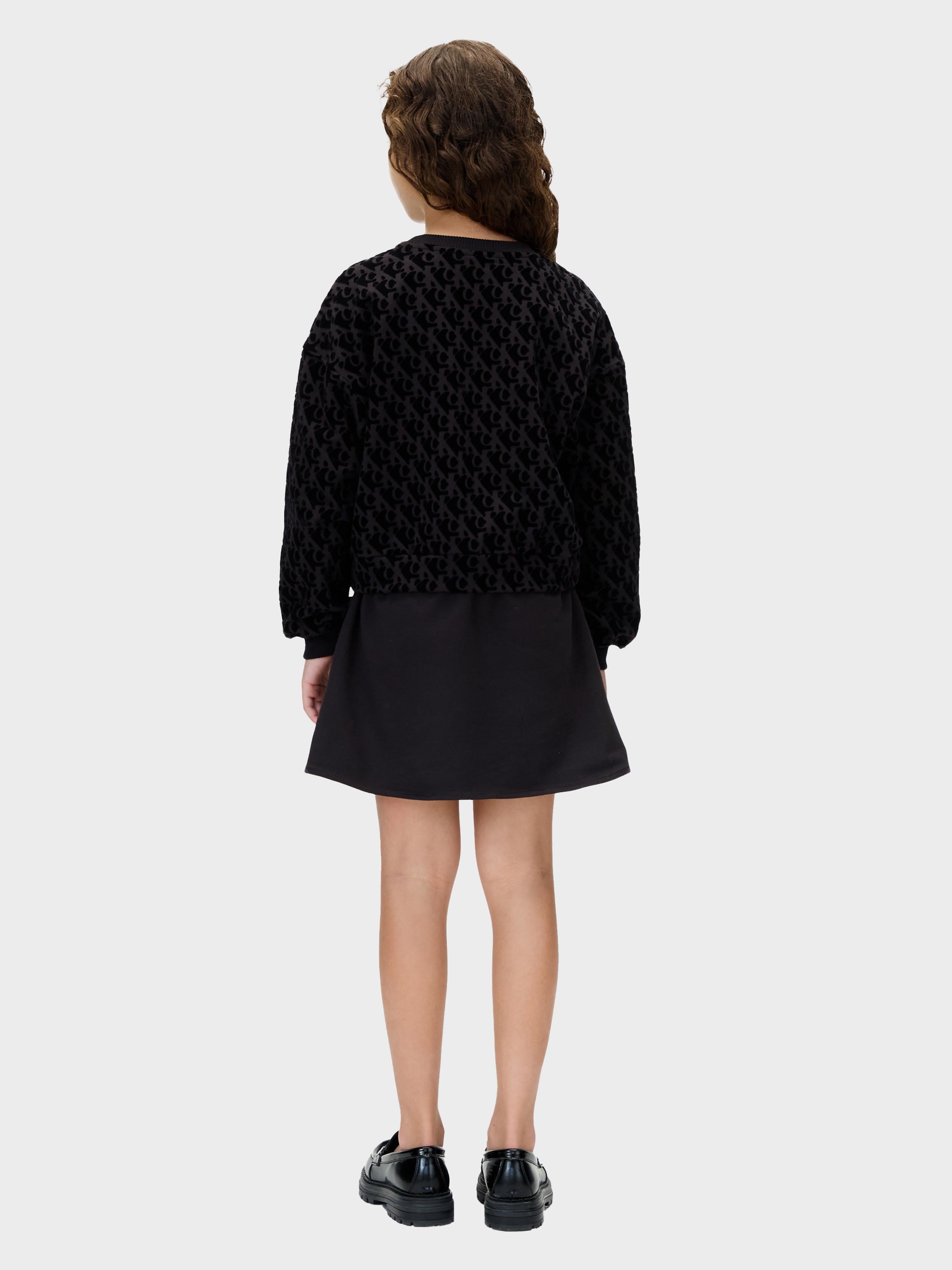 Calvin Klein - LOGO AOP FLEECE LS DRESS , 8 , CK Black , Style IG0IG03007