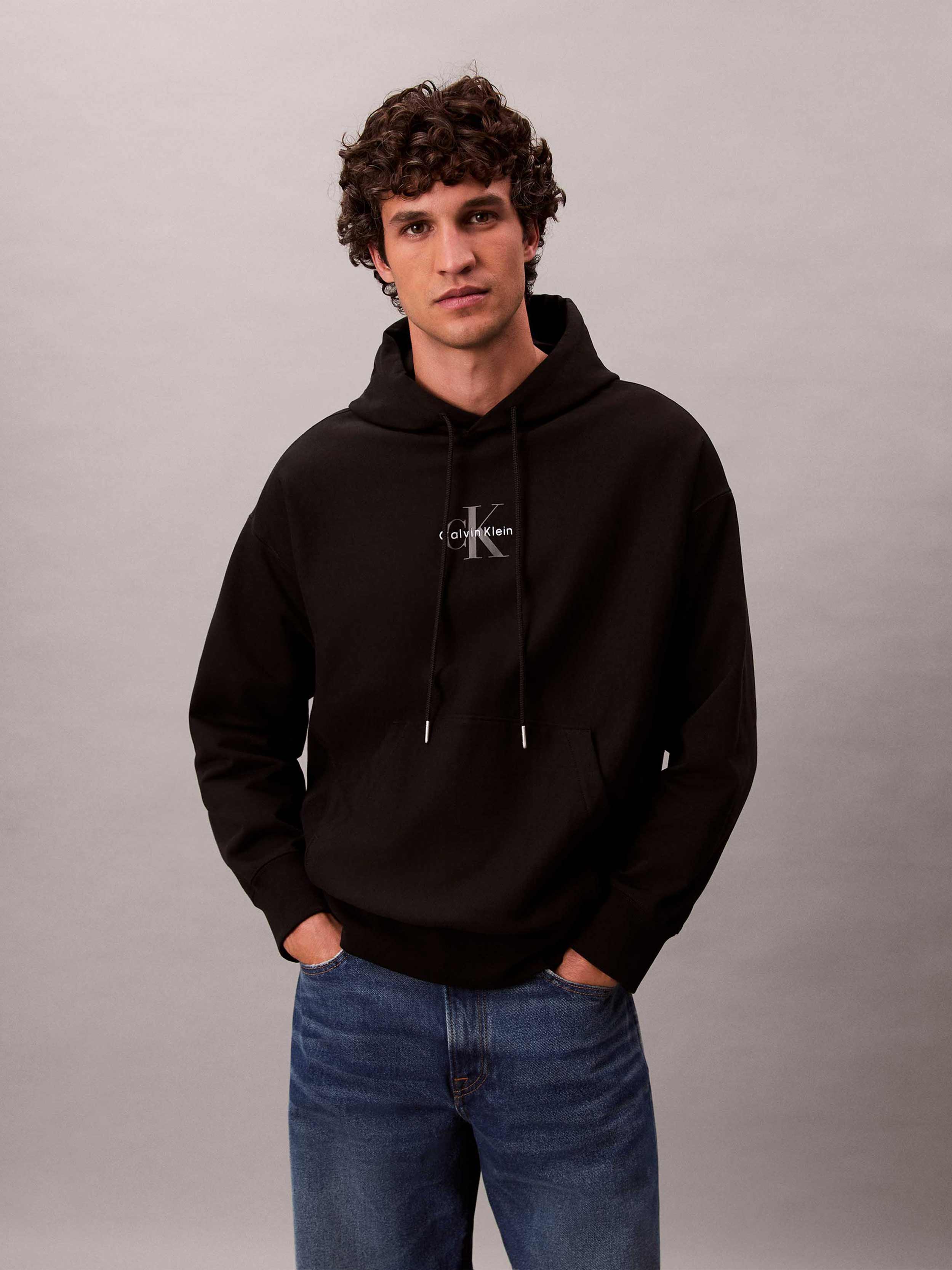 Calvin Klein - PREMIUM TERRY MICRO MONOLOGO HOO , L , Black , Style LV04RC281G