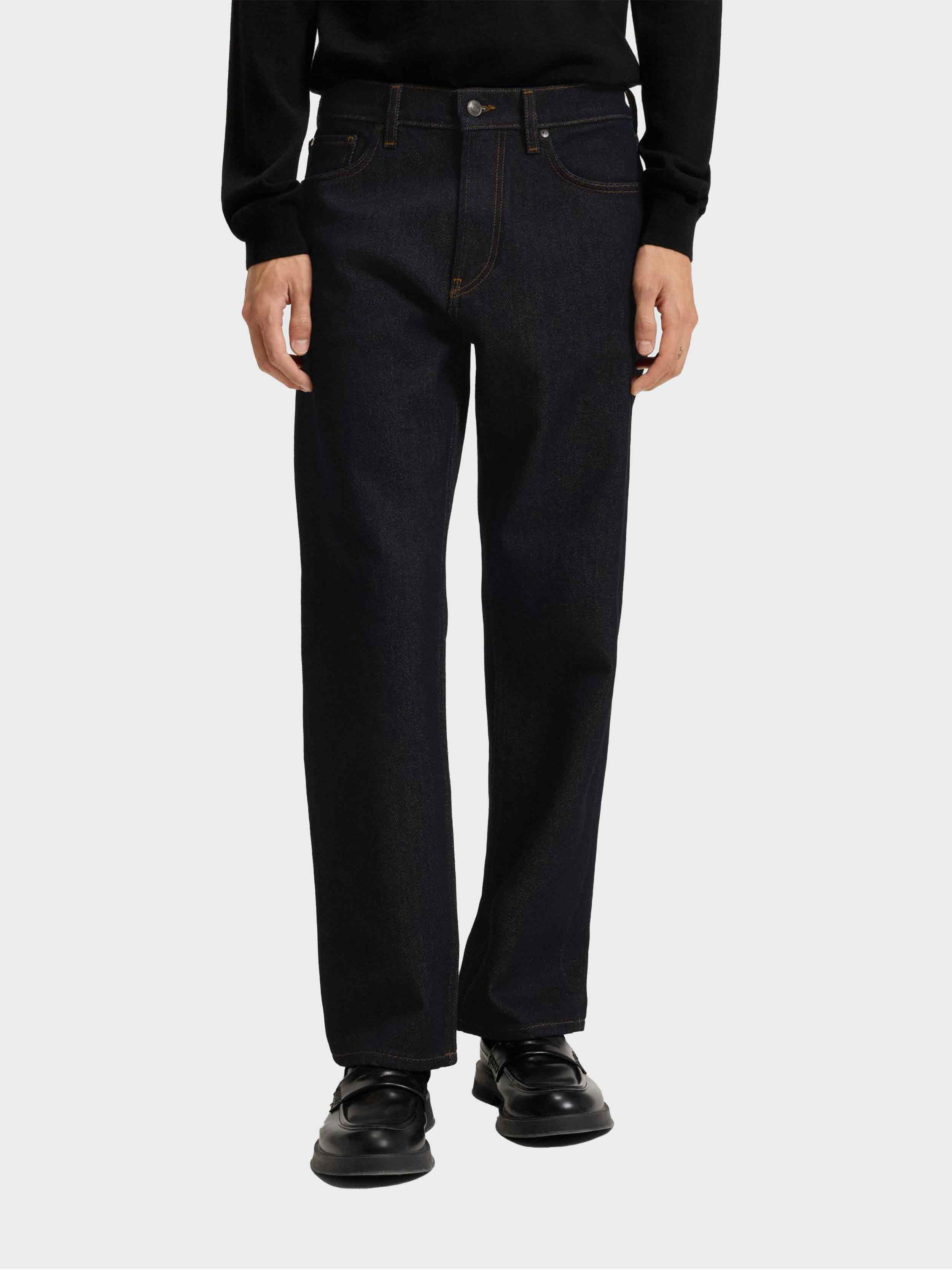 HUGO - Men's Regular-Fit Jeans In Dark-Blue Heavyweight Denim