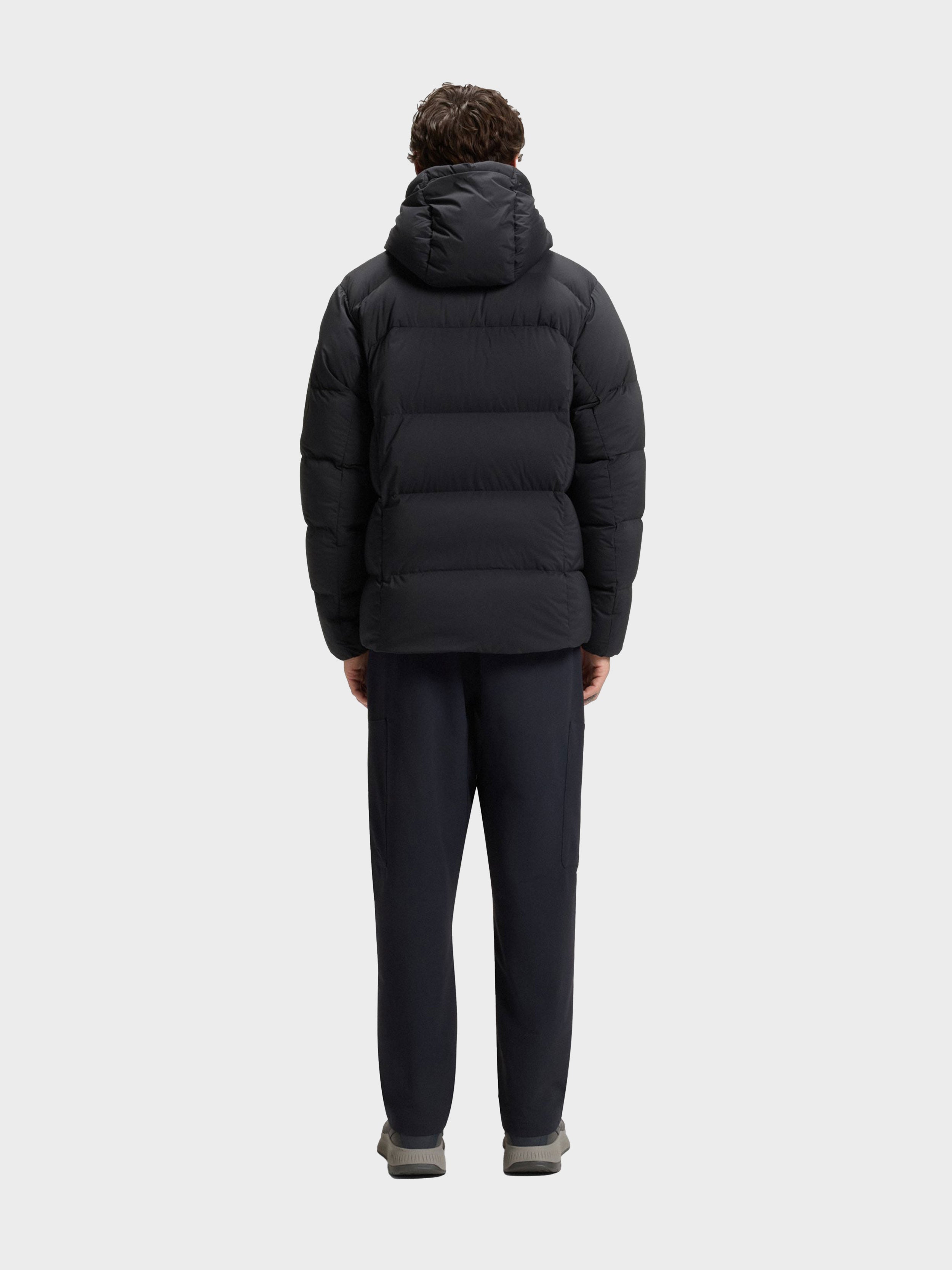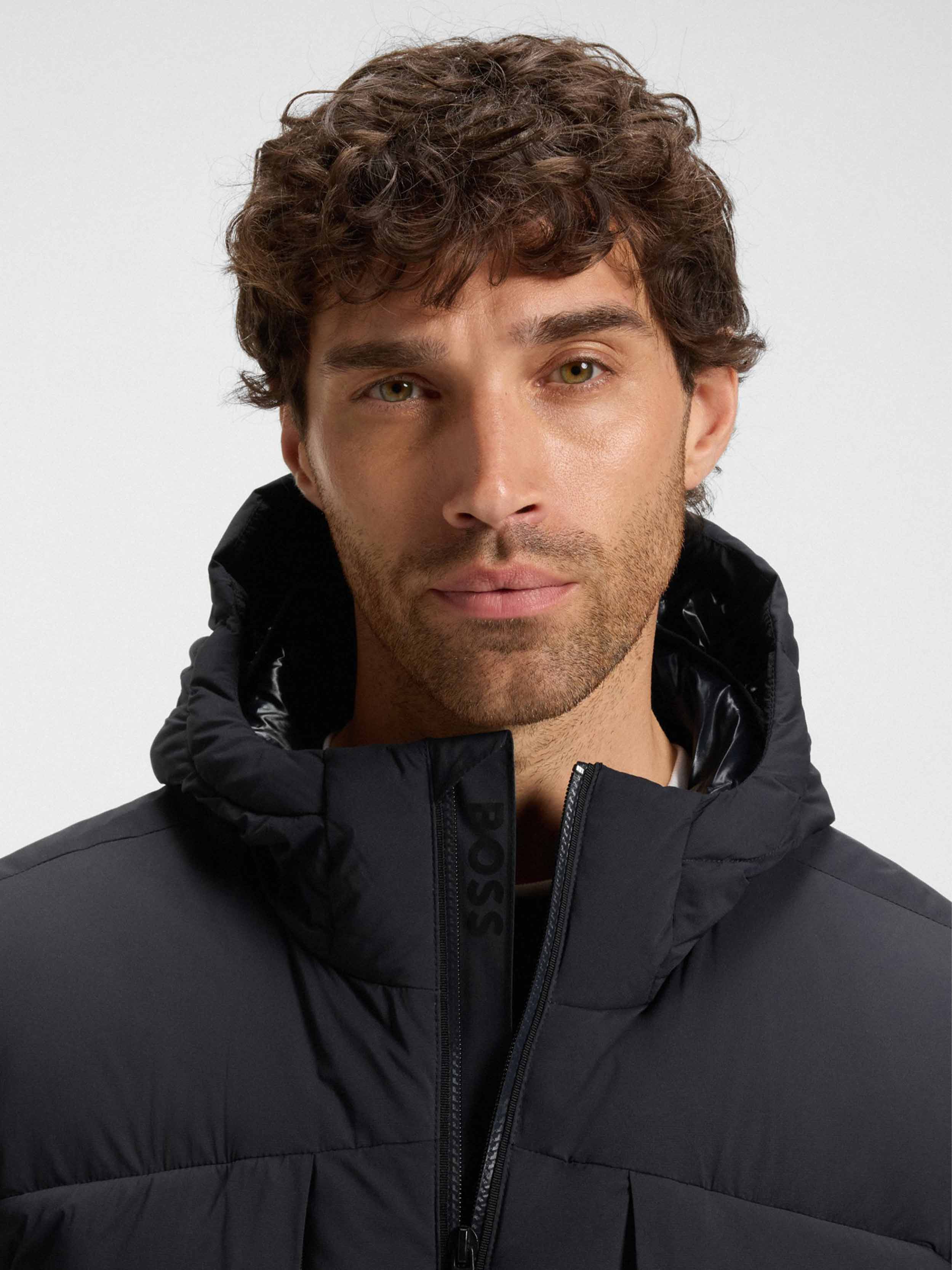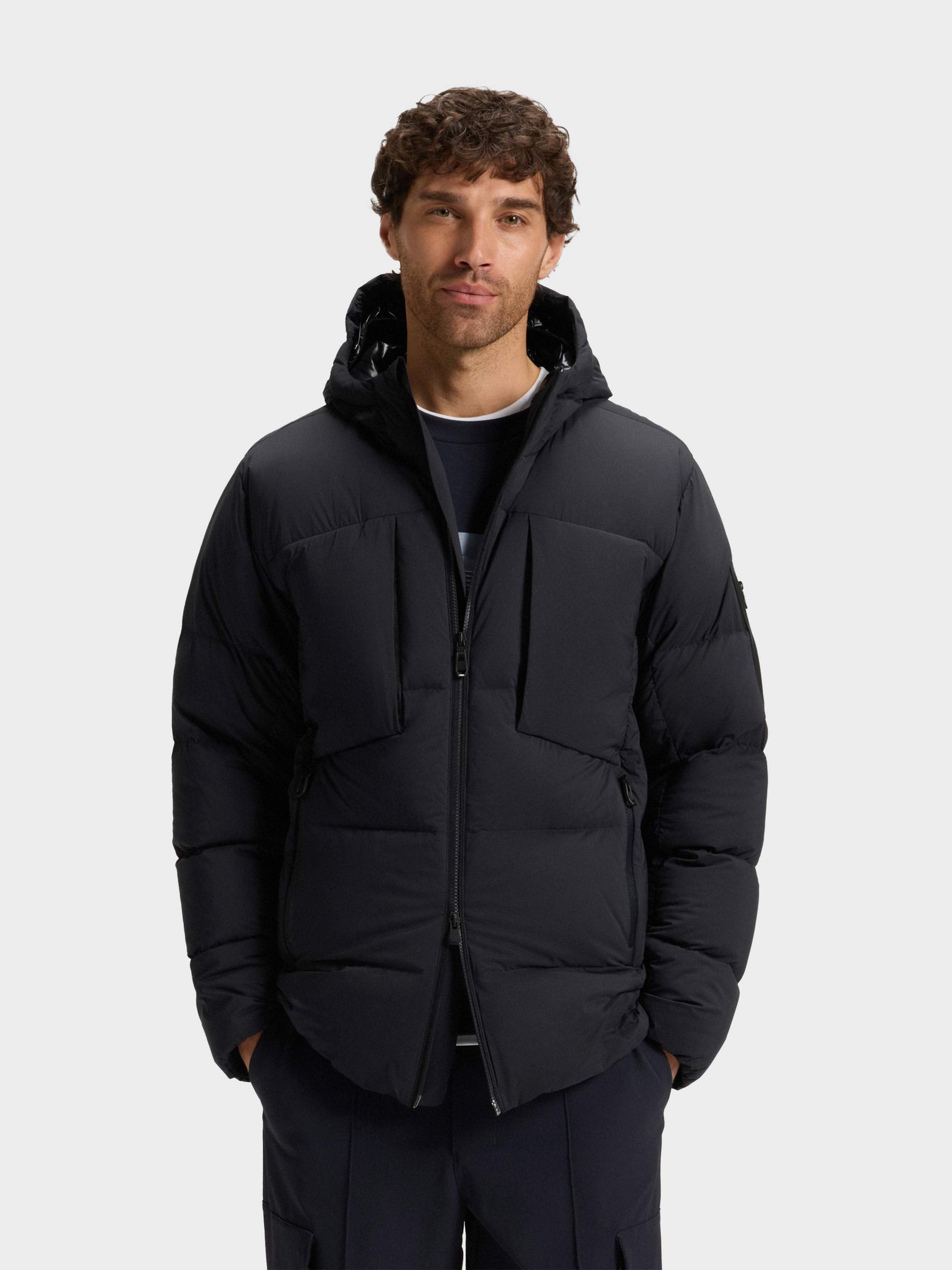 • RIPLITE / jacket / protective high winter down filled (80% duck down + 20% duck feather) / ultra light 4-way stretch quality for high freedom of movement / water-repellent finishing / front closure with comfortable 2- way zip with technical carbon look / front pockets and chest pockets with zip / elasticated cuffs / hood with windshield and elastic binding for protection / inside pocket for extra storage option / BOSS logo print on underplacket / iconic logo zip pocket on left sleeve