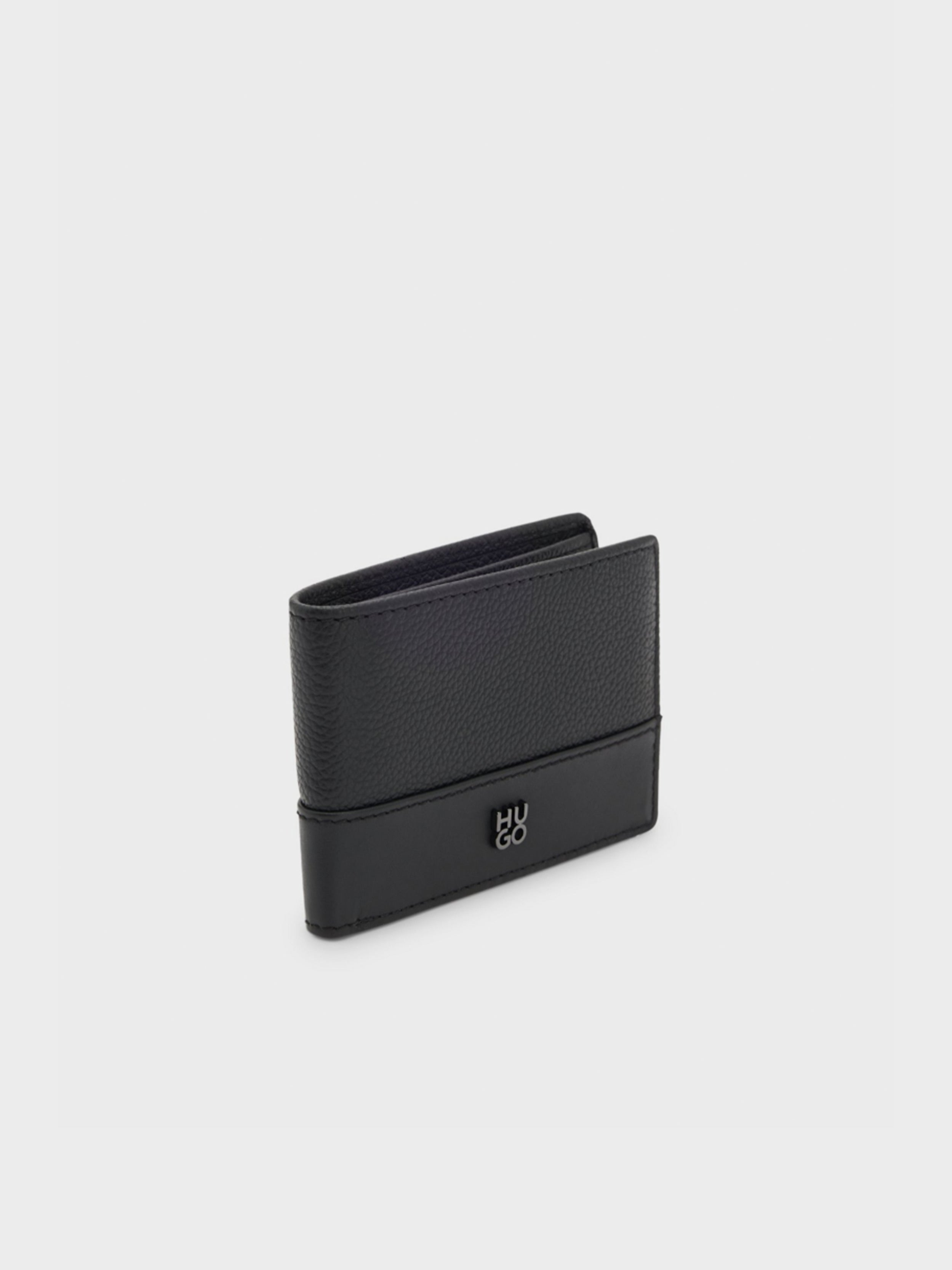 HUGO - Men's Leather Wallet with Stacked-Logo Trim
