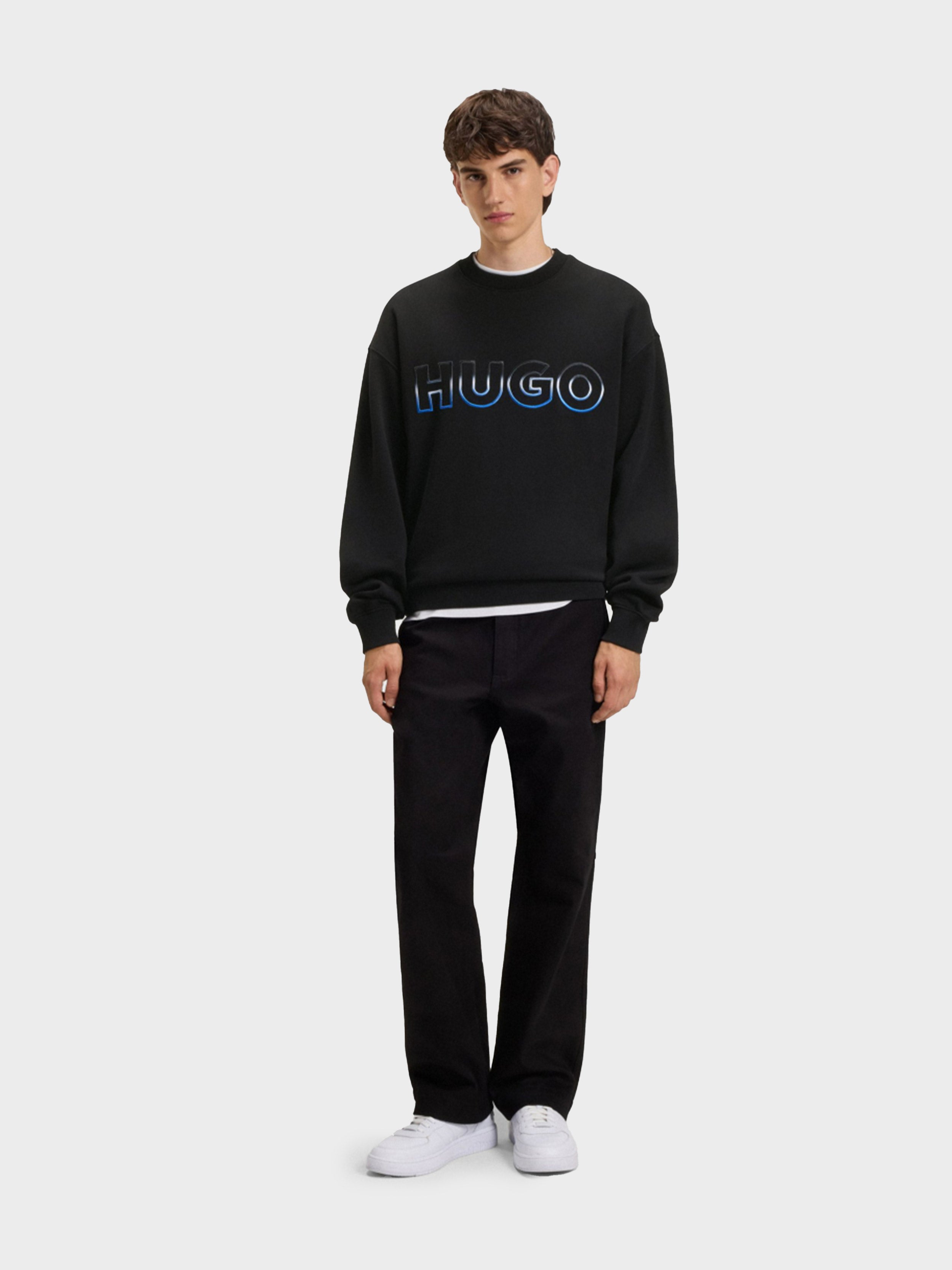 • HUGO - Men's Cotton-Terry Sweatshirt with Ombré Logo Embroidery