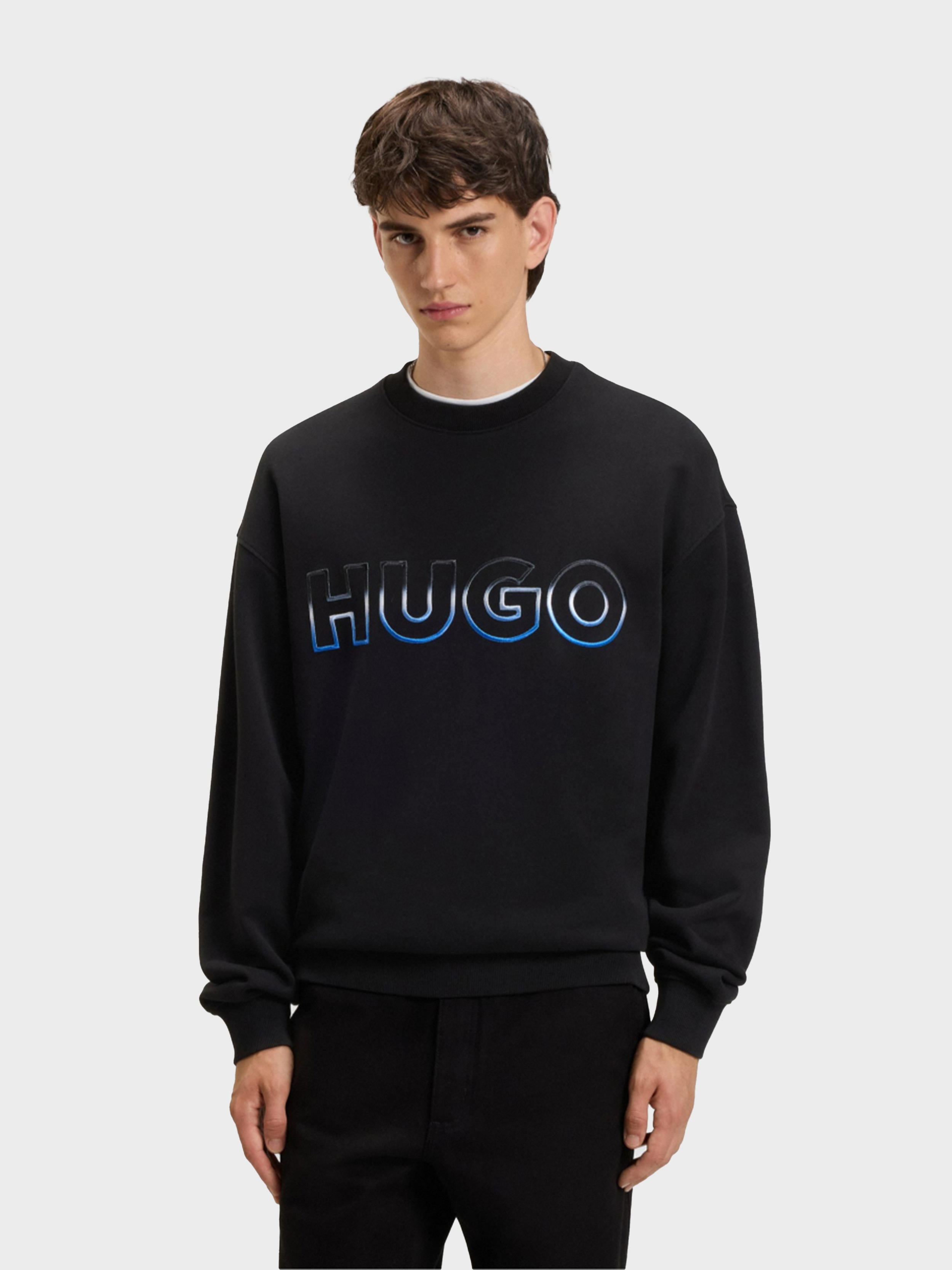 HUGO - Men's Cotton-Terry Sweatshirt with Ombré Logo Embroidery