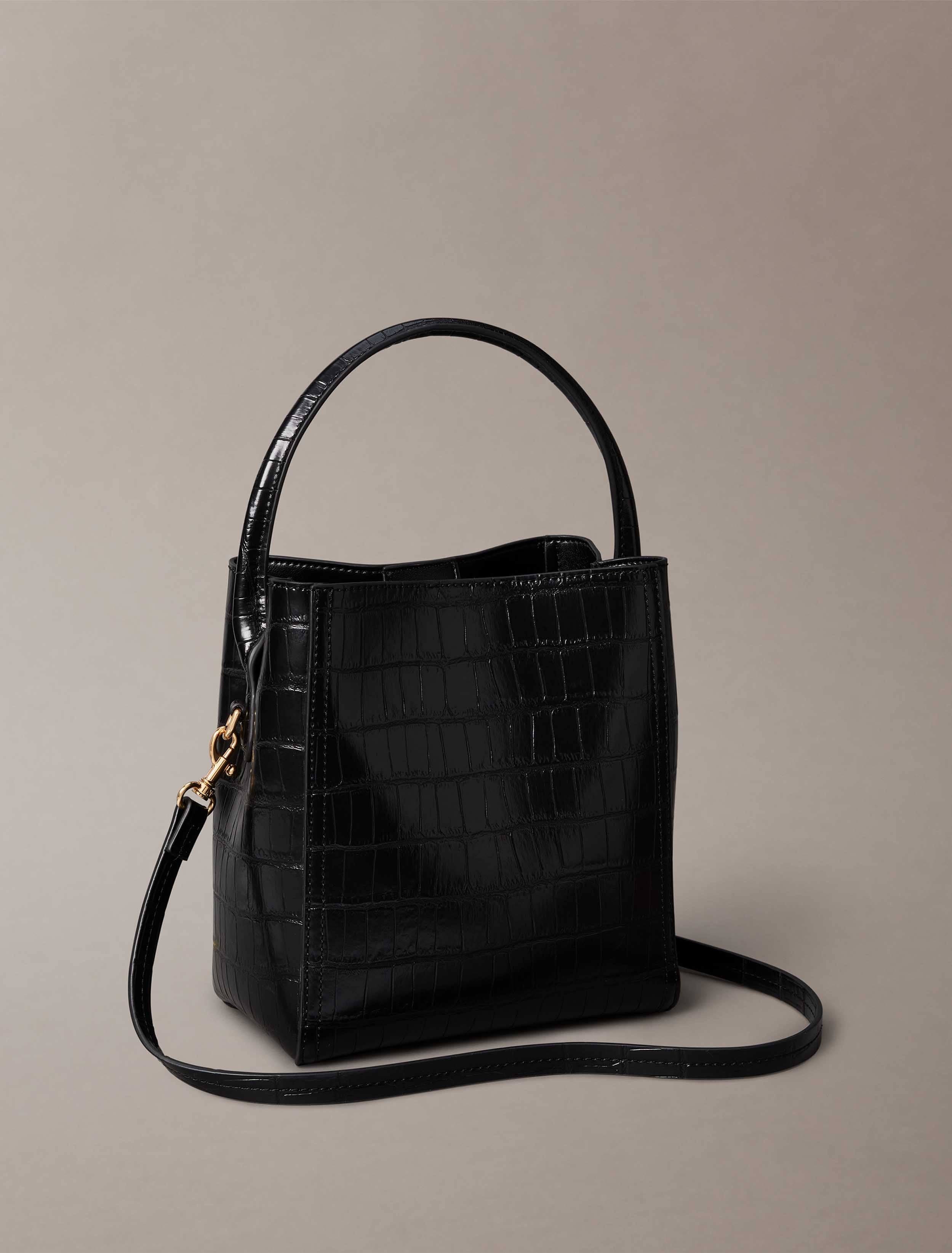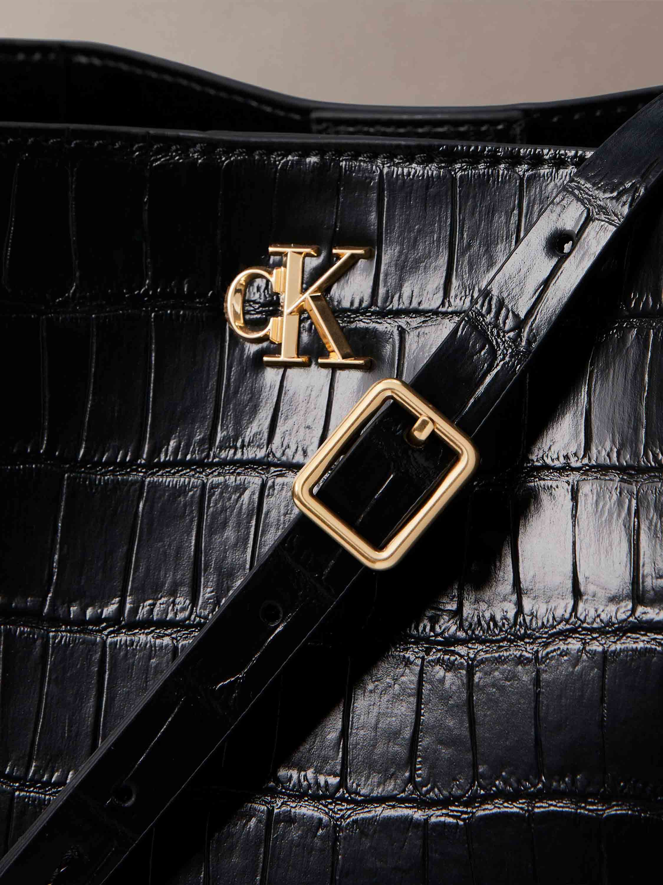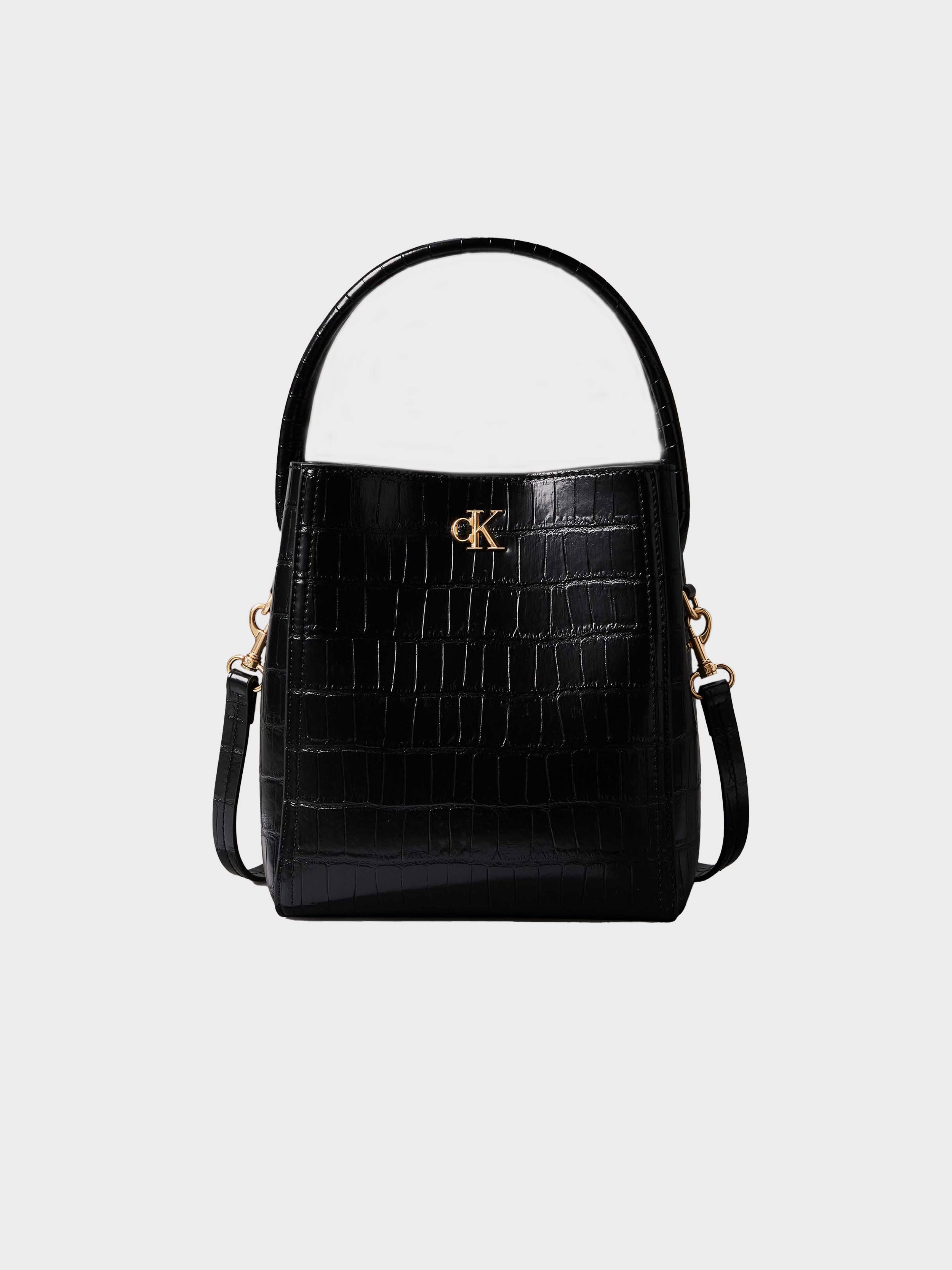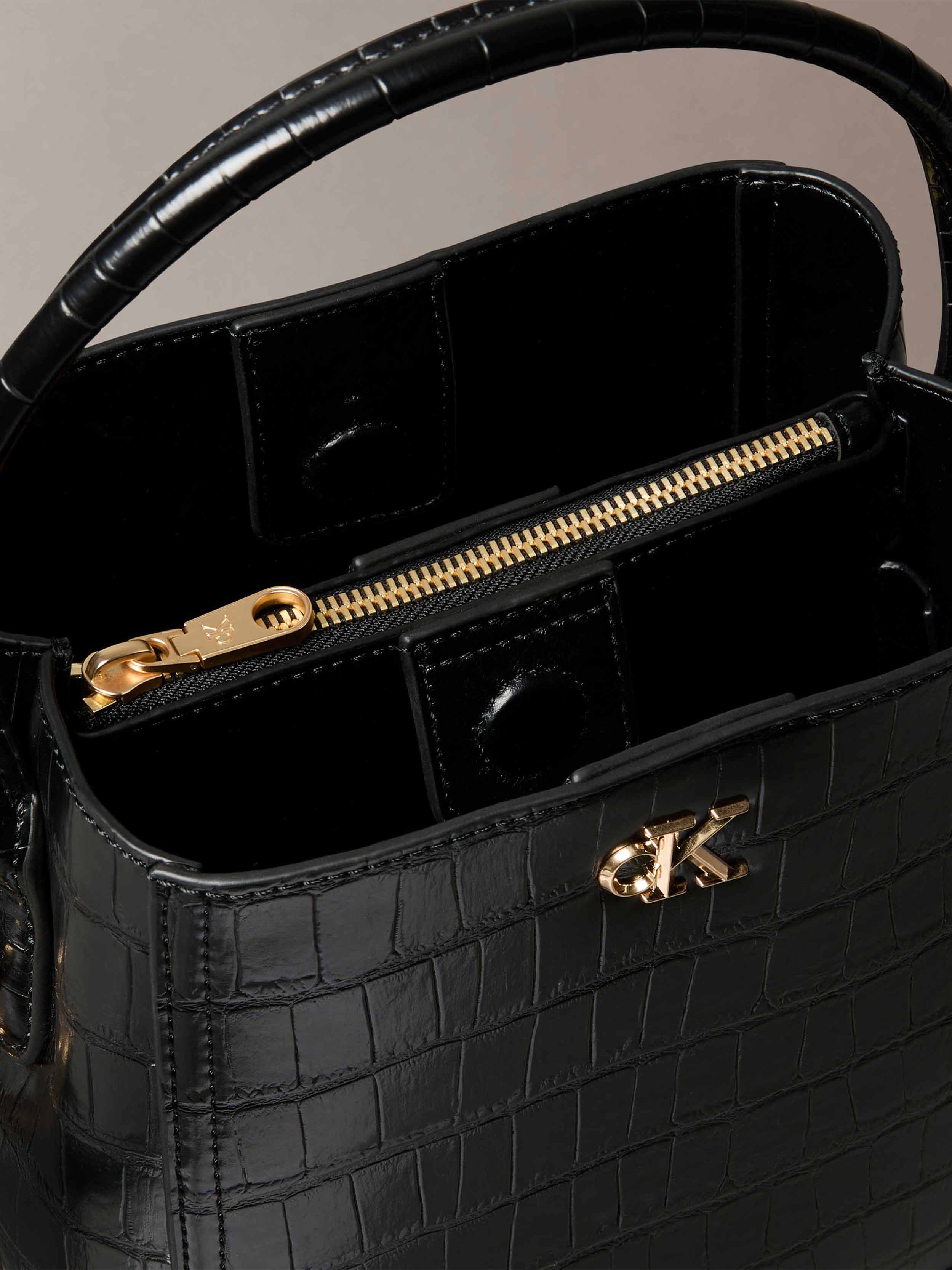 Calvin Klein - CK CROC BUCKET WITH STRAP , OS , BLACK / ANTIQUE LIGHT GOLD , Style LV04F3286G