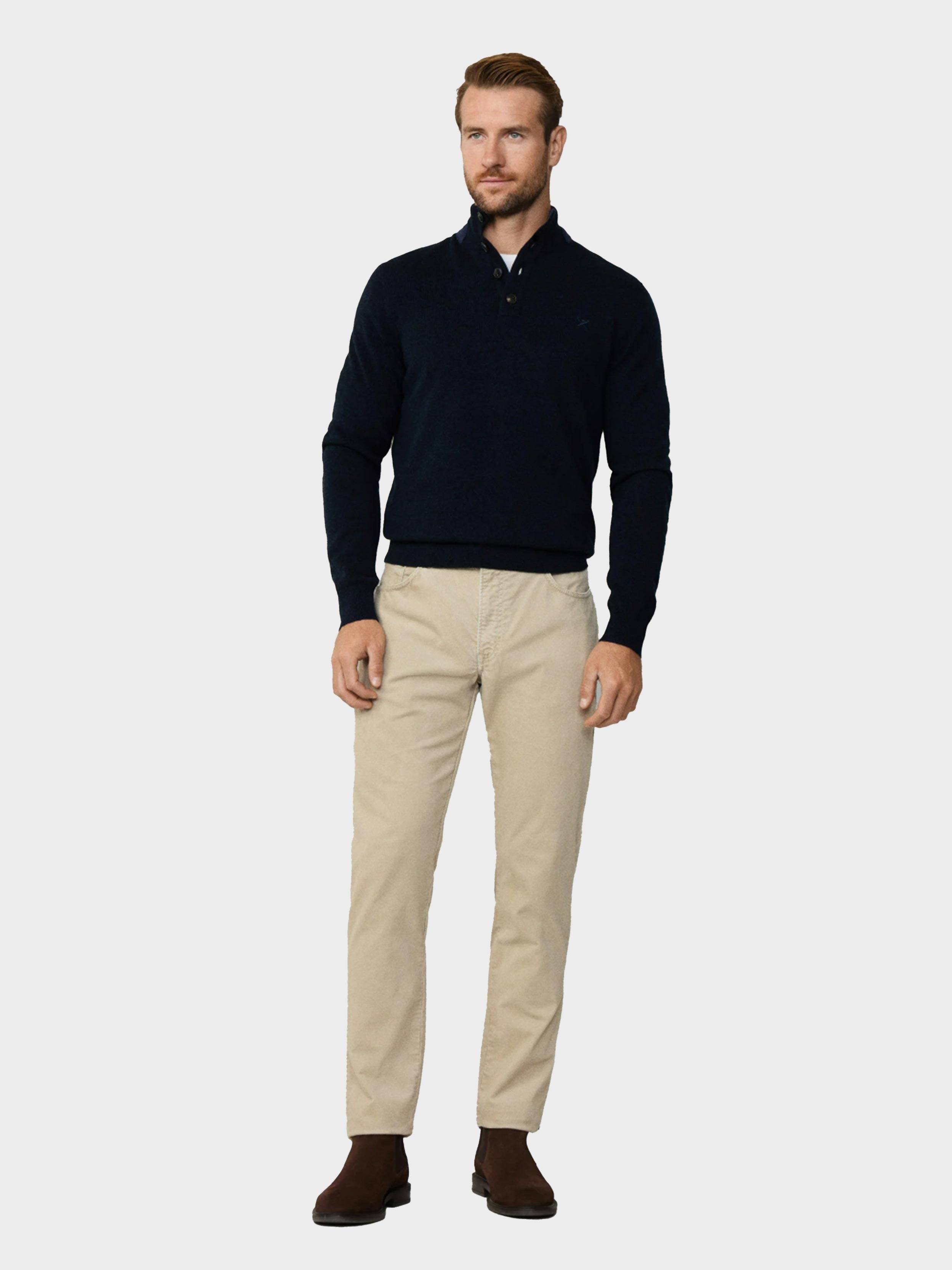 • Hackett London - Men's Wool Herringbone Trim Quarter Button Jumper