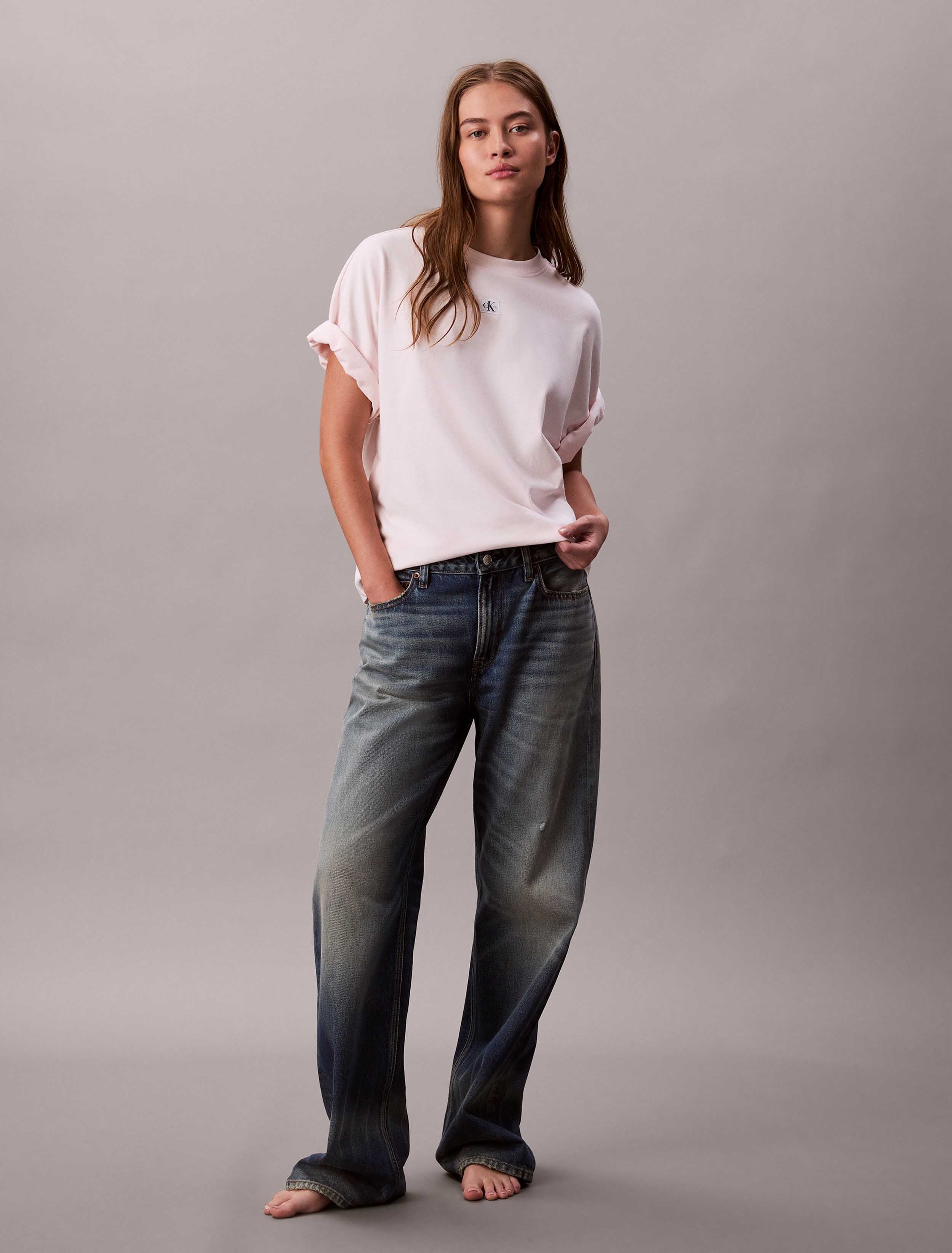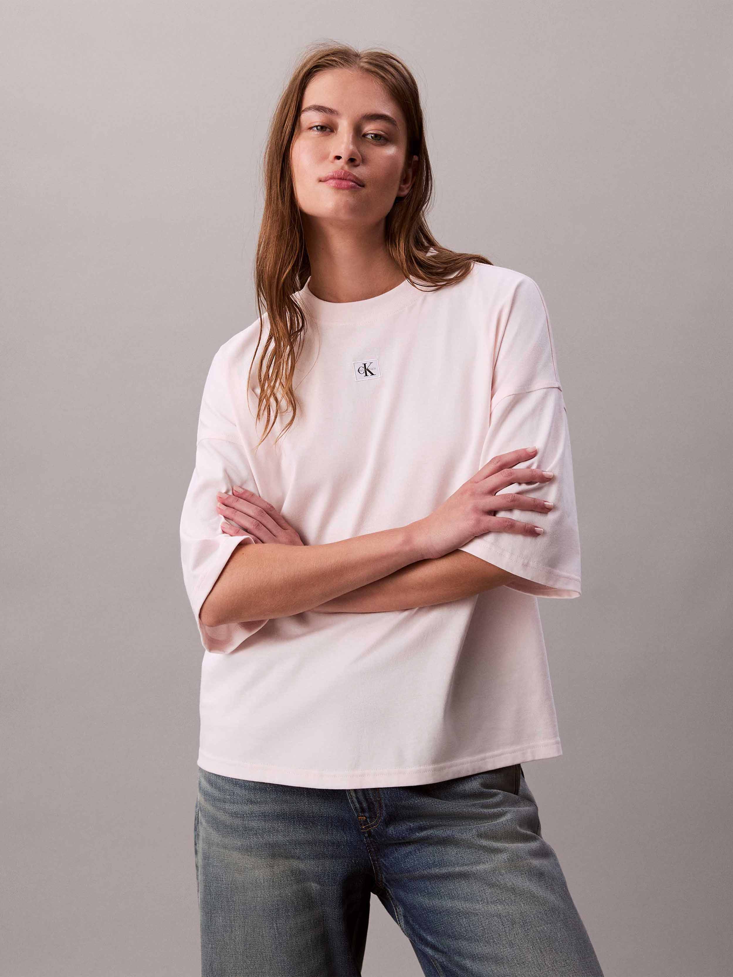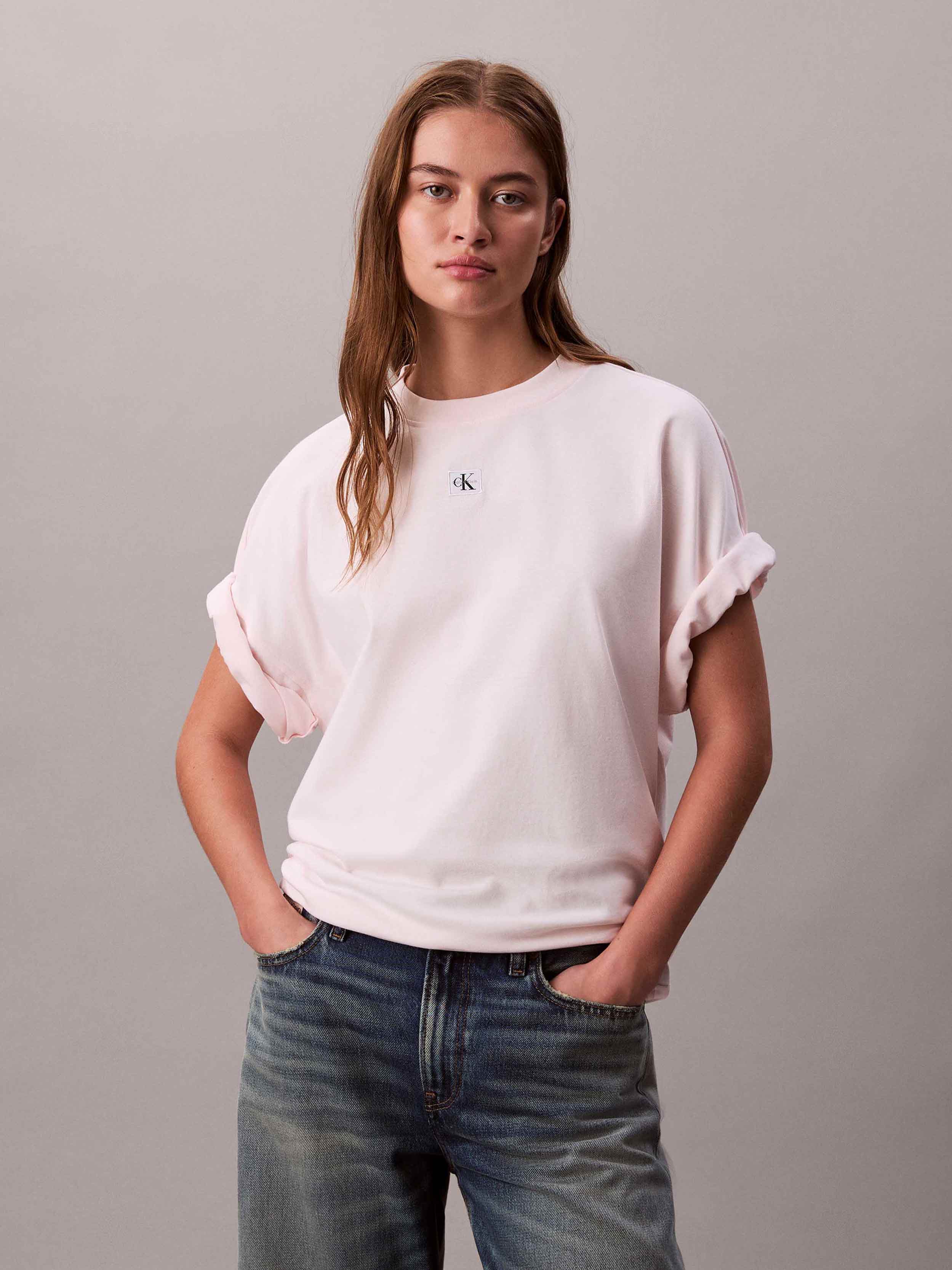 Calvin Klein - SS WOVEN LABEL OVERSIZED TEE , S , Tender Blush , Style LV047D204G