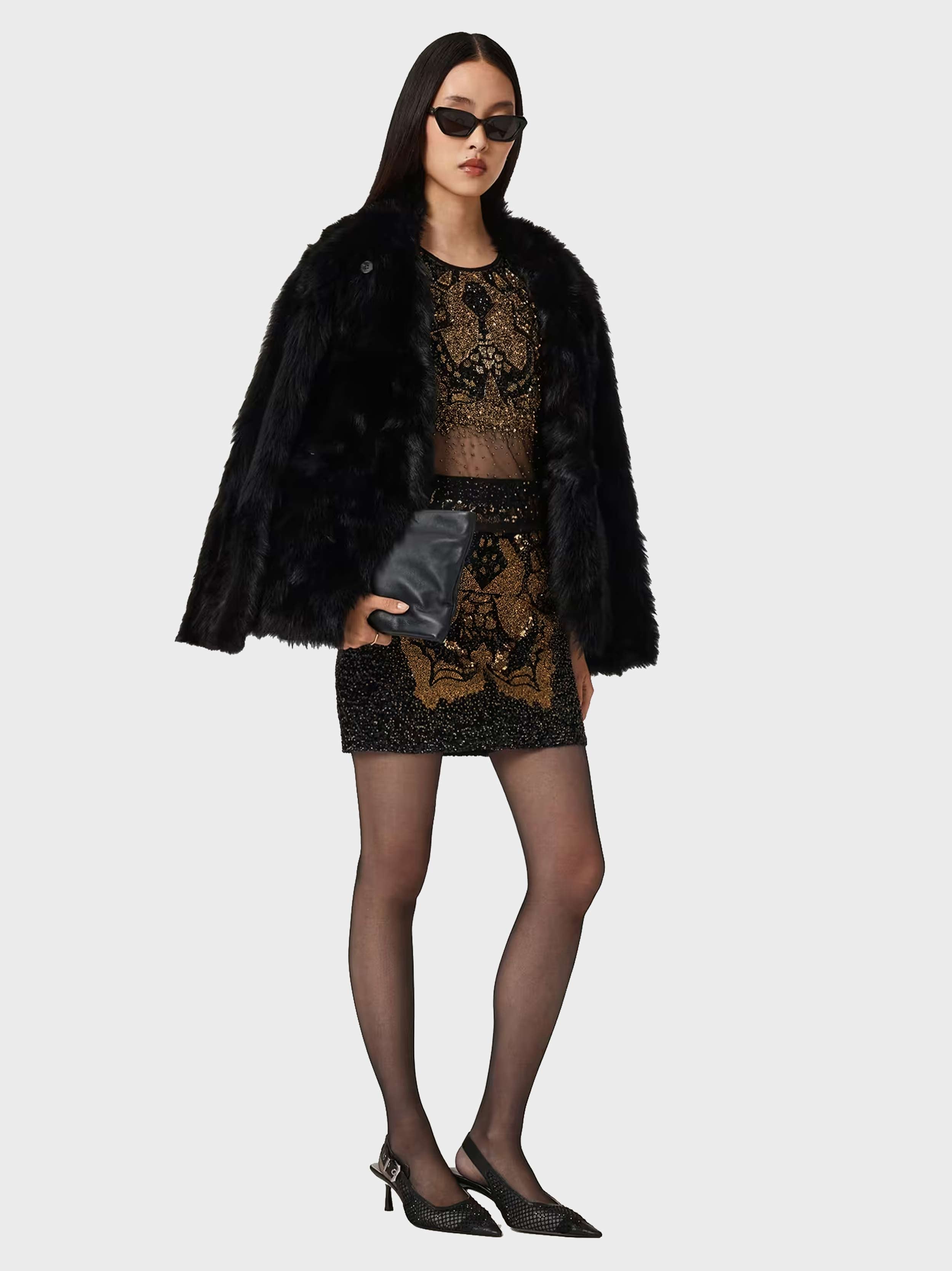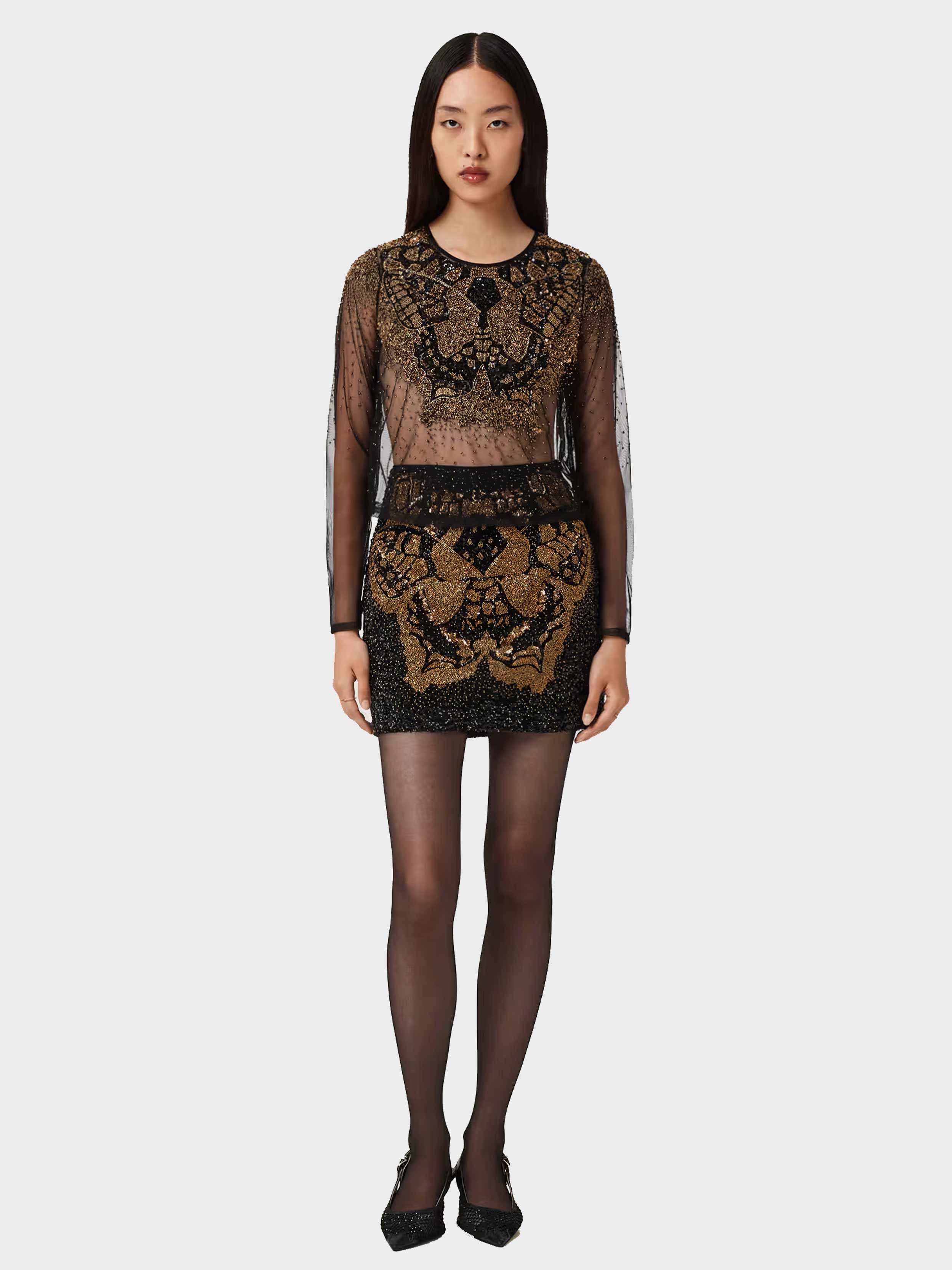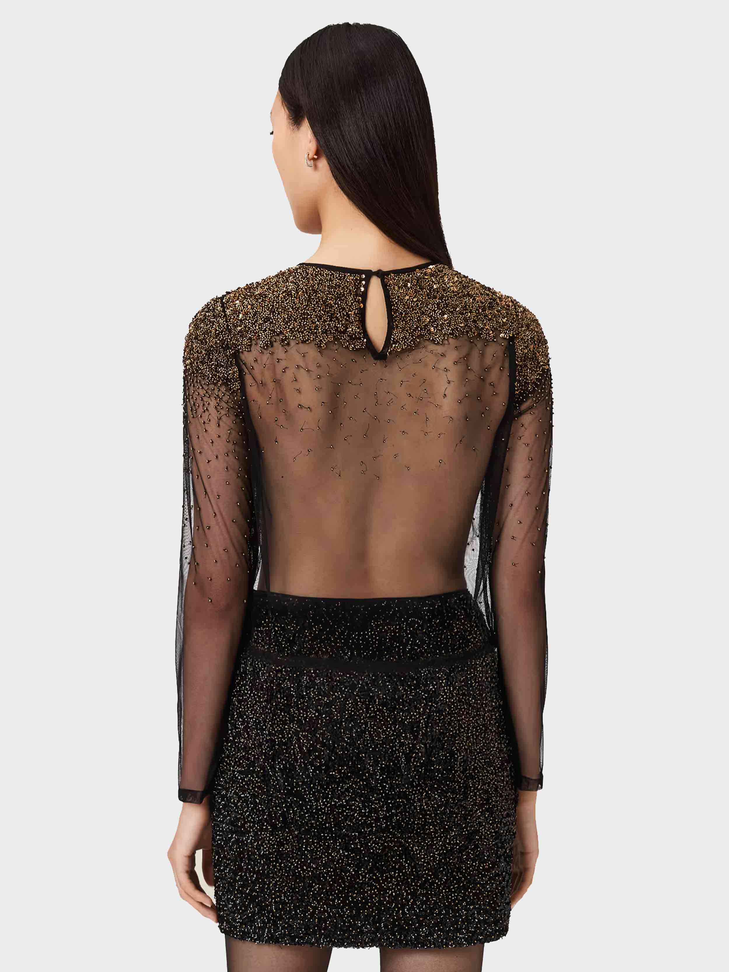 AllSaints - GRETA EMB TOP , UK 8/US 4 , BLACK/GOLD , Style W090PD