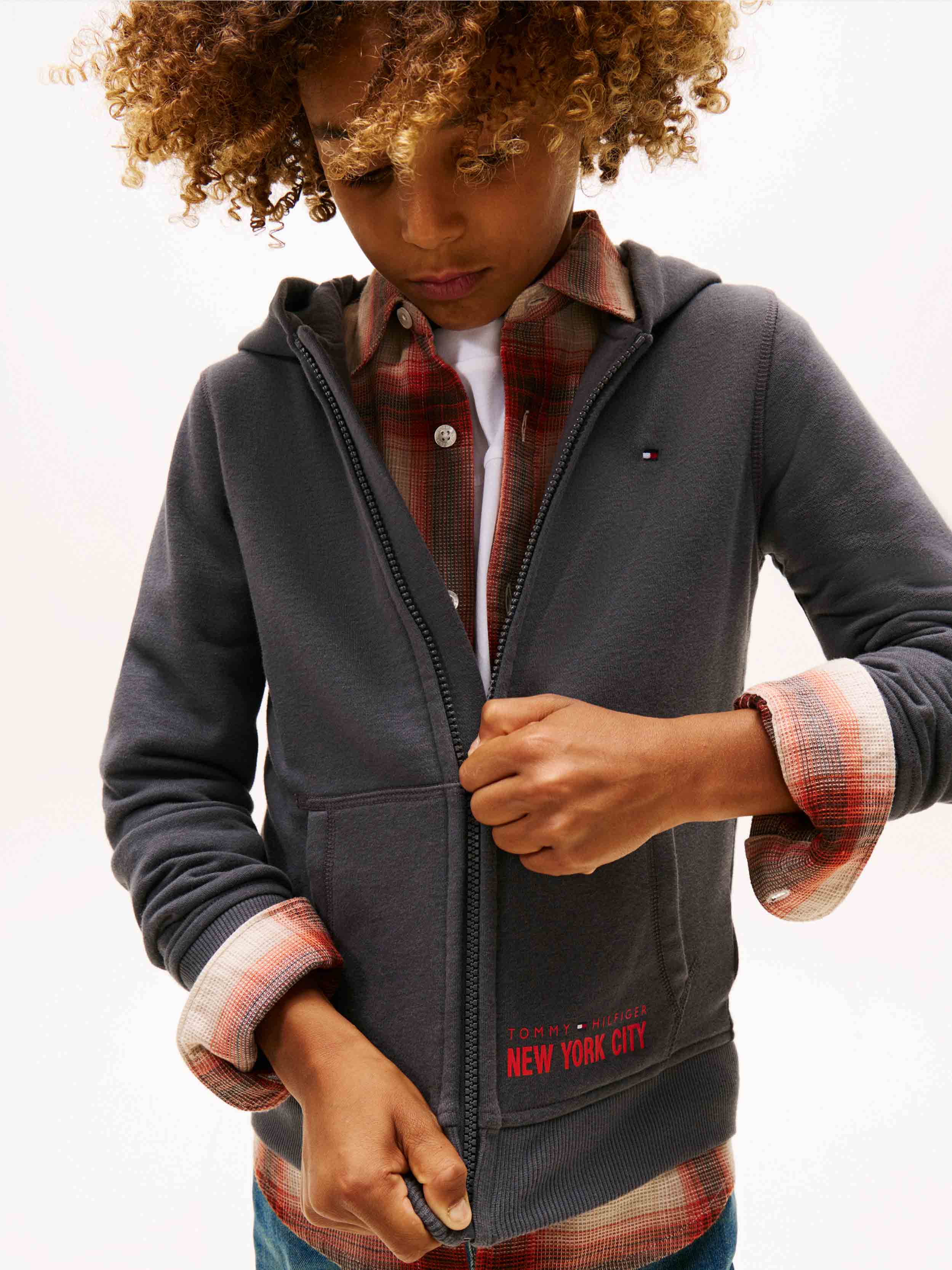 Tommy Hilfiger - NYC PRINT ZIPTHROUGH HOODIE , 4 , WASHED BLACK , Style KB0KB09894