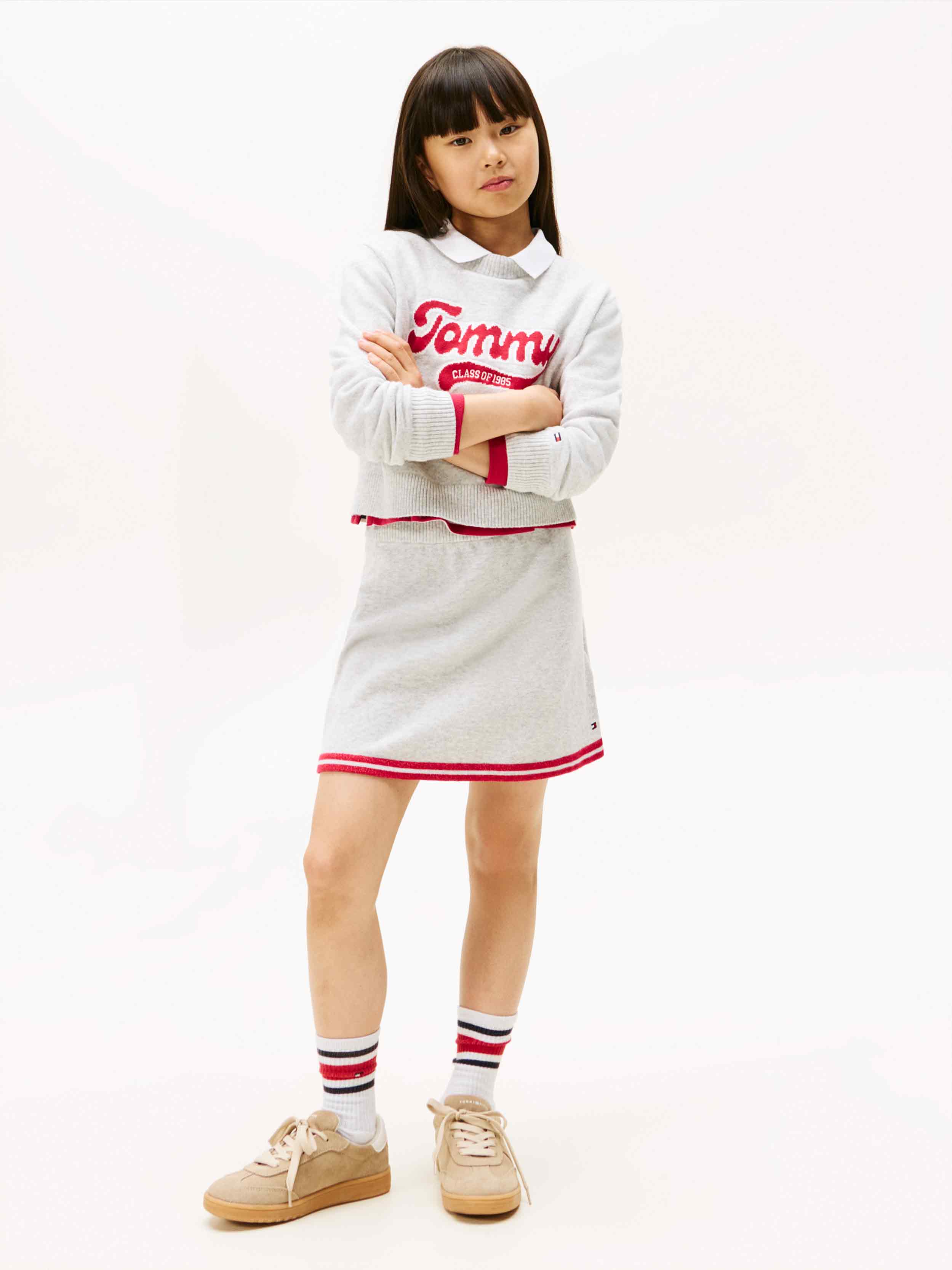 Tommy Hilfiger - VARSITY KNITTED SKIRT , 6 , Light Grey Heather , Style KG0KG08913
