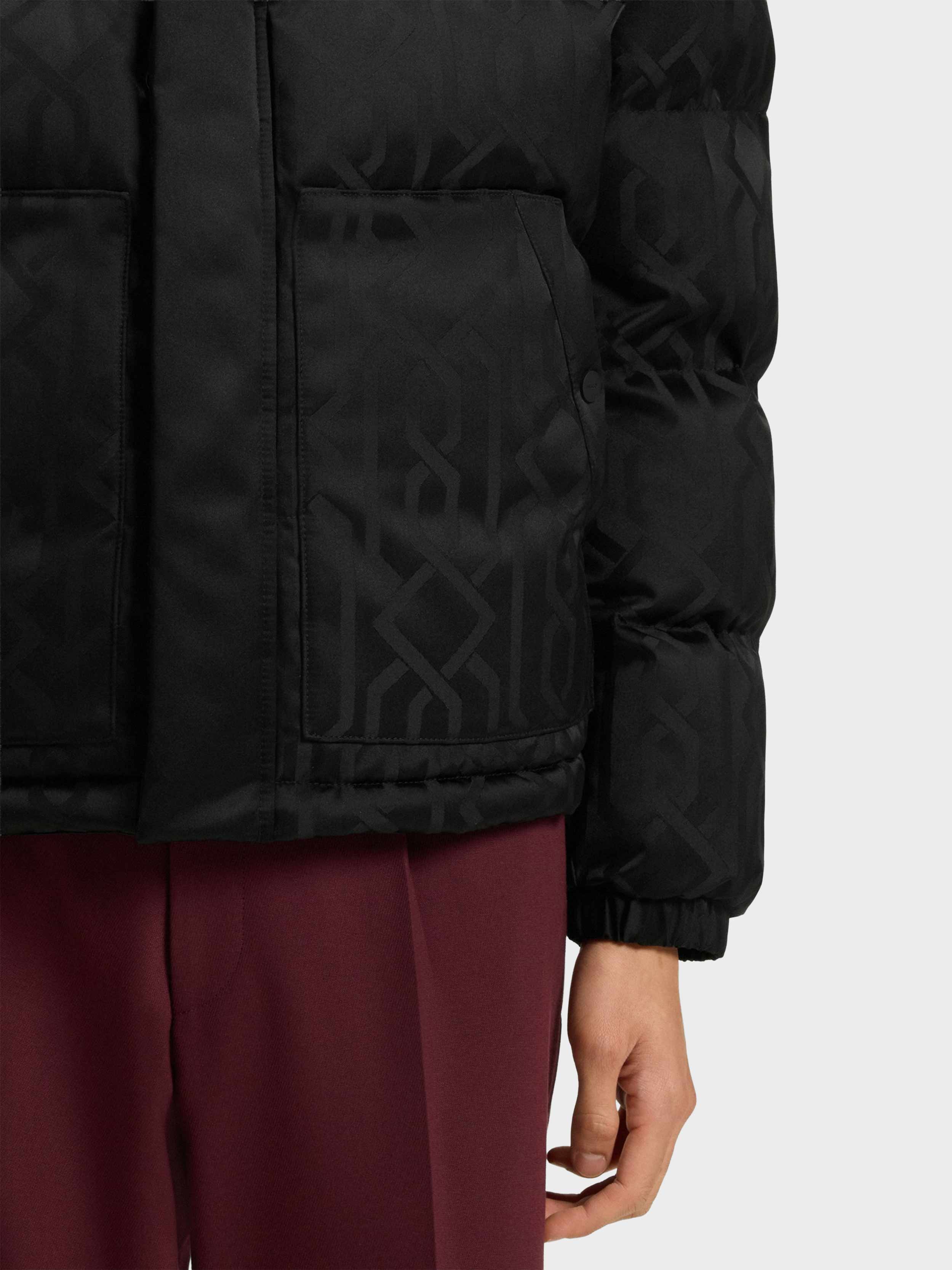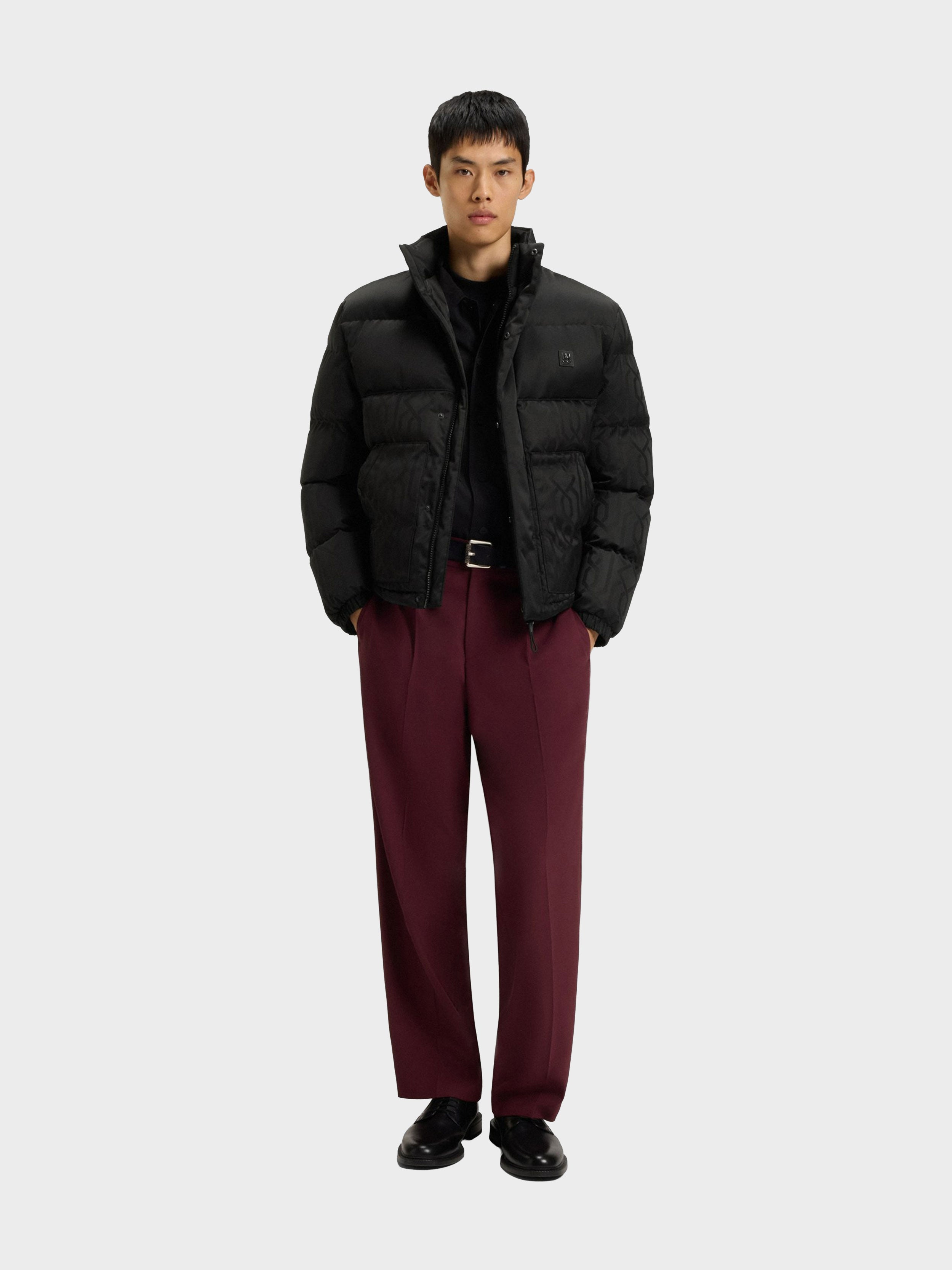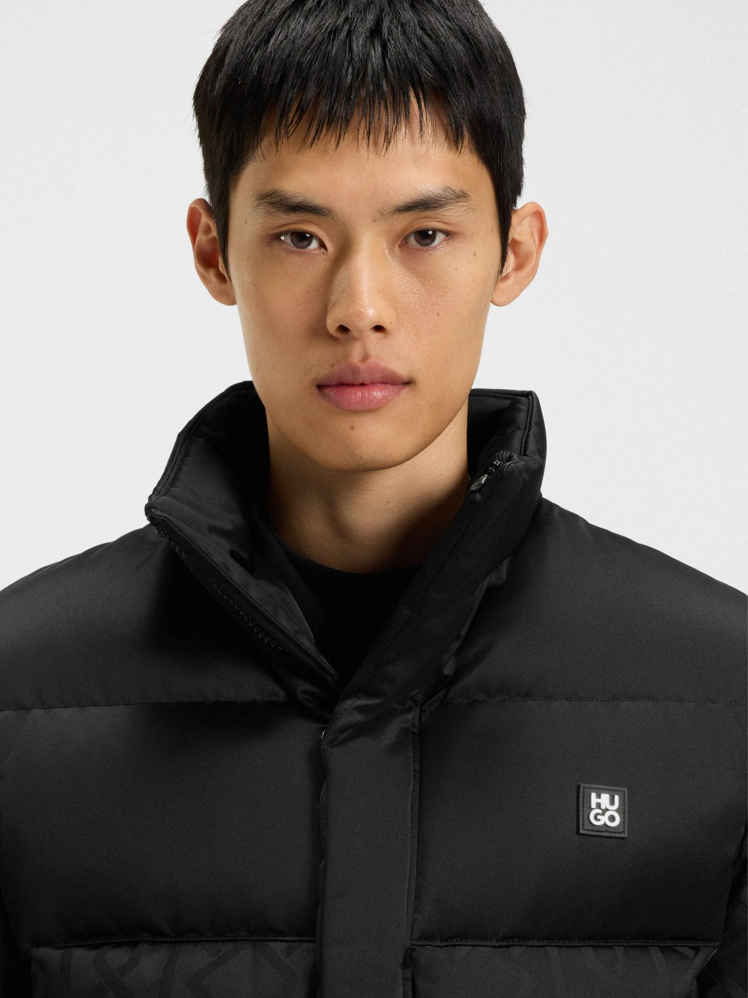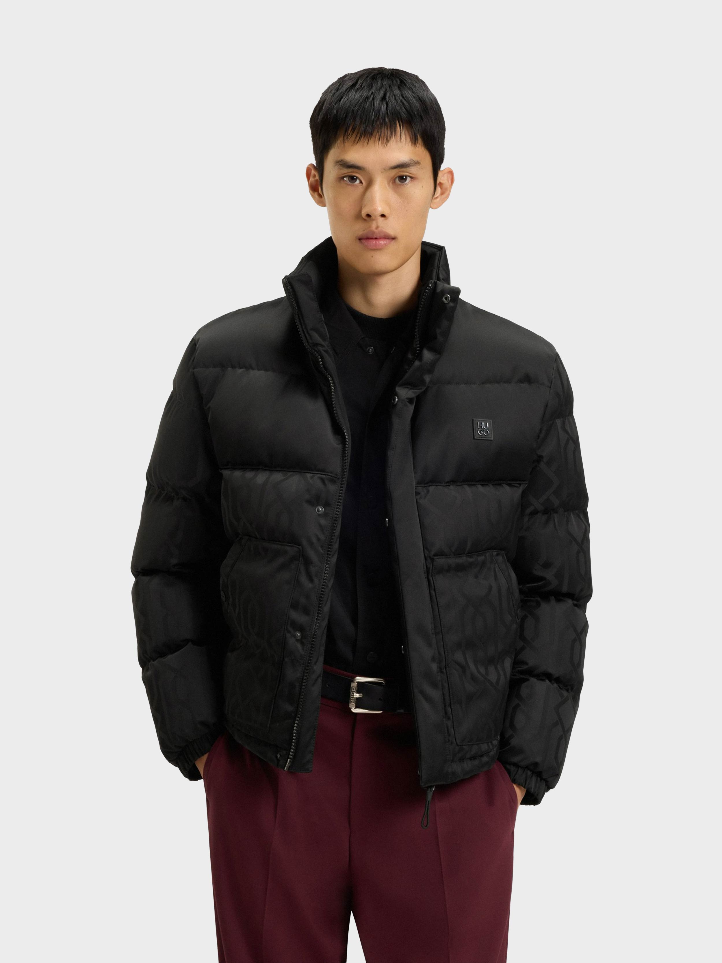 • Treat your winter wardrobe to the cosy puffer style of this regular HUGO Menswear jacket. Tonal jacquard pattern. Water-repellent finish. Rubberised logo.