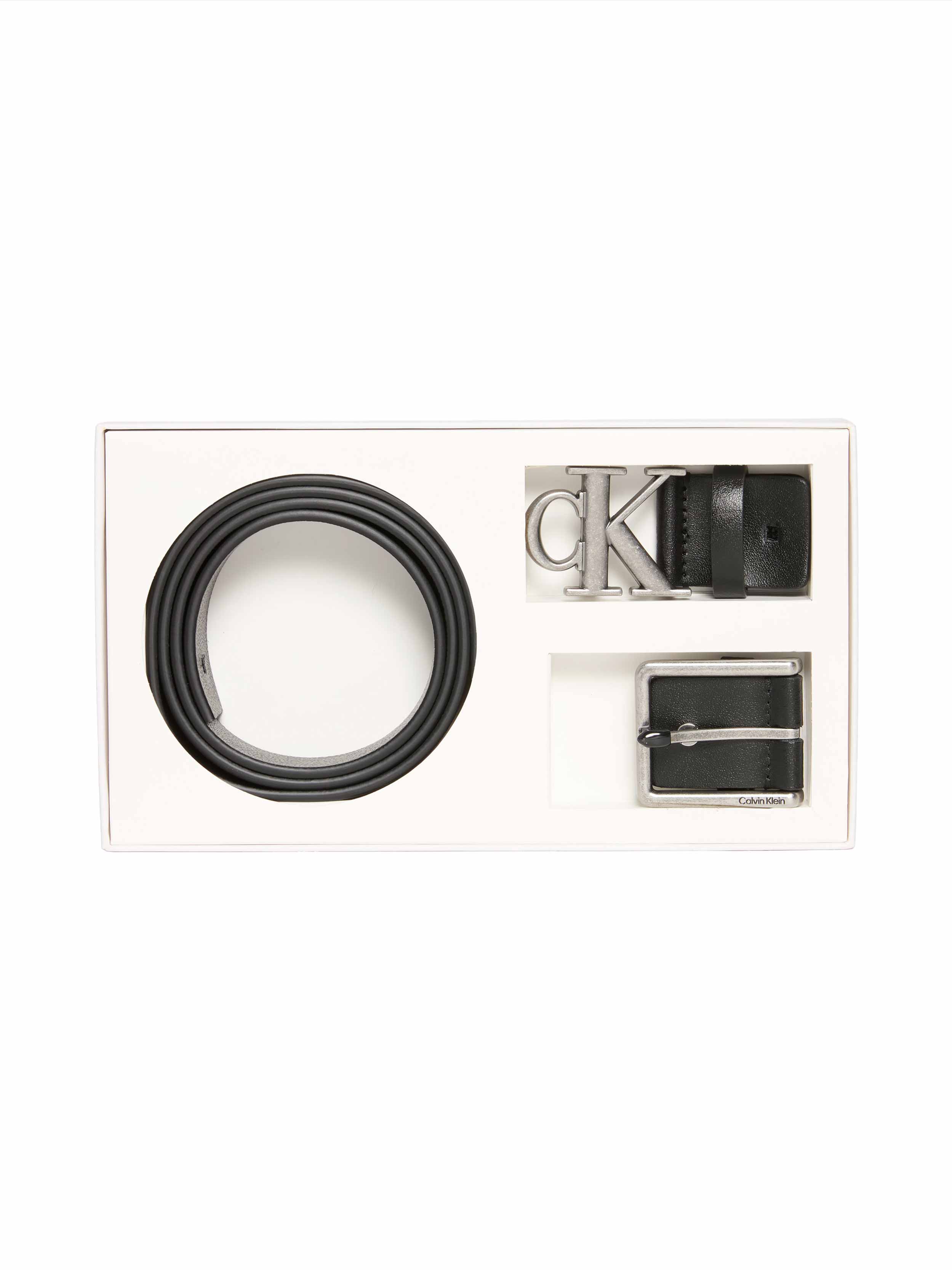 • you'll find two interchangeable buckles with a modern and distinctive design, allowing you to easily customize your look for any occasion. The discreet and refined Calvin Klein logo adds an unmistakable touch of class. This set is ideal for completing both formal and casual outfits, offering versatile style for any season.