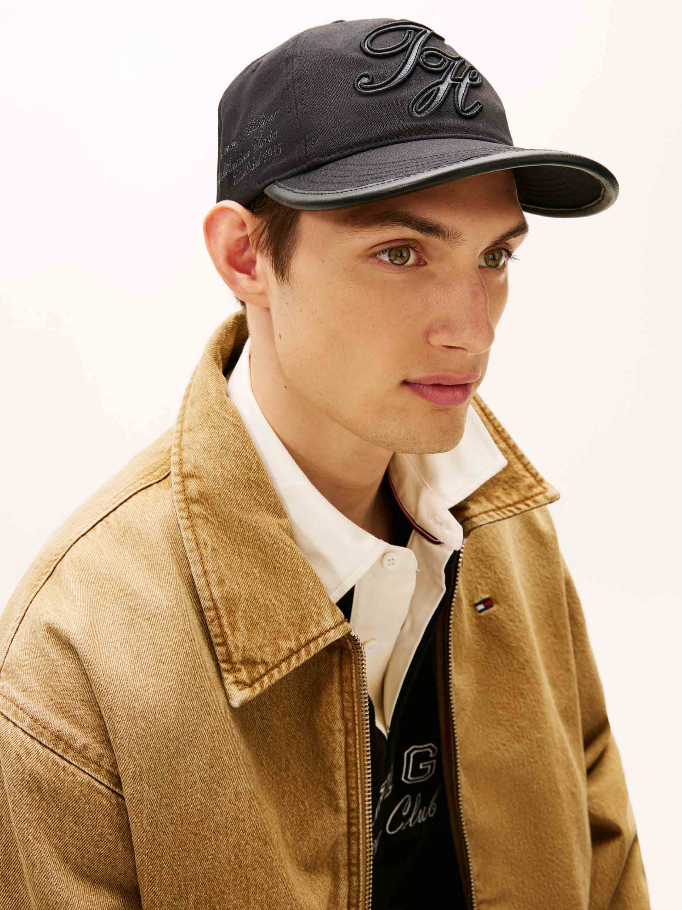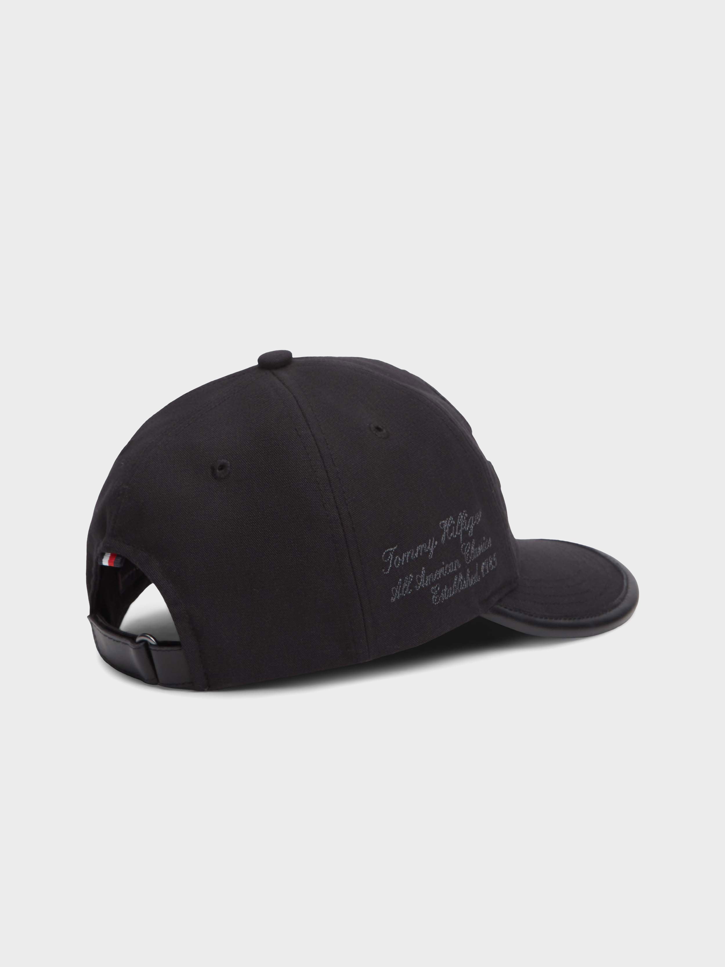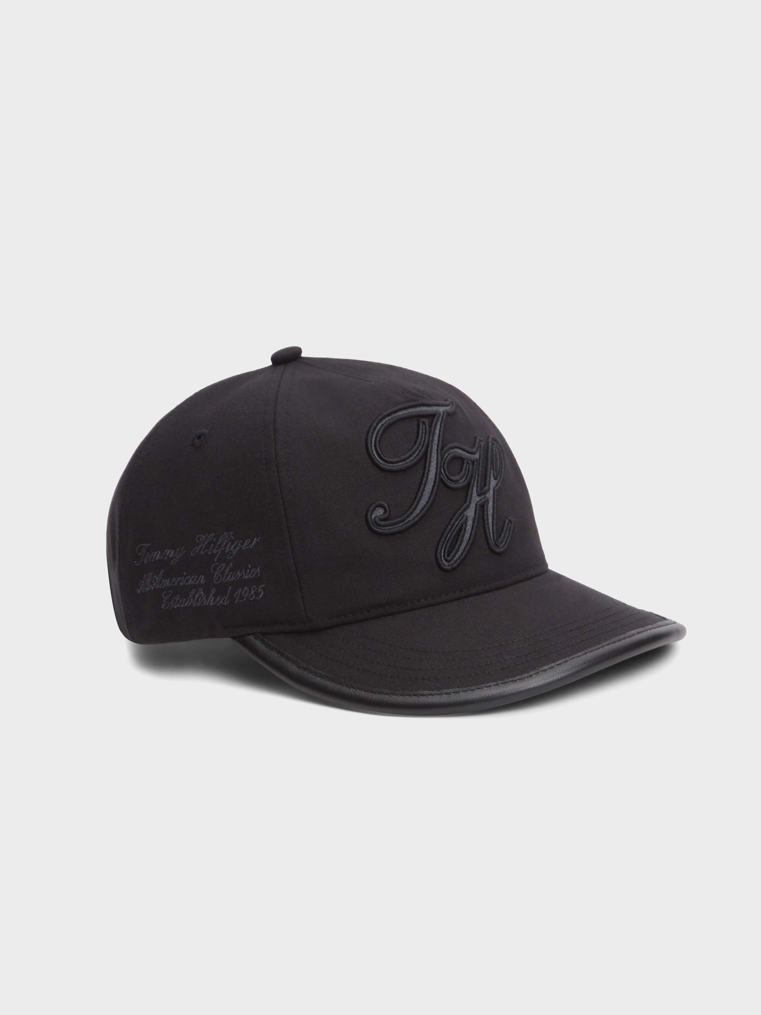 • Tommy Hilfiger script logo embroidery on front and side