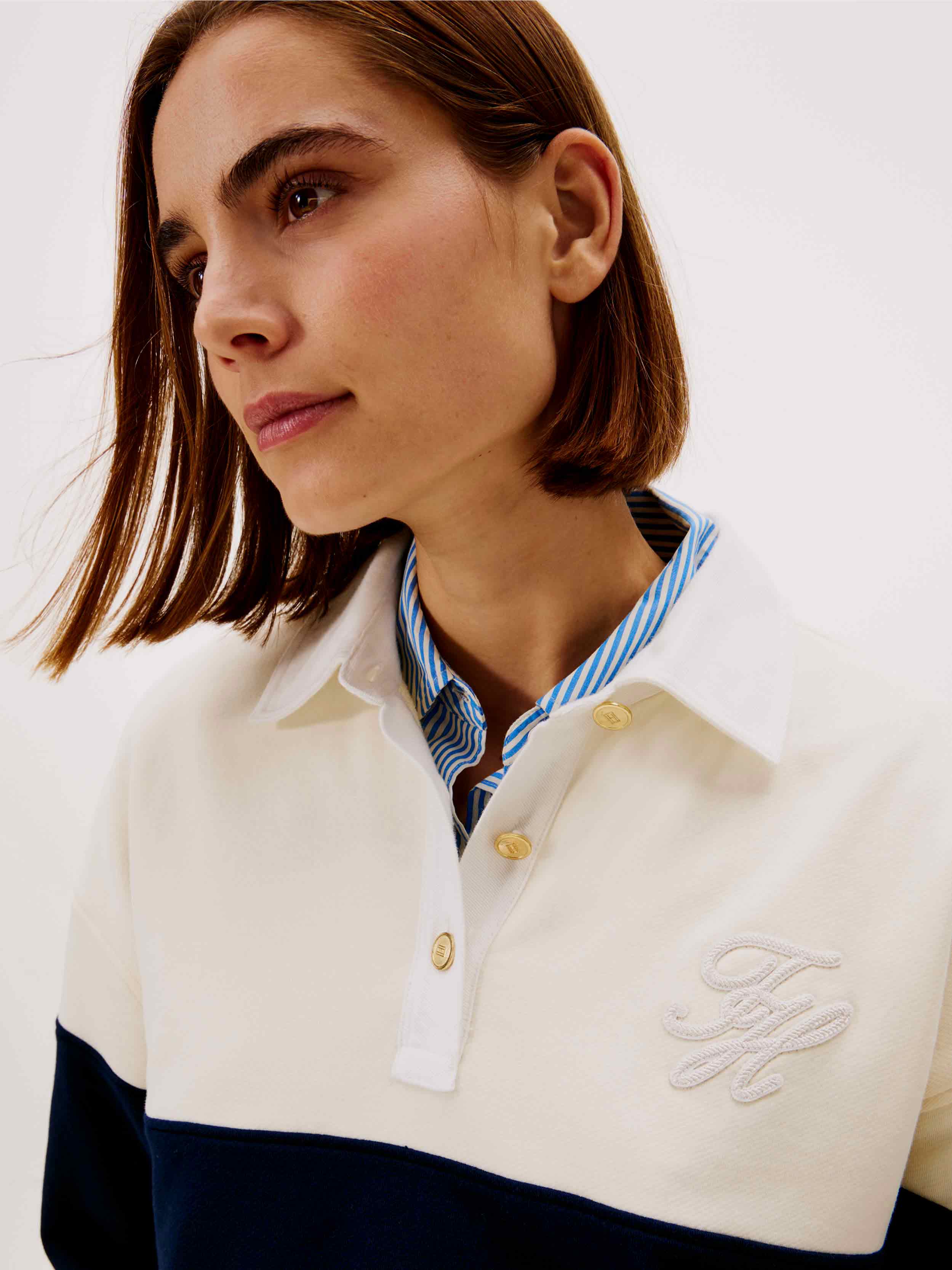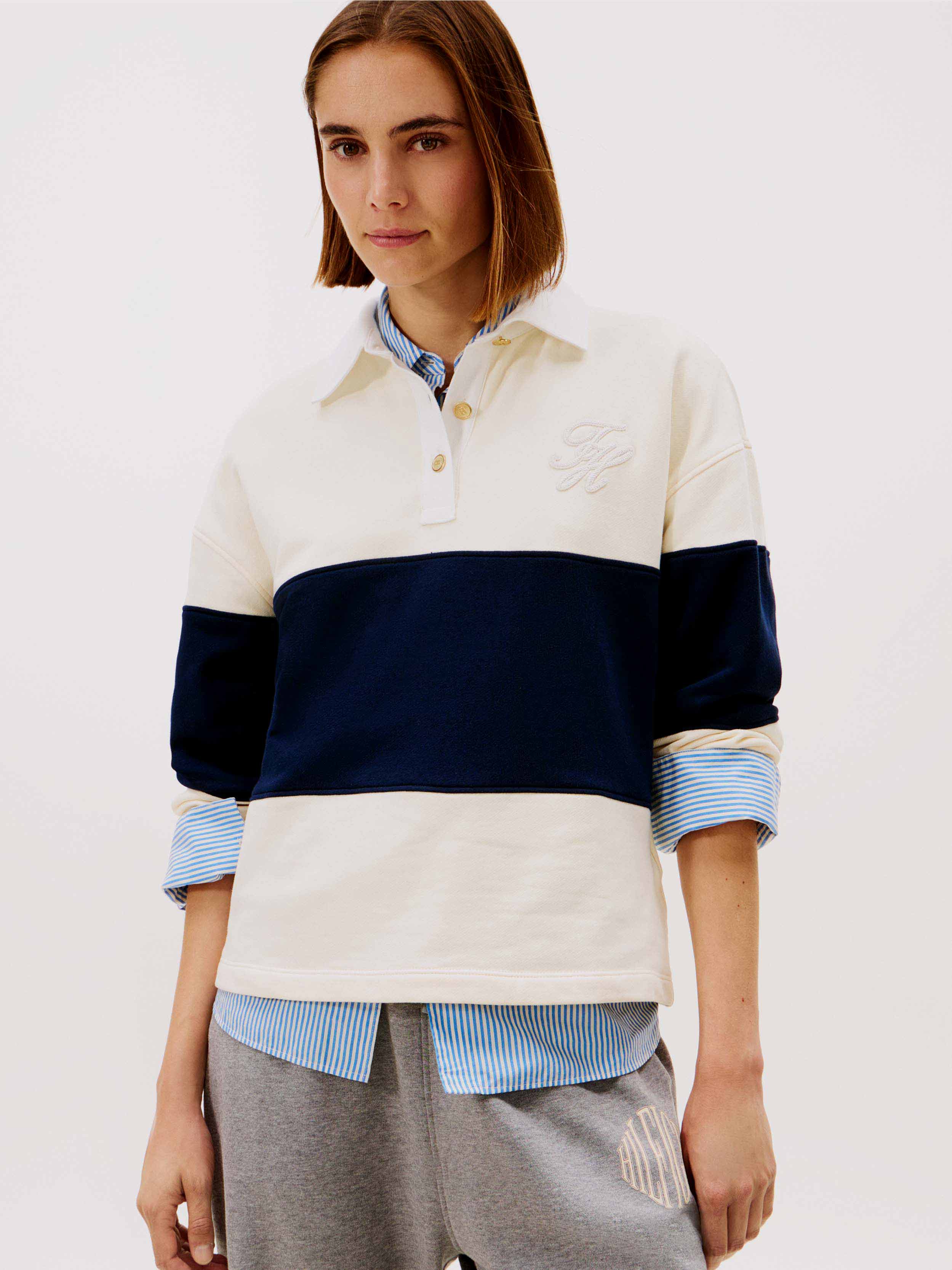 • This women's blouse from Tommy Hilfiger combines style and comfort, ideal for everyday looks. a timeless touch to your wardrobe. With a ribbed finish and cuffs, it offers a modern and elegant feel, ideal for wearing on any occasion.