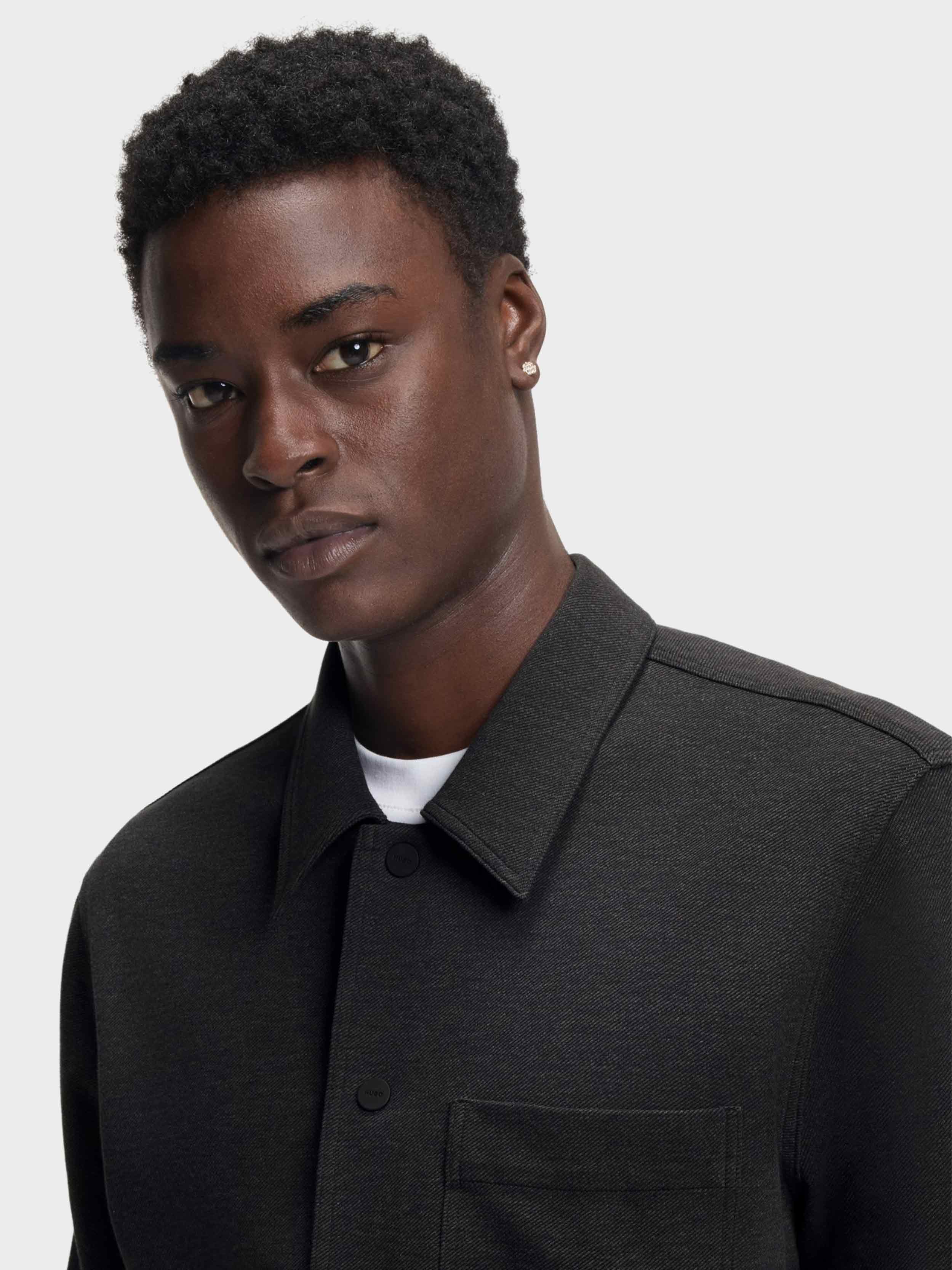 • In a comfortable cotton blend with added stretch, this HUGO Menswear shirt is great for casual layering. Oversized fit. Stacked-logo pocket trim.
