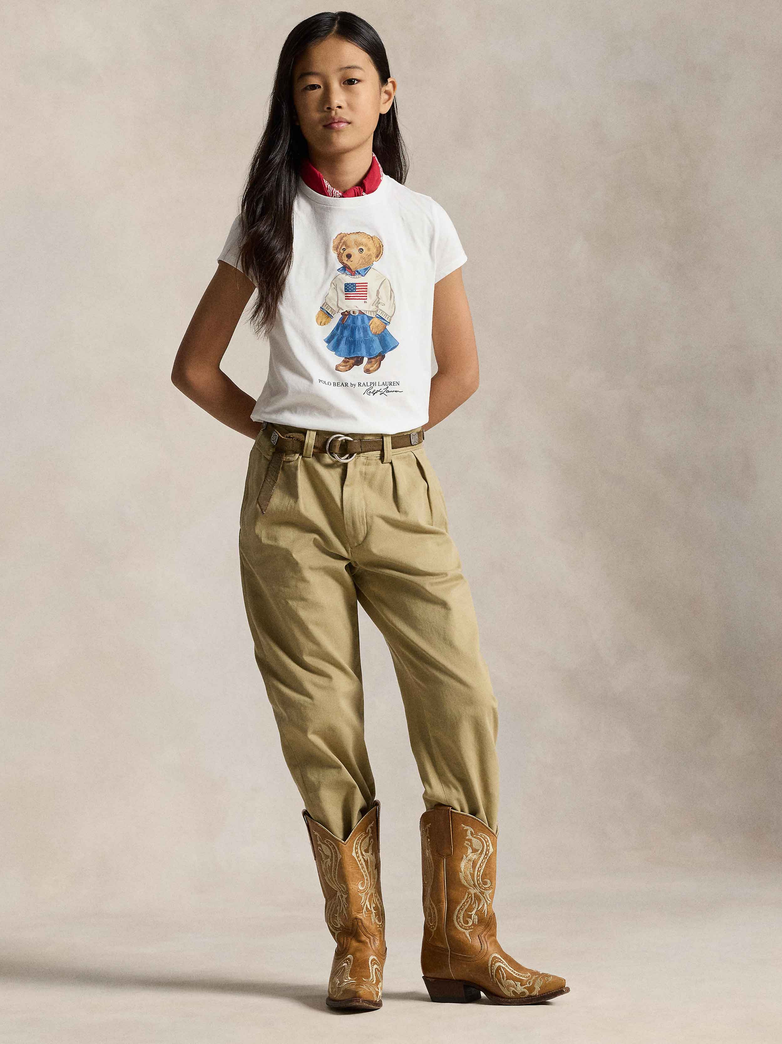 • On this cotton jersey T-shirt, our beloved Polo Bear is dressed in a signature Ralph Lauren ensemble.