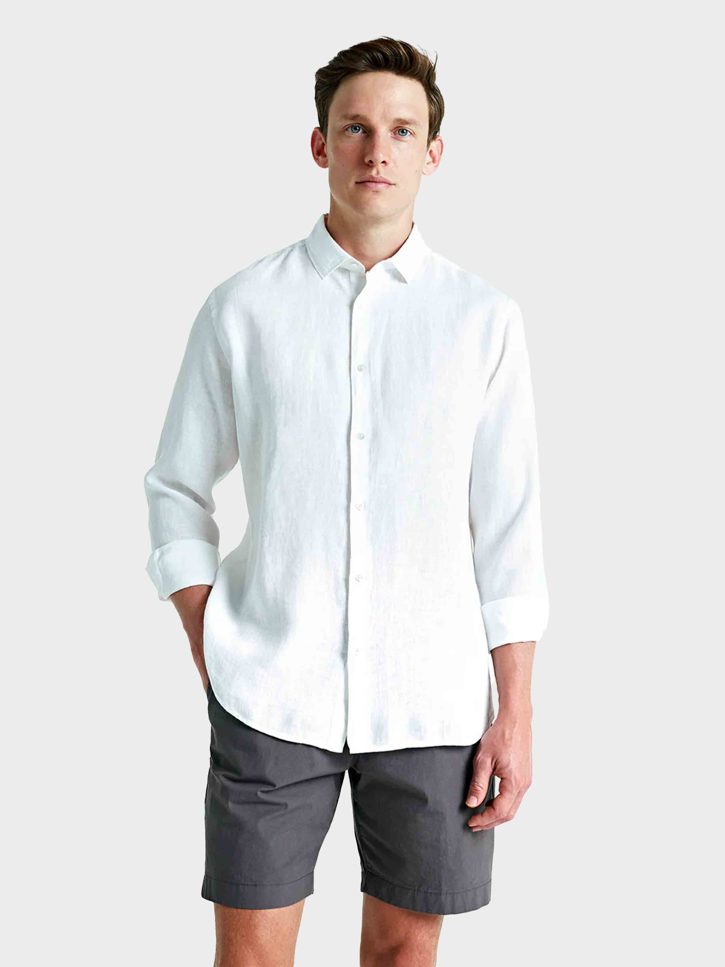 • Crafted from pure French washed linen, the Luca long sleeve shirt is a true wardrobe essential. Featuring a flattering curved hem and button down front, compliment this shirt with a pair of tailored shorts or chinos.