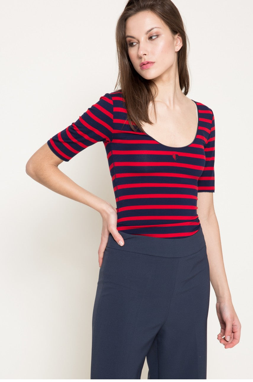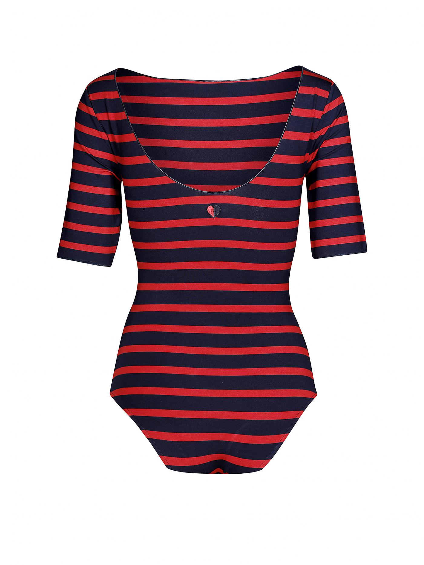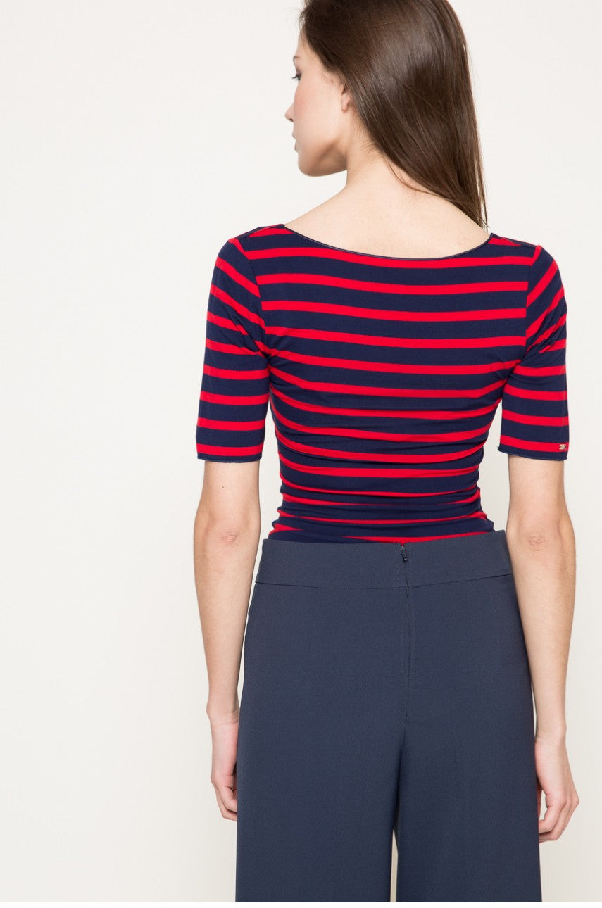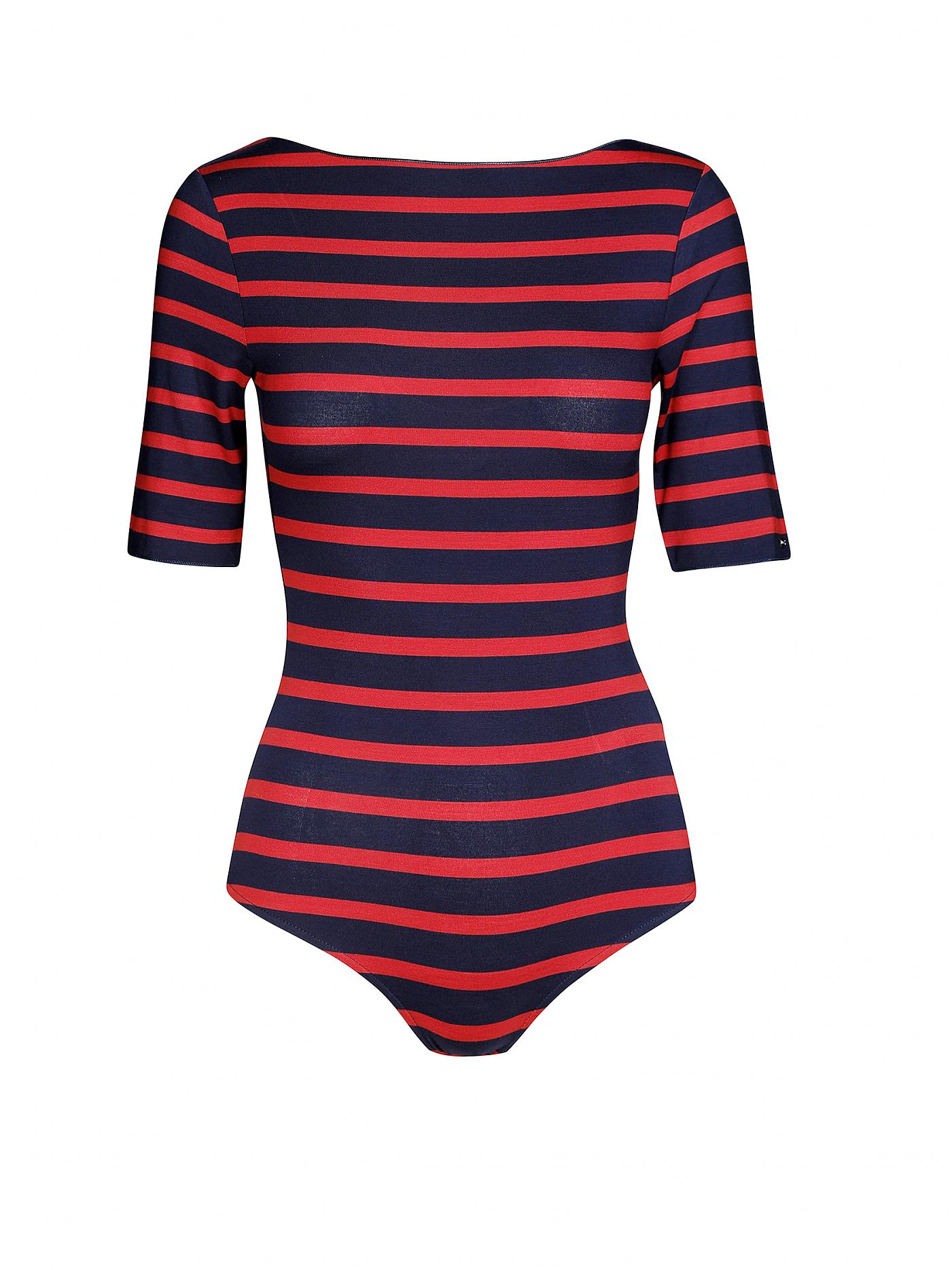 Tommy hilfiger - cadence bodysuit 1/2 slv , s , peacoat / apple red , style ww0ww17646